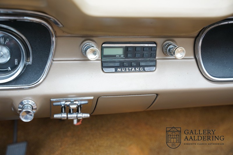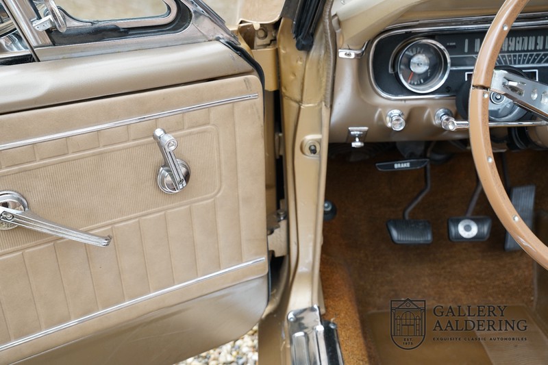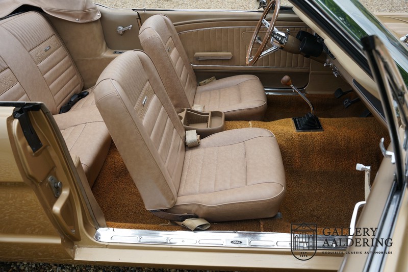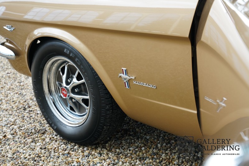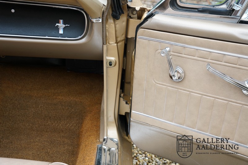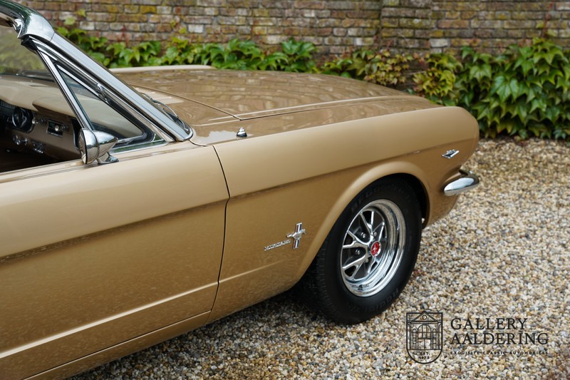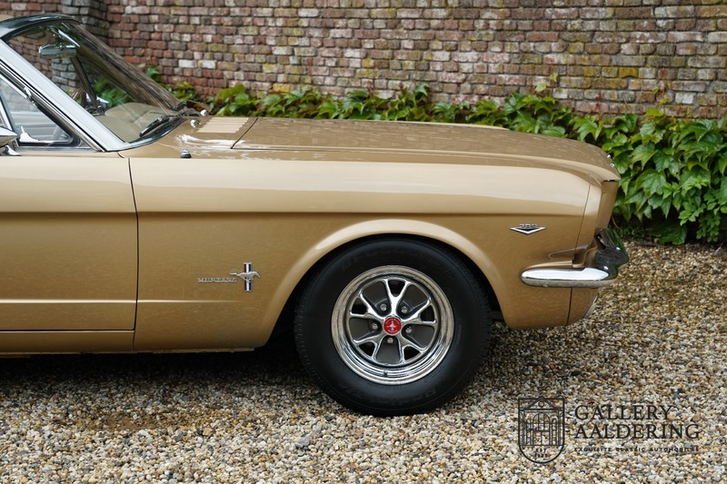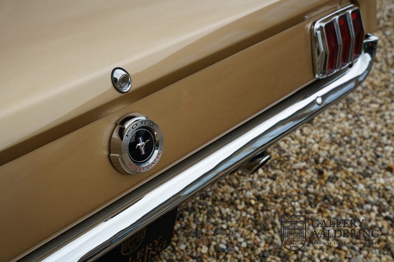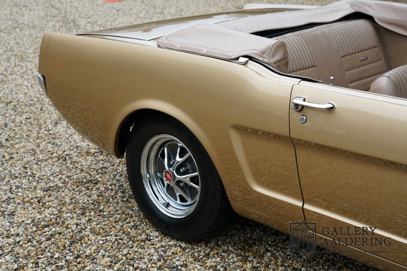 Das Jahr 1965 war sehr gut für den Ford Mustang, das Modell war sehr beliebt und der Mustang war ein richtiger Verkaufsschlager. Basierend auf der Fahrgestellnummer sehen wir, dass der Mustang in 1965 bei den Ford Werken in San José gebaut worden ist und versehen wurde mit dem optionalen kräftigen 4.7 Liter (289 Cubic Inches) V8-Motor mit einer Leistung von 200 PS. Das Auto wurde vor kurzem komplett restauriert und revidiert und befindet sich dementsprechend in einem sehr guten Zustand.