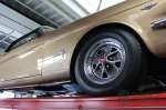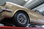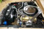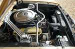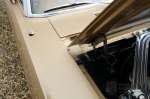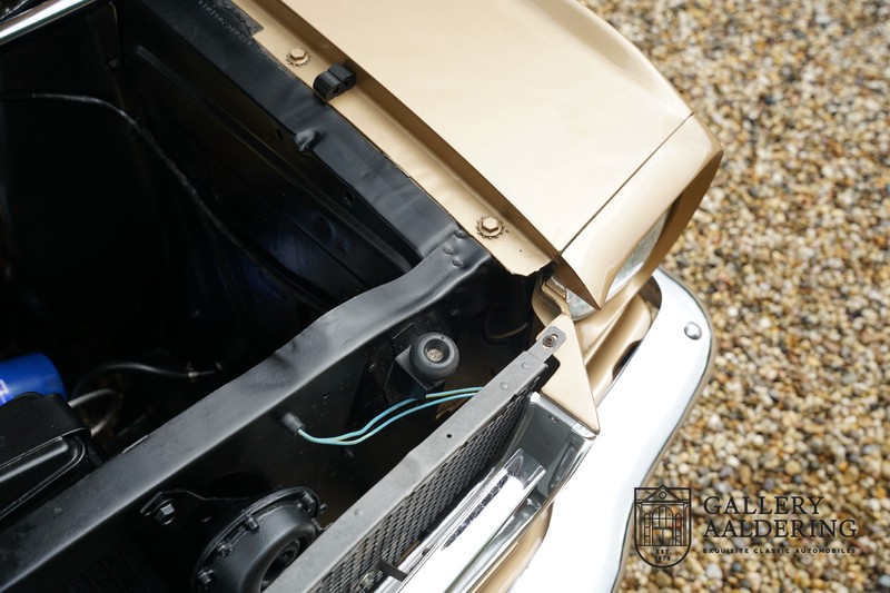 The bodywork is in fine condition. The alignment of the lovely thin, mainly original, panelwork is good. The properly applied gold finish totally suits this sixties car. The white convertible hood is also in a good state of repair. The hood looks great against the gold bodywork and is a tight fit.