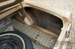 On the inside, there are light brown carpets together with light brown vinyl upholstery. During the restoration, the interior trim was completely replaced in keeping with the car’s original spec. As soon as you