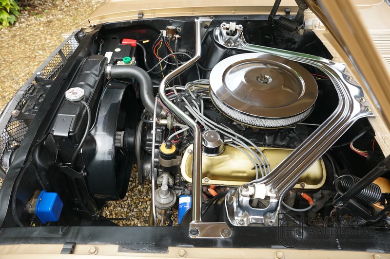 De motorruimte is niet alleen zeer fraai verzorgd, de grote V8-motor die erin ligt is ook topfit. 200 pk lijkt heden ten dage wellicht niet zoveel maar dankzij de fantastisch gekozen versnellingsbakverhoudingen van de handgeschakelde transmissie met vier versnellingen is het rijden in deze auto een ouderwets feest voor de zintuigen. Verder zijn alle onderdelen behandeld zoals het differentieel en de ophanging. De onderzijde van de Mustang is dan ook zeer fraai. Het goede onderhoud en de revisie dragen eraan bij dat de auto heerlijk rijdt en de komende tijd waarschijnlijk ook niet veel meer onderhoud zal behoeven dan regelmatig een beurt.