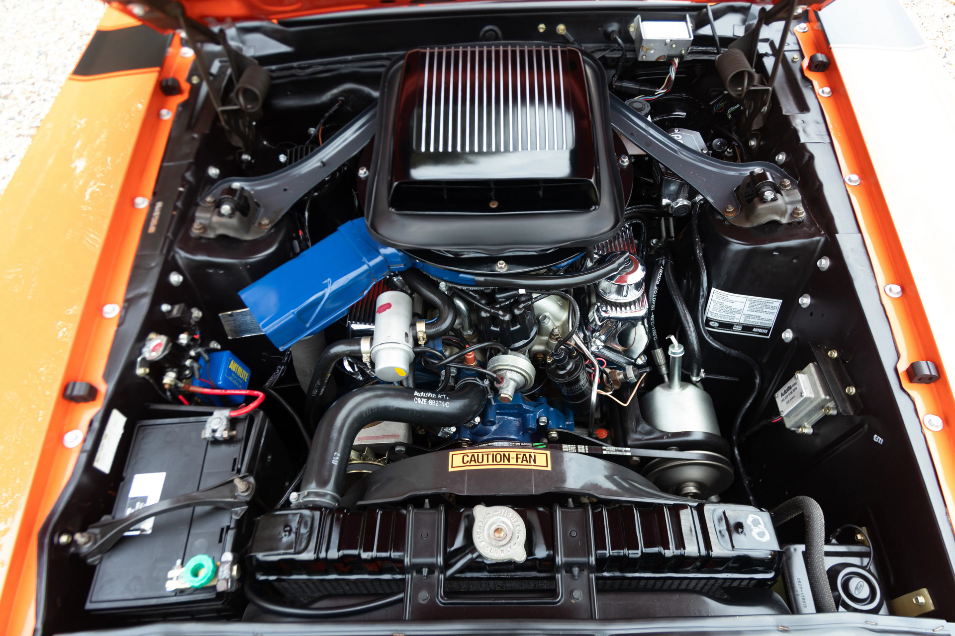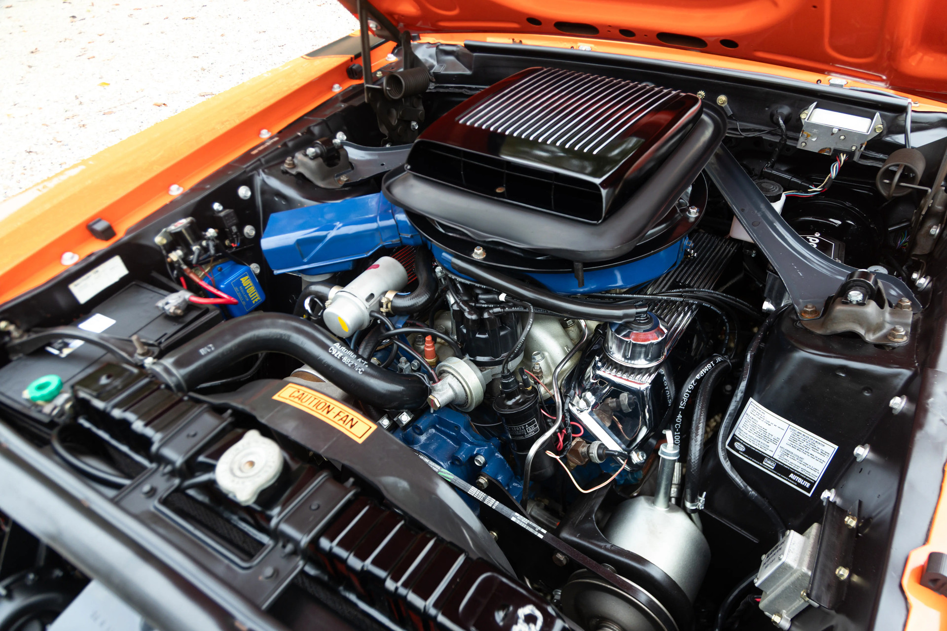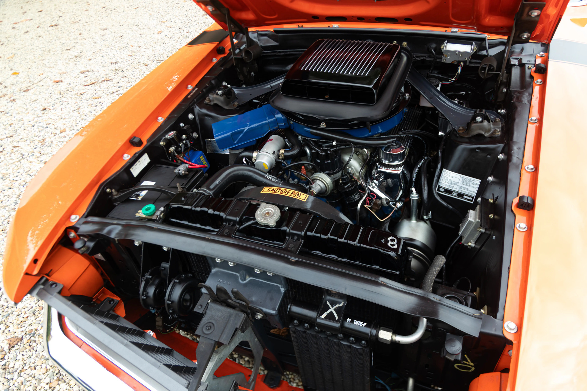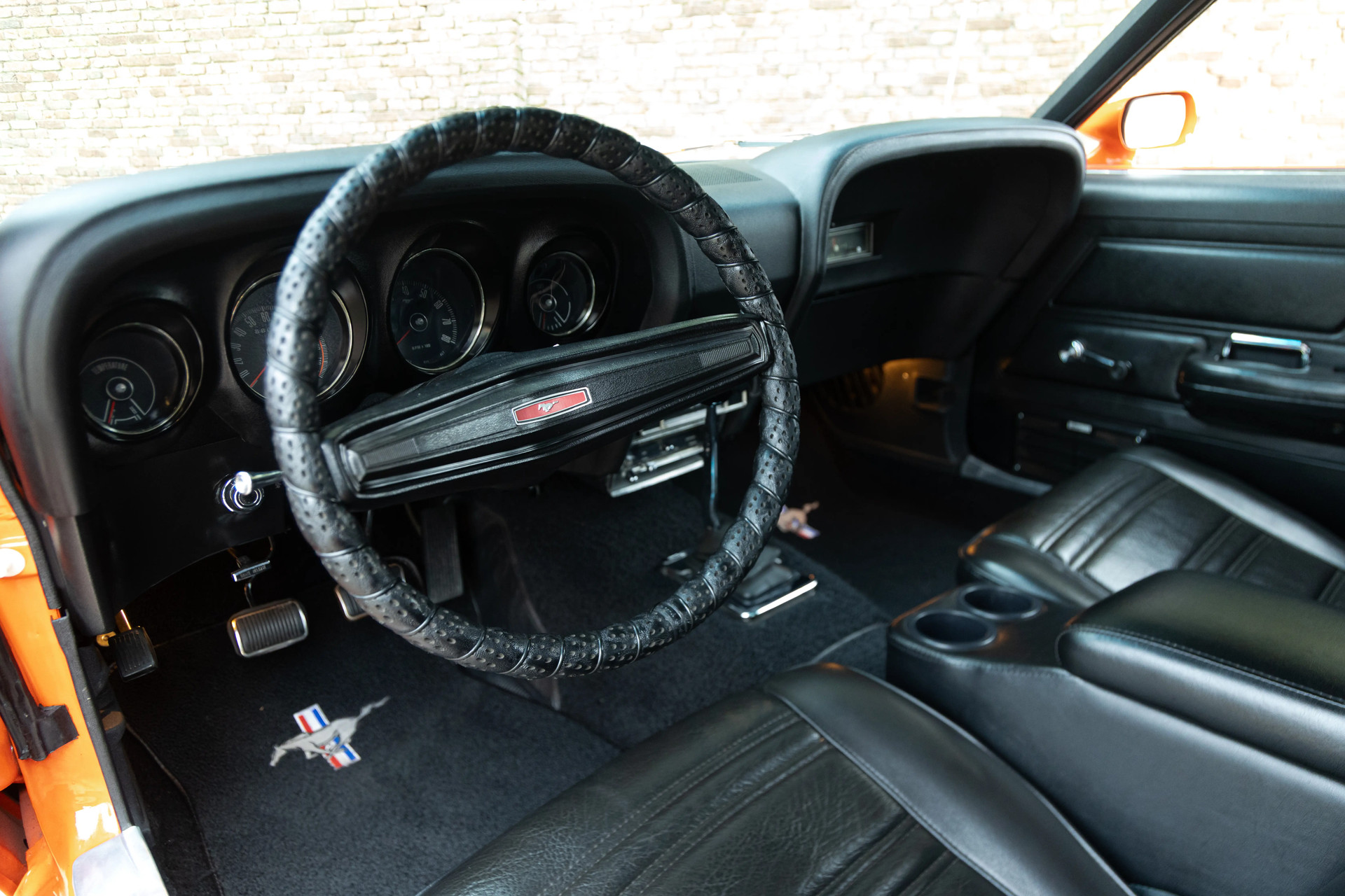 Die meisten Kunden, die am Montag einen Mustang bestellten, entschieden sich jedoch nicht für den sehr exklusiven und teuren Boss 302, von dem 8.641 Stück produziert wurden. Nur eine Handvoll bekam auch das eng übersetzte Vierganggetriebe und die einzigartige Drag Pack-Hinterachse mit Ölkühler. Diese blutorange 302 tut es also.
