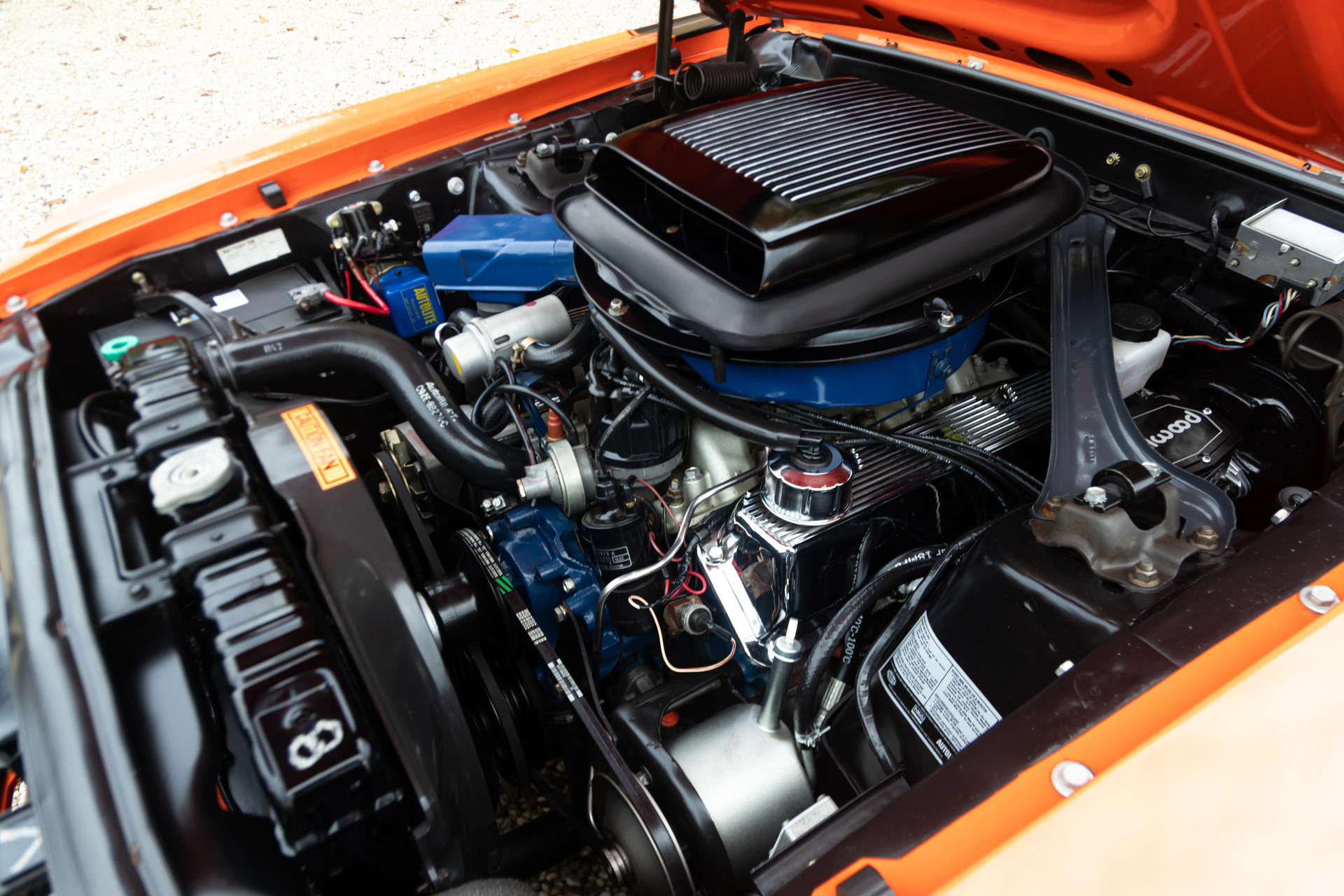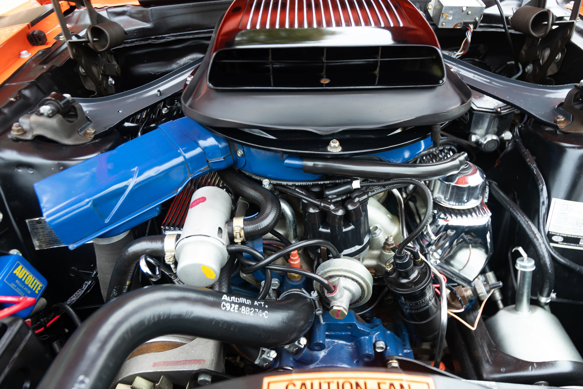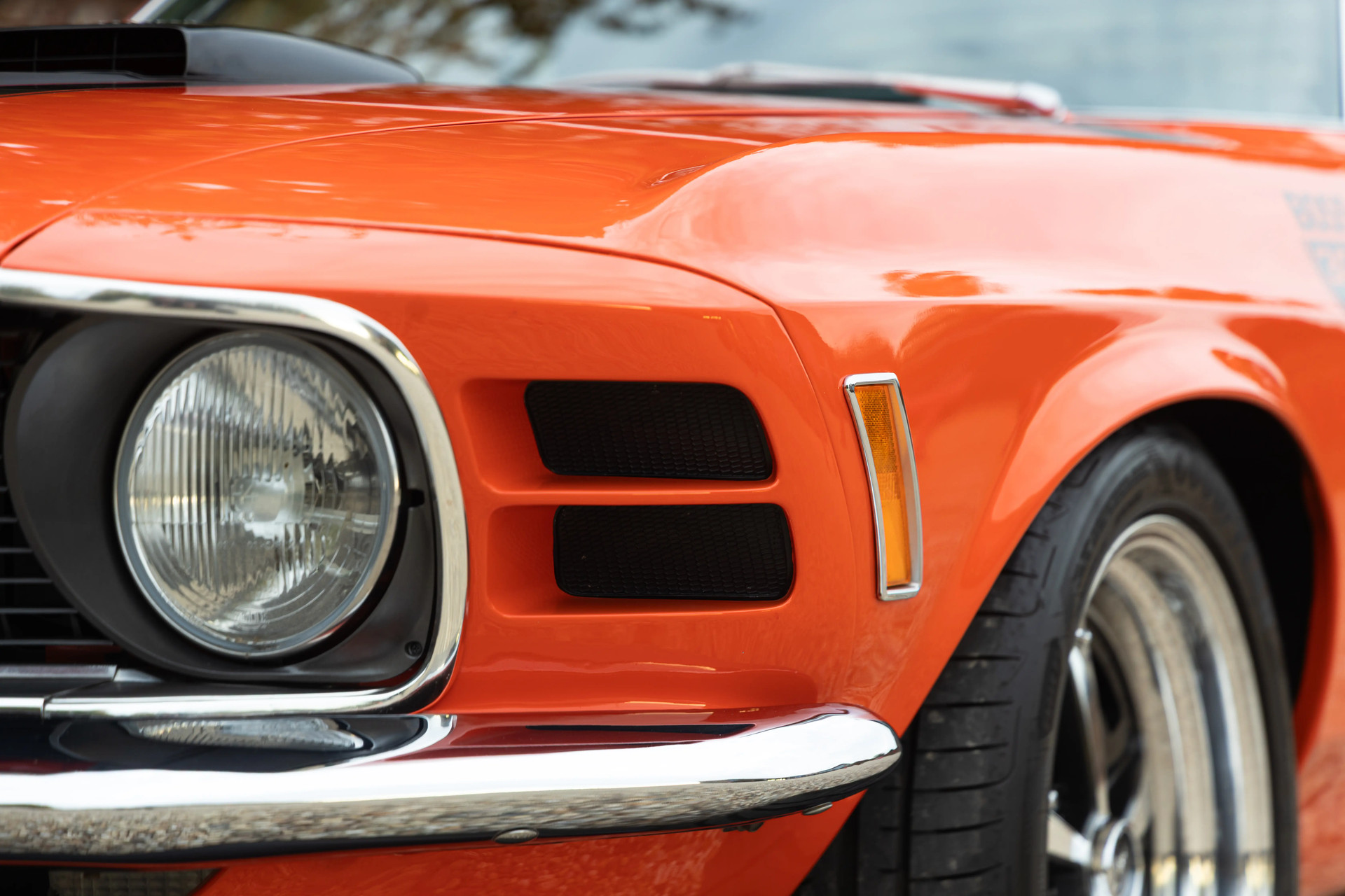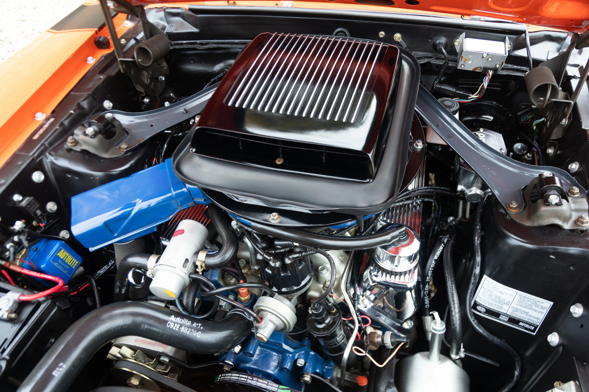 Die meisten Kunden, die am Montag einen Mustang bestellten, entschieden sich jedoch nicht für den sehr exklusiven und teuren Boss 302, von dem 8.641 Stück produziert wurden. Nur eine Handvoll bekam auch das eng übersetzte Vierganggetriebe und die einzigartige Drag Pack-Hinterachse mit Ölkühler. Diese blutorange 302 tut es also.