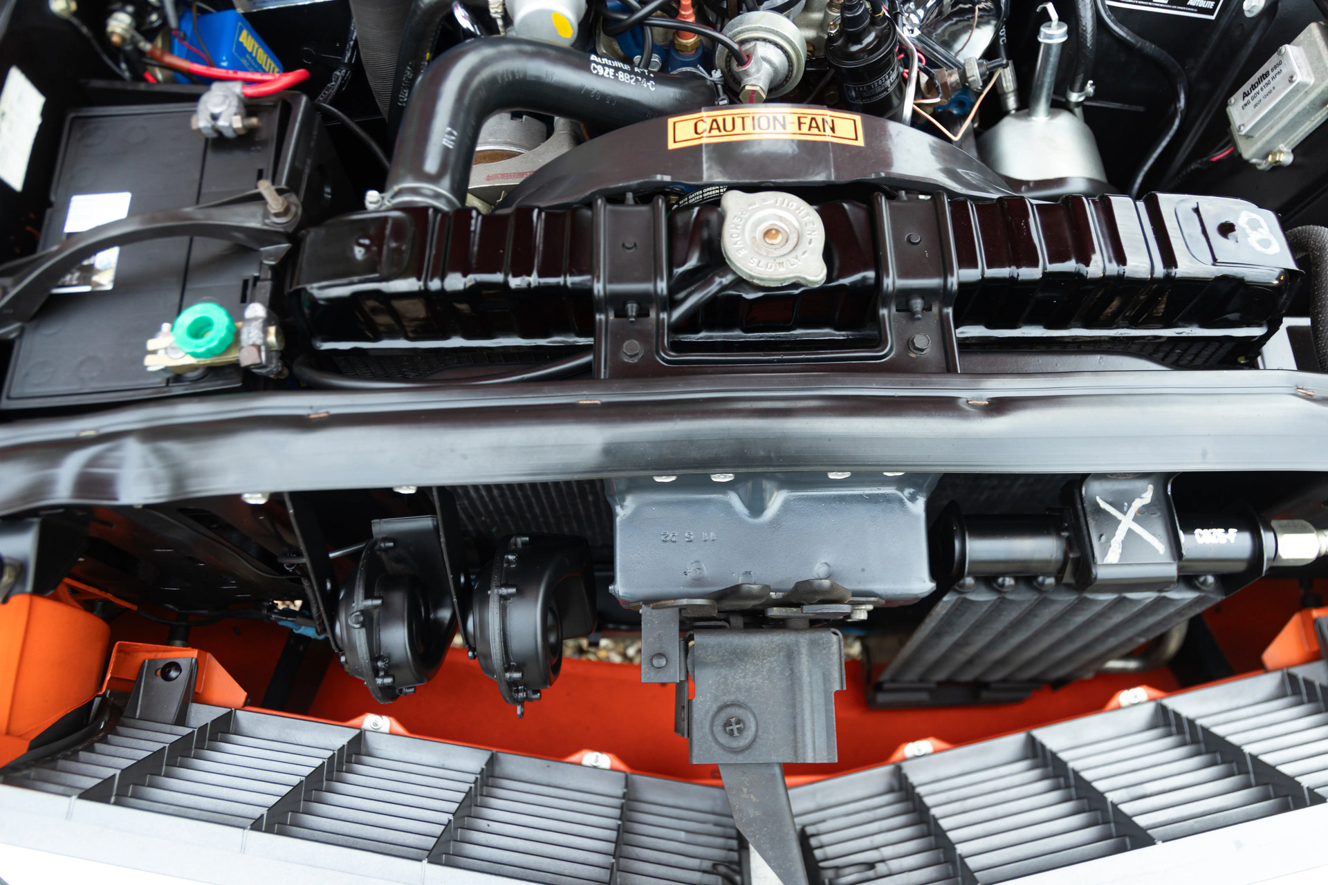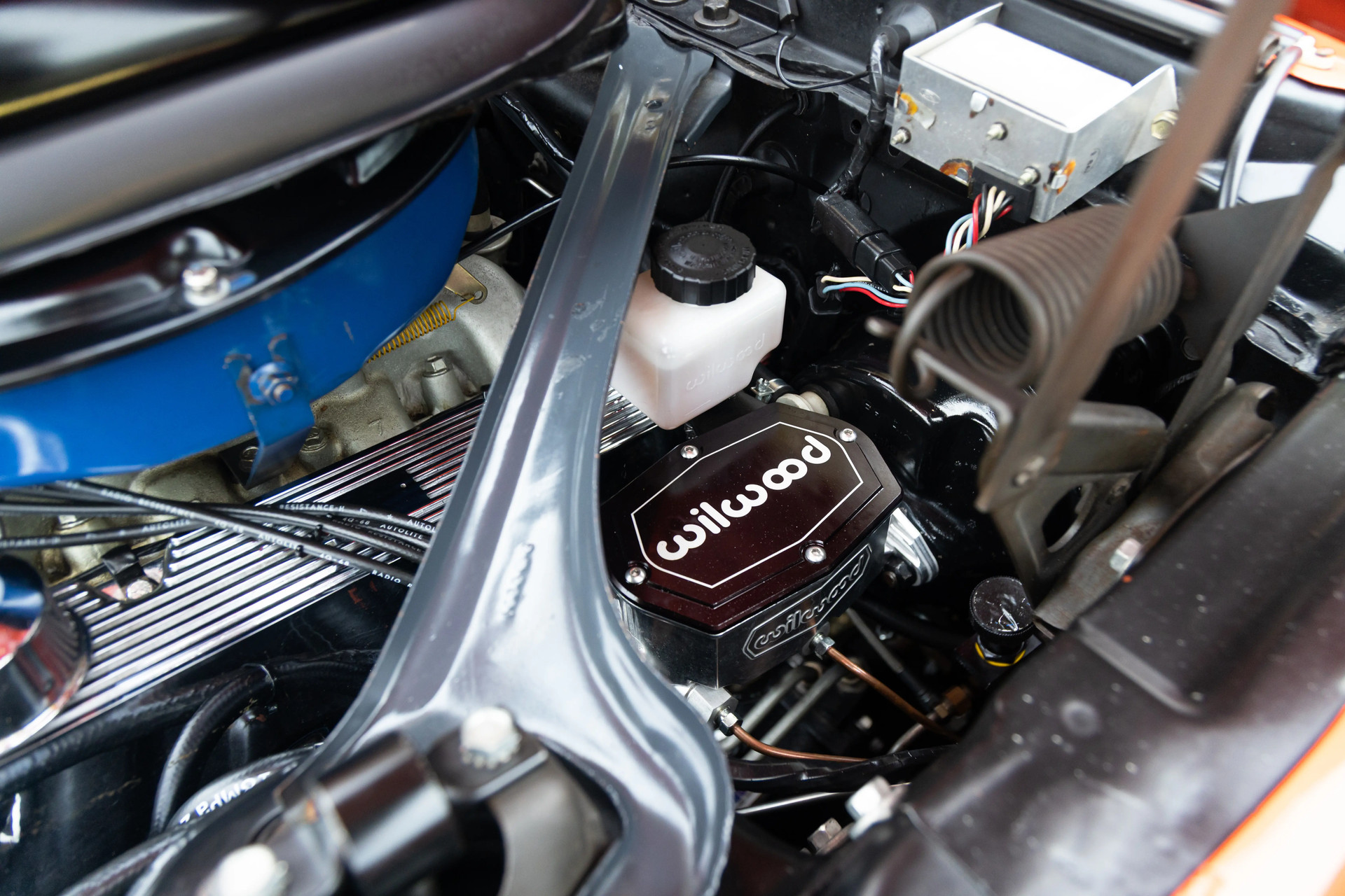 Um lange Fahrten angenehmer zu machen, wurde ein Fünfganggetriebe eingebaut und größere Bremsen von Baer wurden eingebaut, damit das Auto besser stoppt. Dadurch passen die originalen 15 Zoll Räder nicht mehr und der letzte Besitzer hat sich für geschmackvolle Nachbauten in 17 Zoll entschieden. Das gleiche Modell, nur etwas größer. Es sieht gut aus auf dem Boss!