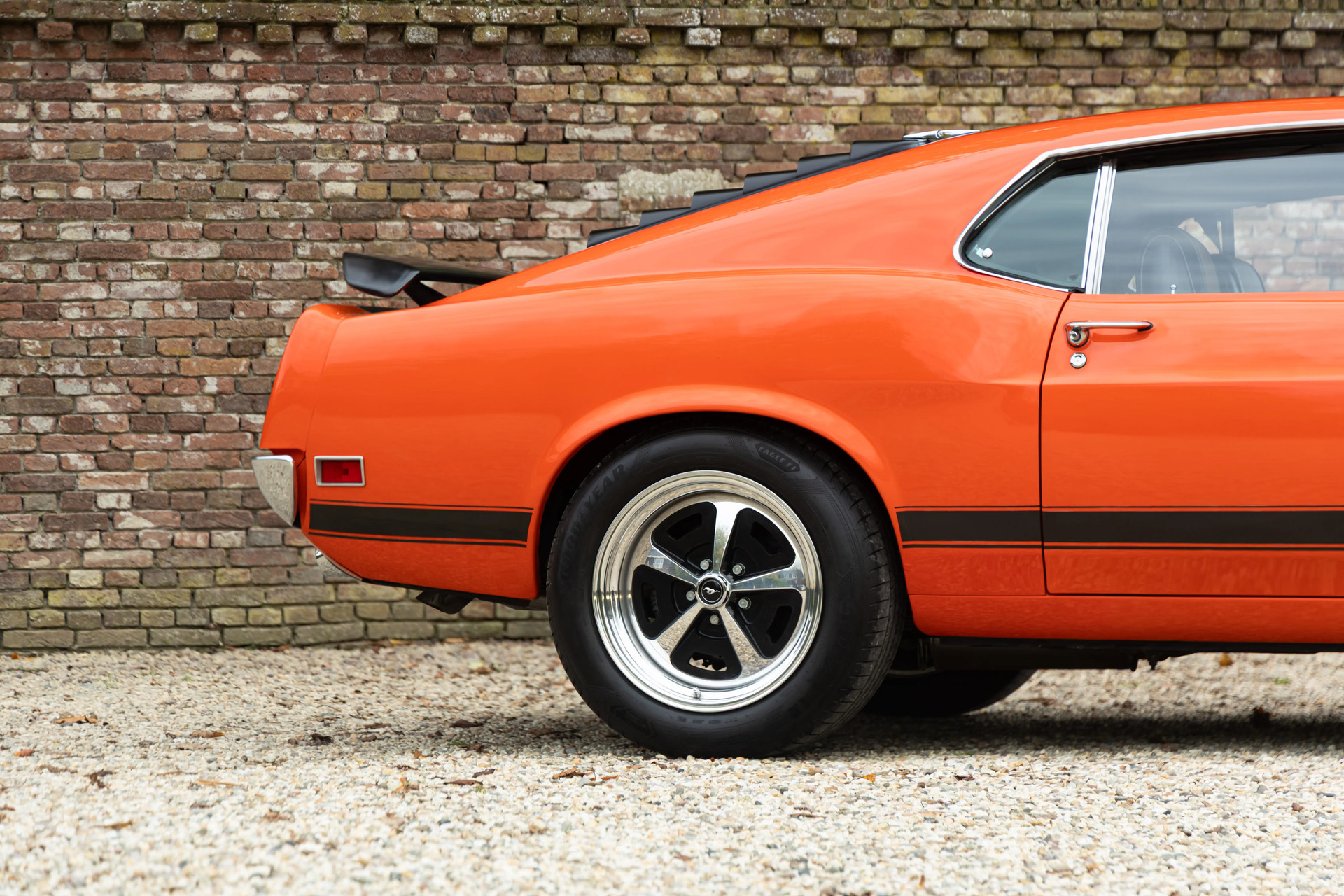Most people who ordered a Mustang on Monday, however, did not go for the very exclusive and expensive Boss 302, of which 8,641 were produced. Only a handful also got the close-ratio four-speed gearbox and the unique Drag Pack rear axle with oil cooler. So this blood orange 302 does.