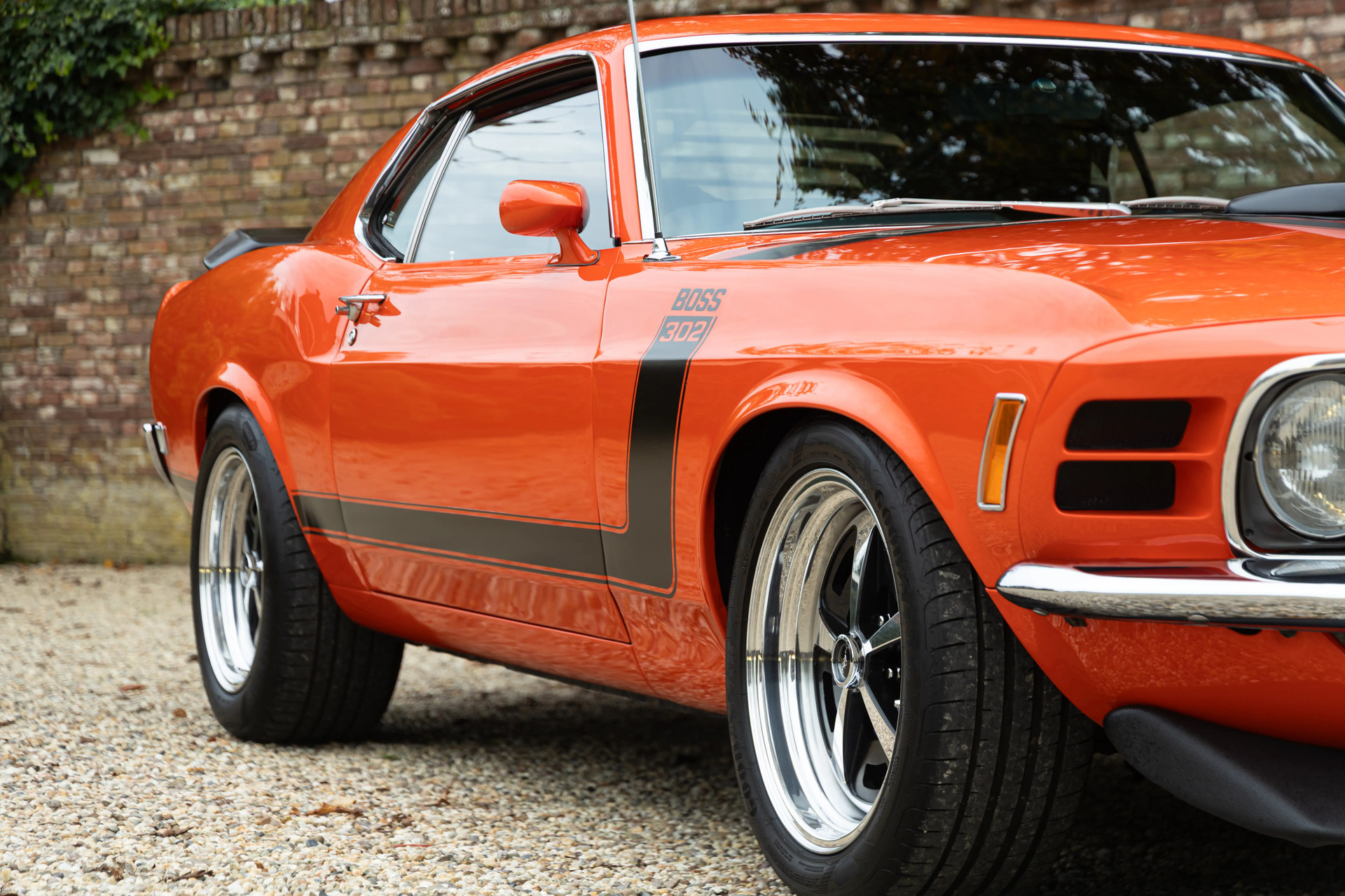 De Boss 302 in straat-trim was een uitvoering die ontstond door de auto’s waarmee Ford racete in het Trans-American Championship. Een klasse voor toerwagens van diverse komaf. Het eerste seizoen, 1966, werd notabene gewonnen door Alfa Romeo met de GTA. Ford presenteerde de Boss 302 als opvolger van de Shelby GT350 en deze kreeg een speciaal geprepareerde 5-liter V8 met versnellingsbak met korte overbrengingen en een betere ophanging.