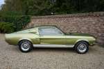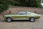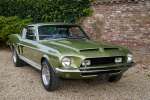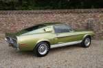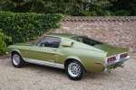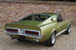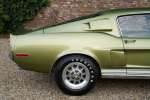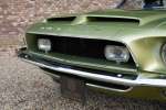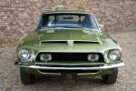 Mitte März 1968 lief der Shelby GT350 mit der Produktionsnummer 02802 vom Band. Lime Green Metallic war die Farbe, die der erste Besitzer des Autos, ein Arzt aus Boise, Idaho, gewählt hatte. Die Historie des Autos ist völlig vorhanden. Zu Beginn des neuen Jahrtausends wird das Auto komplett restauriert, wobei viele Originalteile wie die Zähler und andere spezifische Cobra-Teile erhalten blieben. Die Restaurierung wurde so gründlich und gut durchgeführt, dass Verarbeitung und Passform den Werksspezifikationen entsprechen und in einigen Bereichen sogar übertrafen. Die Farbe des Autos erwacht im Sonnenlicht völlig zum Leben, wunderschön! Der Zustand der Karosserie kann daher als optimal angesehen werden, ebenso wie die anderen äußerlich sichtbaren Dinge. Die schönen Zehn-Speichen-Räder, die Chrom- und die Beleuchtungsteile: alles befindet sich in optimalem Zustand.