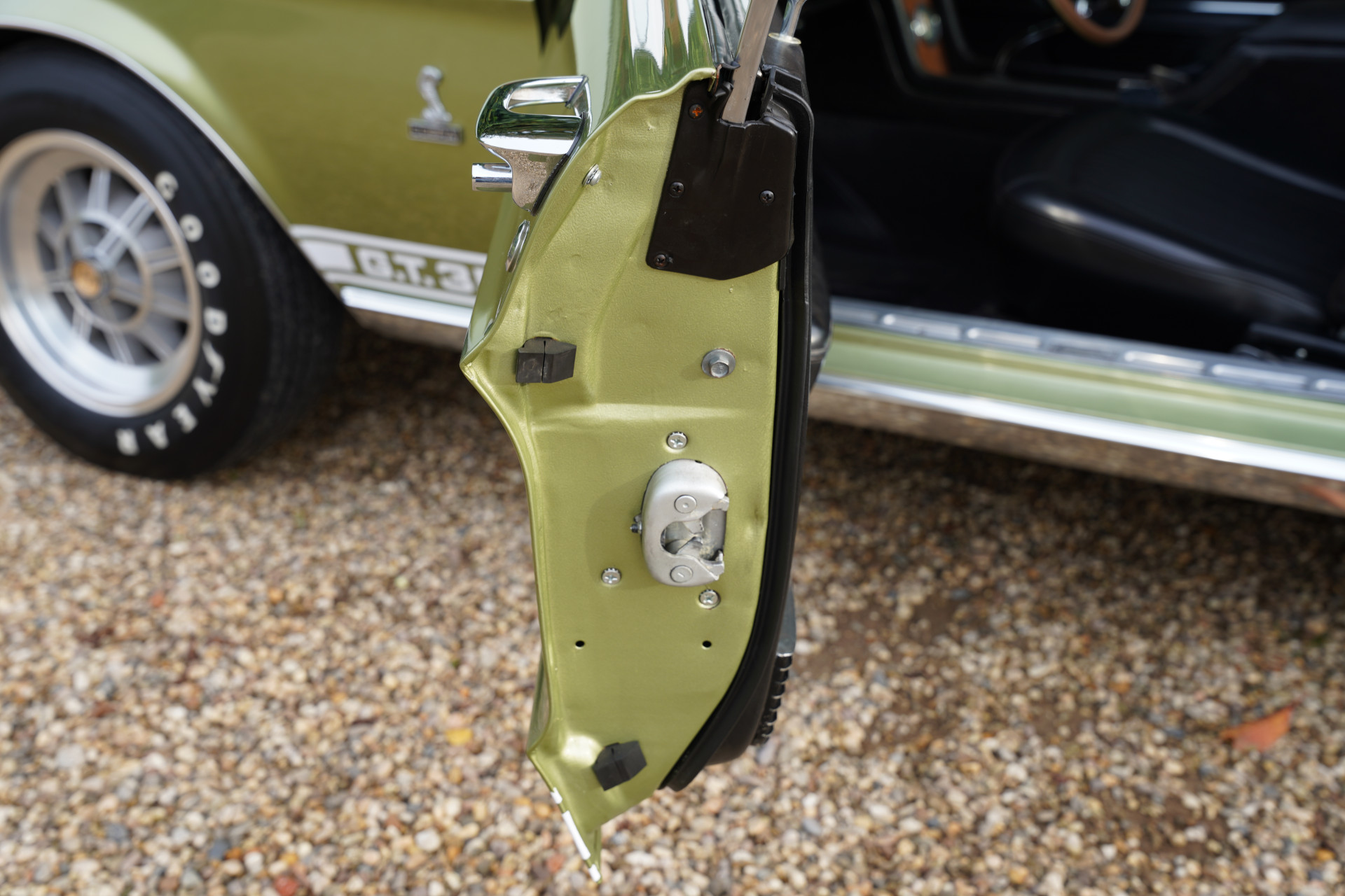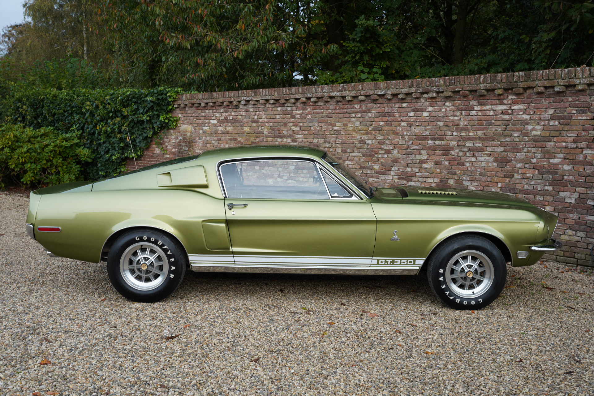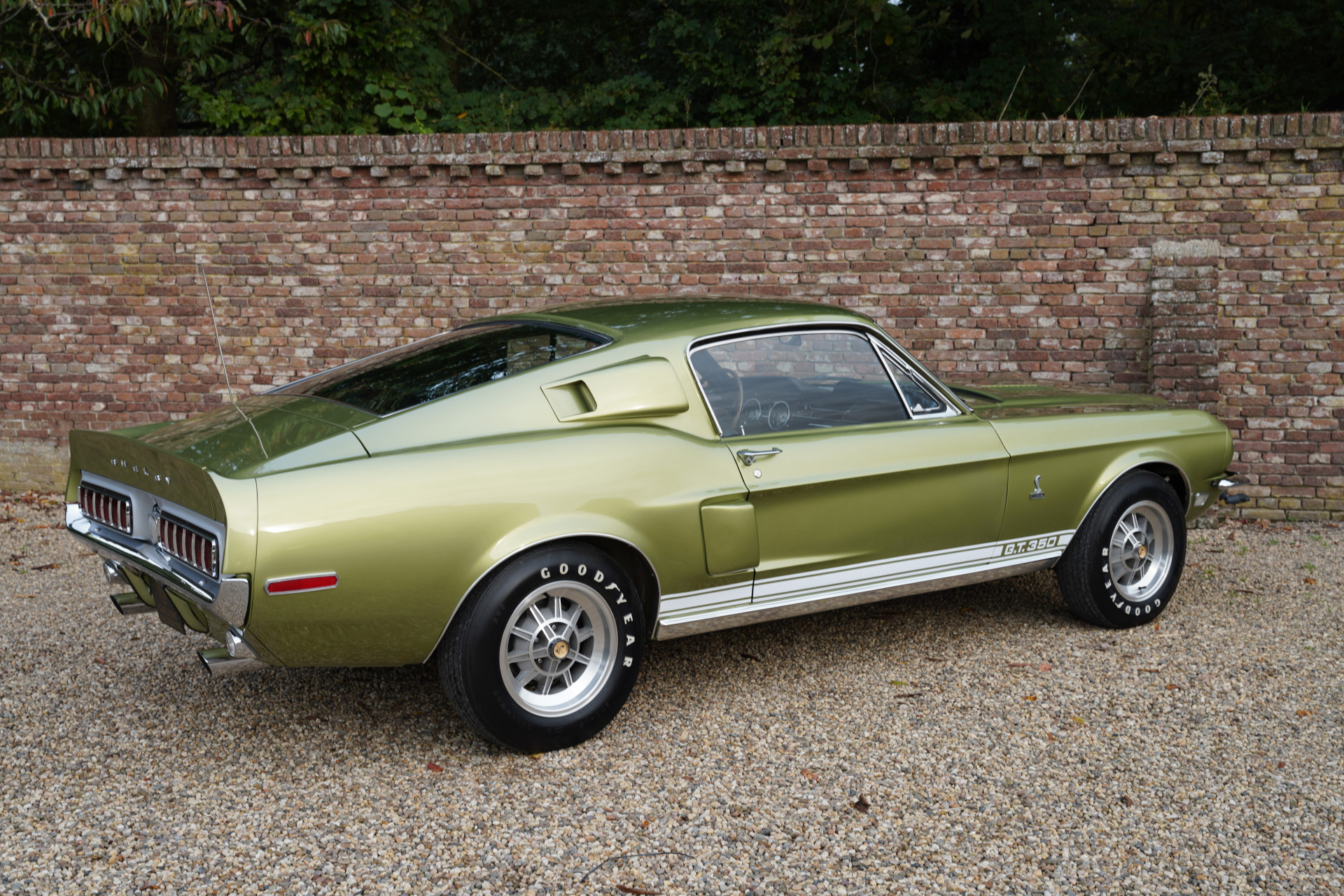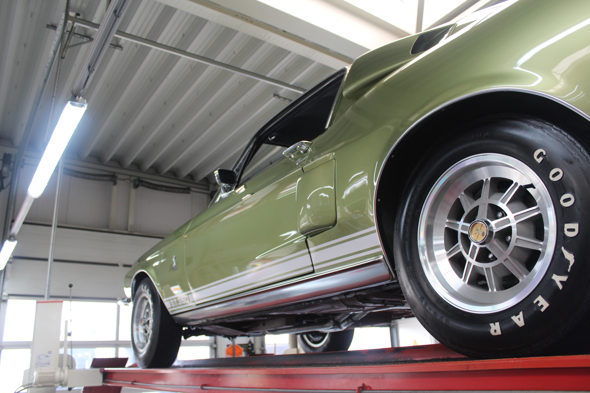 Halverwege maart 1968 rolde Shelby GT350 met productienummer 02802 van de band. Lime Green Metallic was de kleur die de eerste eigenaar van de auto, een dokter uit Boise, Idaho. De geschiedenis van de auto blijft bekend. In het begin van het nieuwe millennium wordt de auto volledig gerestaureerd, met behoud van veel originele onderdelen, zoals de meters en andere specifieke Cobra-zaken. De restauratie is dermate grondig en goed gedaan dat de afwerking en de passingen de fabrieksspecificaties evenaren en op sommige vlakken zelfs overtreffen. De kleur van de auto komt in zonlicht volledig tot leven, prachtig! De staat van de carrosserie is dus optimaal te noemen en datzelfde geldt voor de overige zaken die aan de buitenzijde zichtbaar zijn. De prachtige tienspaaks wielen, het chroomwerk en de verlichtingsdelen: alles verkeert in een optimale conditie.