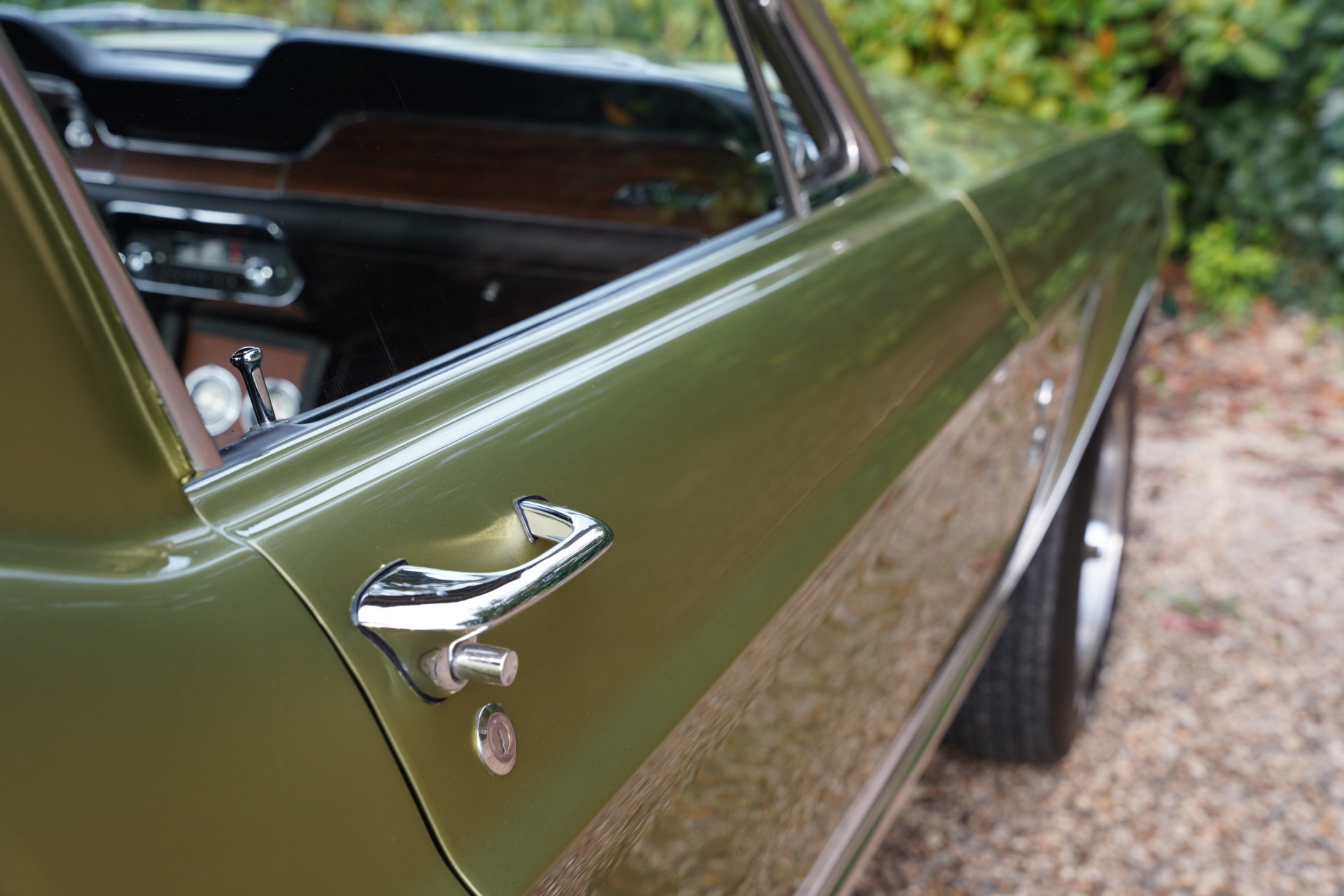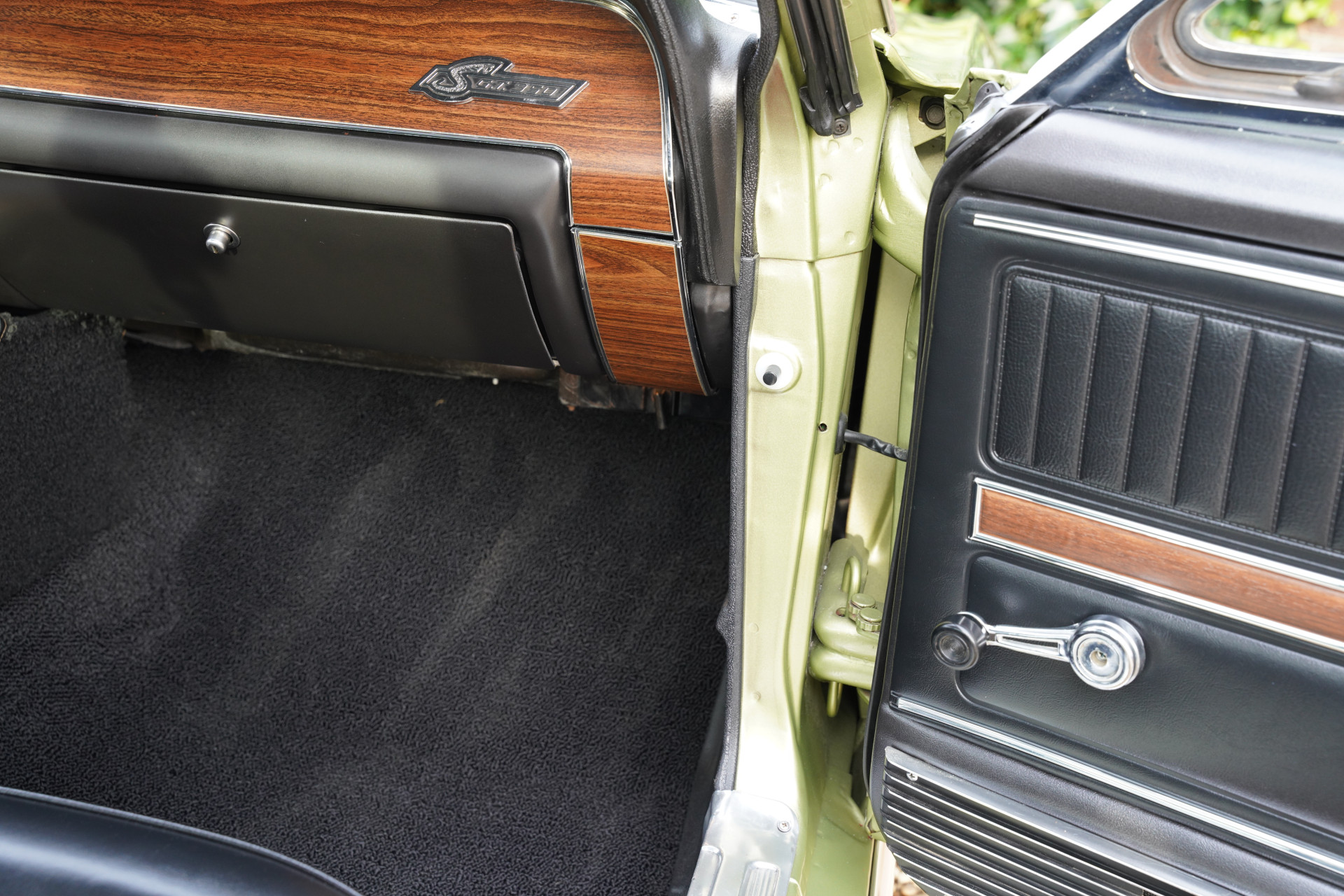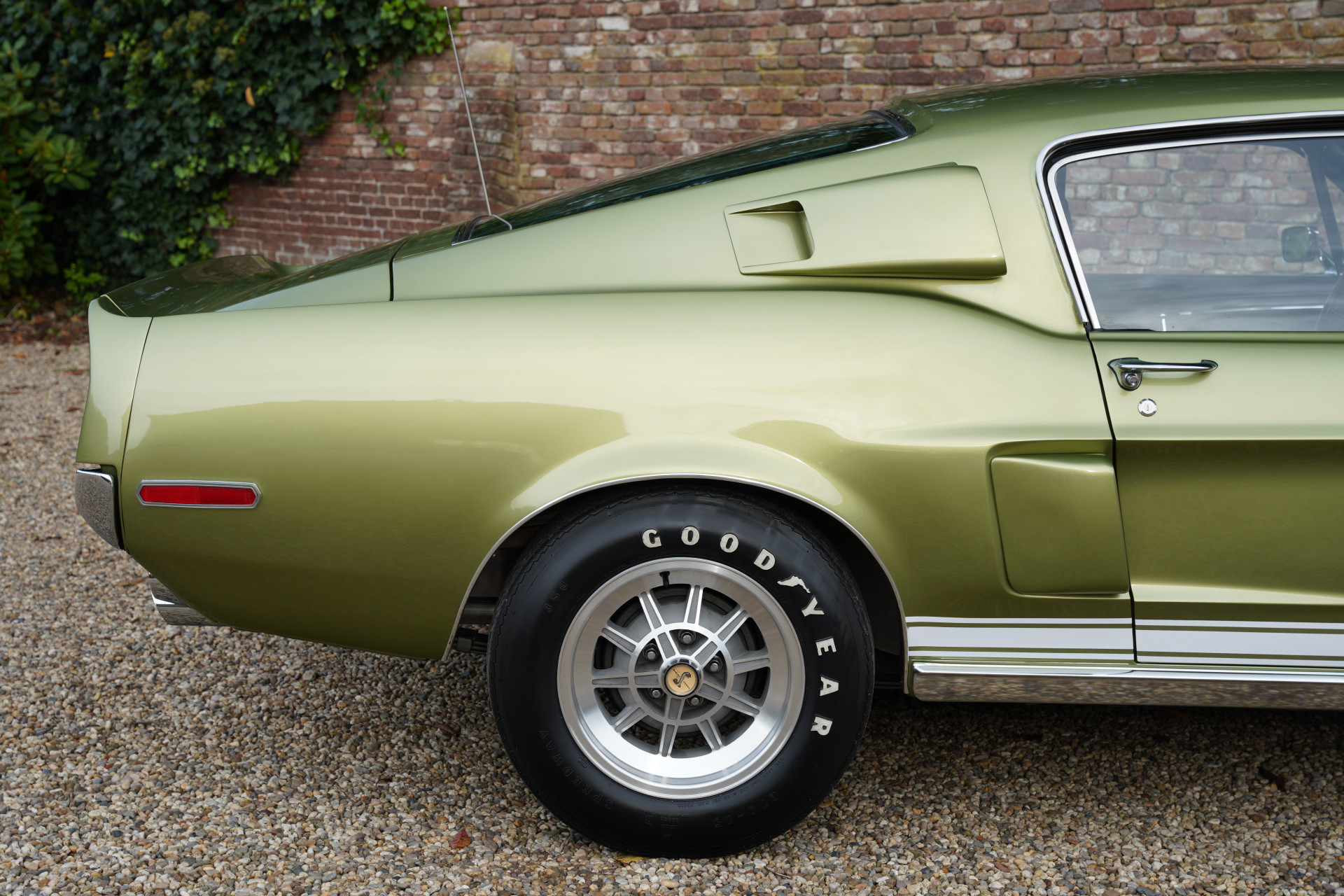 In mid-March 1968, this Shelby GT350 with production number 02802 rolled off the assembly line. Lime Green Metallic was the colour chosen by the first owner of the car, a doctor from Boise, Idaho. The car’s history has been well-documented. In the early 2000’s, the car underwent a full restoration, preserving many original parts, such as the gauges and other specific Cobra items. The restoration was done so thoroughly and well that the finish and fitment match factory specifications and even exceed them in some aspects. The car’s colour springs into life in sunlight, truly magnificent! The condition of the bodywork can only be described as optimal, with the same applying equally to other exterior visible components. The beautiful ten-spoke wheels, chrome work, and lighting elements: everything is in excellent condition.