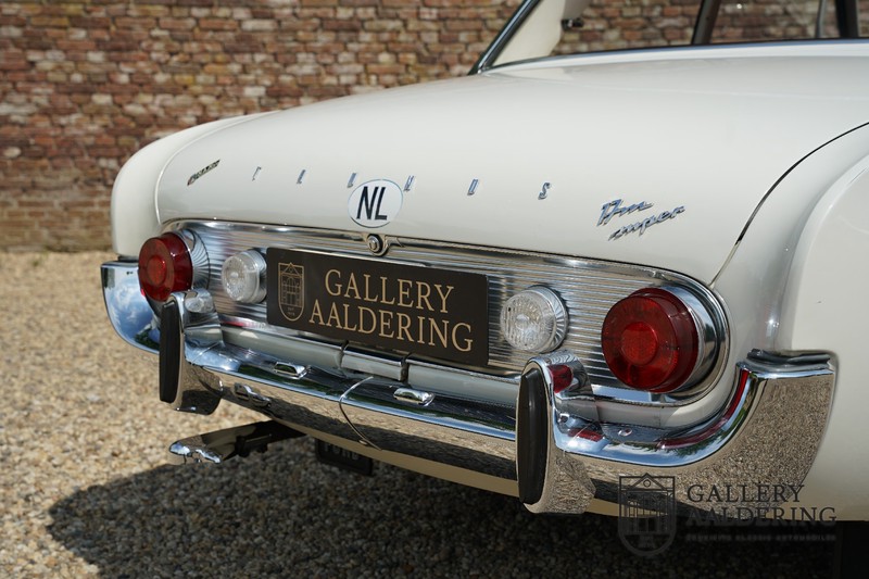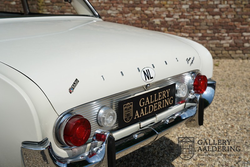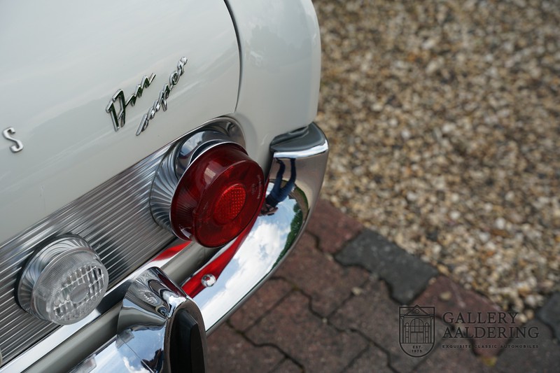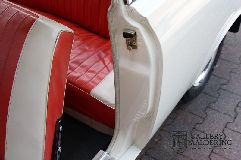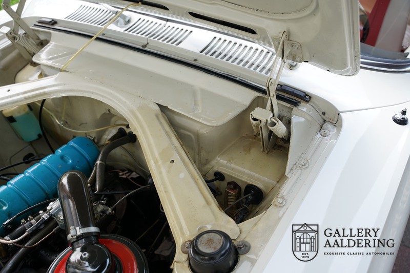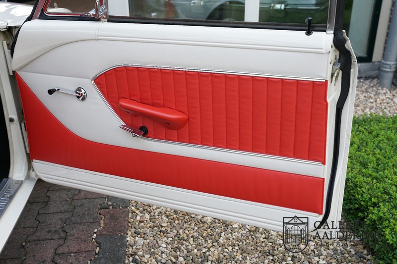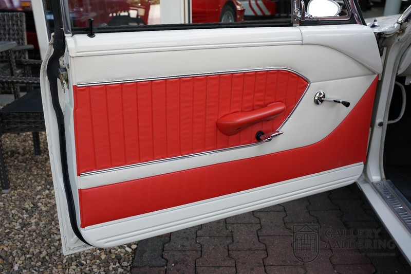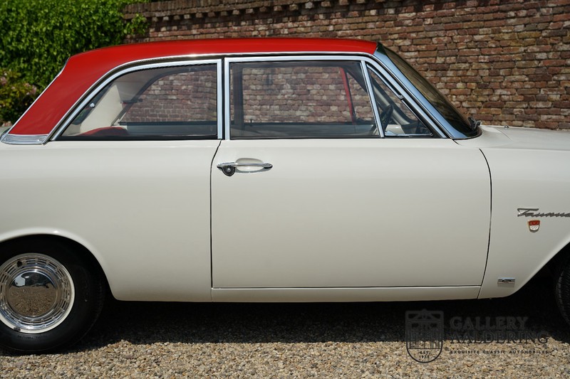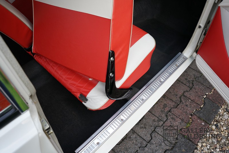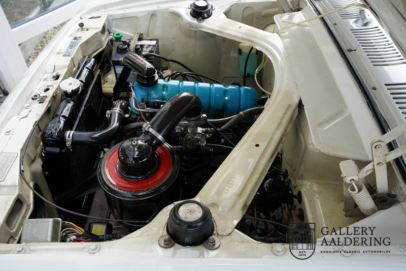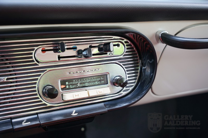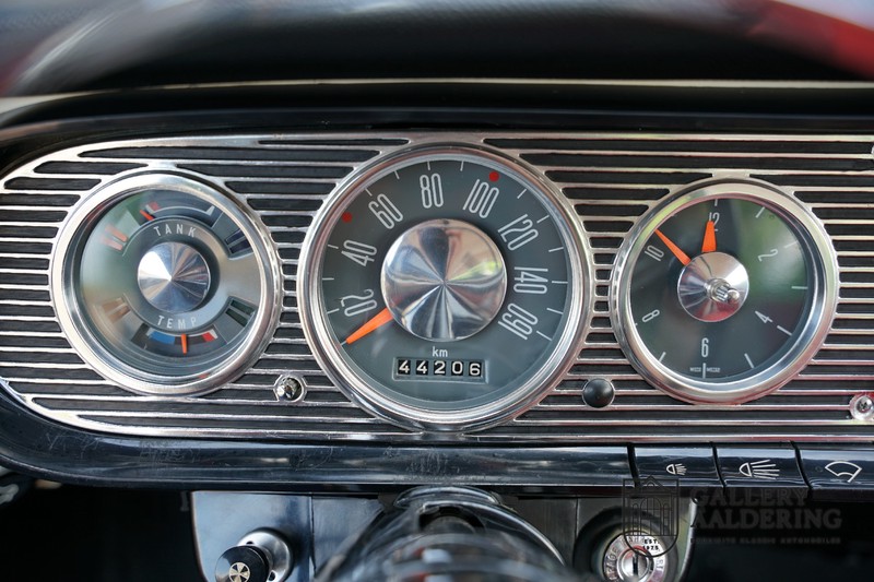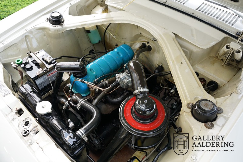 Dieser sehr originale Ford Taunus 17M Super wurde in dem Jahr 1963 neu geliefert in den Niederlanden. Das Interessante ist, dass das Fahrzeug noch vollkommen seinen Erstlack hat, es befindet sich noch komplett in einem sehr originalen Zustand. Wir sind uns ziemlich sicher, dass die Laufleistung von nur 44.200 Km original ist. Die originale Karosserie hat dünnes Blech und korrekte Passungen. Das Auto hat eine typische zweifarbige Farbkombination aus den 60er Jahren, der originale Lack sieht übrigens noch immer wunderschön aus. Der Taunus hat seine originale Räder mit korrekten Reifen, auch das Interieur ist noch vollkommen original und befindet sich in einem sehr schönen Zustand. Beim Öffnen der Türen fällt sofort das sehr gut konservierte Interieur auf, die Instrumente und Bedienelemente sind ebenfalls original und funktionieren einwandfrei und das originale Blaupunkt Radio wurde ab Werk geliefert. Das zweifarbige Kunstleder passt gut zu der Außenseite des Fahrzeugs und befindet sich in einem makellosen Zustand. Das Gleiche gilt für den Teppich und den Dachhimmel.