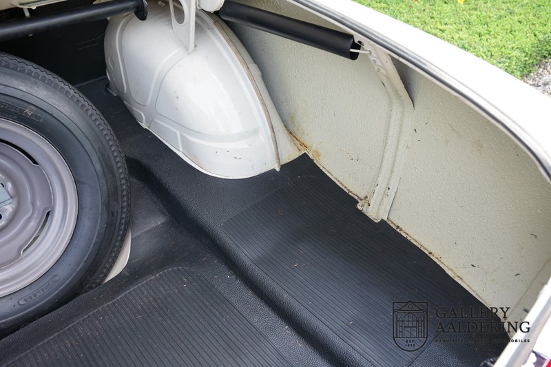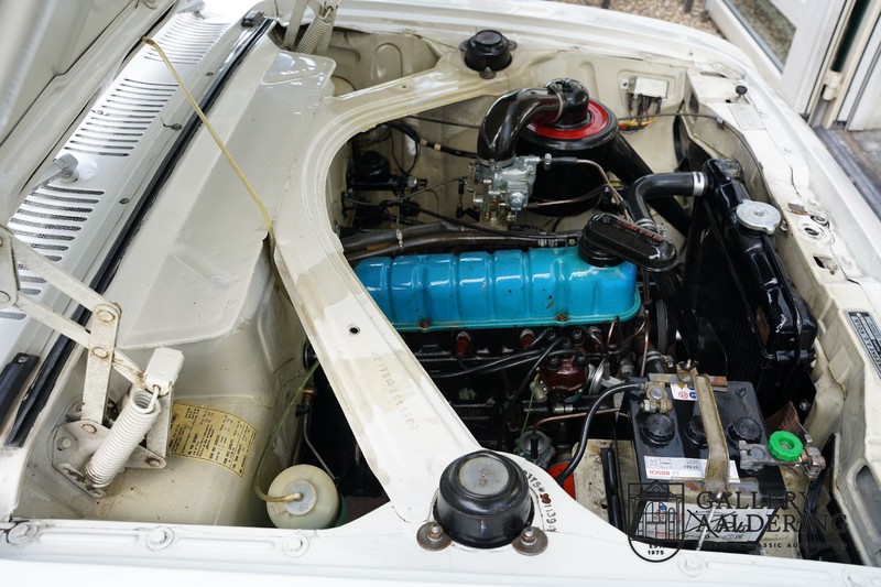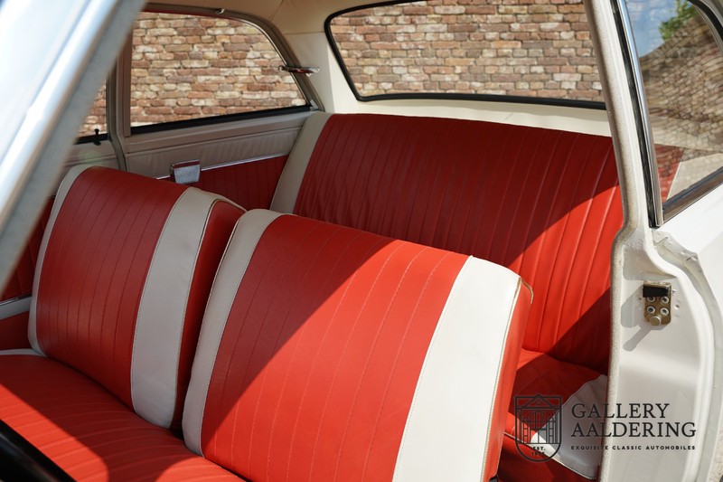 We have an original Dutch supplied 1963 Ford Taunus 17M Super. Let’s immediately get to the nub of it: the car still has its complete first coat of paint! Both the in and outside of the car is wonderfully original and is in unbelievably fine condition. The 44,200 km on the clock is almost certainly correct. The “coachwork” is incredibly authentic with nice and thin, correctly aligned panelwork. The quality of the original paintwork is brilliant with a typical 60’s colour finish. The car has kept its original wheels with correctly sized tyres. The totally authentic interior is simply gorgeous. As soon as you pop your head inside you immediately appreciate that here we are dealing with a beautifully preserved original vehicle. Instruments and controls are also in a wonderful original state as is the factory fitted Blaupunkt radio. The two-tone vinyl upholstery is a perfect match to the exterior and is immaculate. The same is true for the carpets and roof lining.