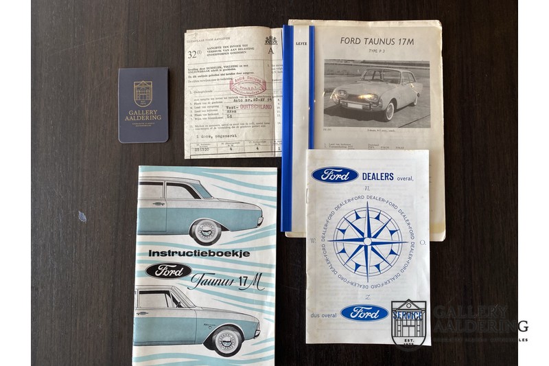 Das Auto ist gut dokumentiert mit der originalen Bedienungsanleitung, einer Broschüre mit Ford Vertragshändlern, einer technischen Bedienungsanleitung und den originalen Steuerunterlagen aus Holland. Ein sehr originaler Ford Taunus 17M mit Erstlack, ein Auto für den echten Ford Liebhaber/Sammler.