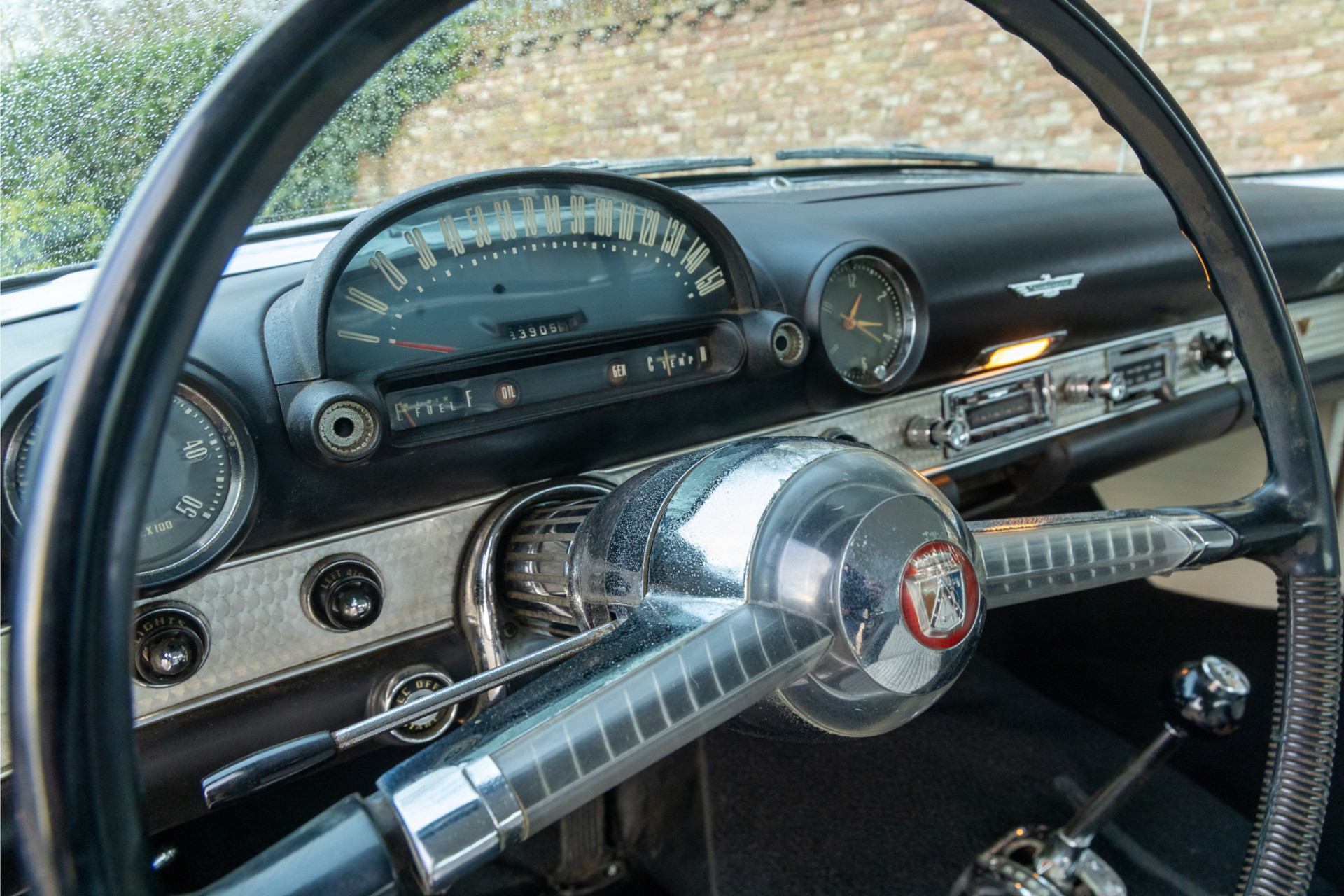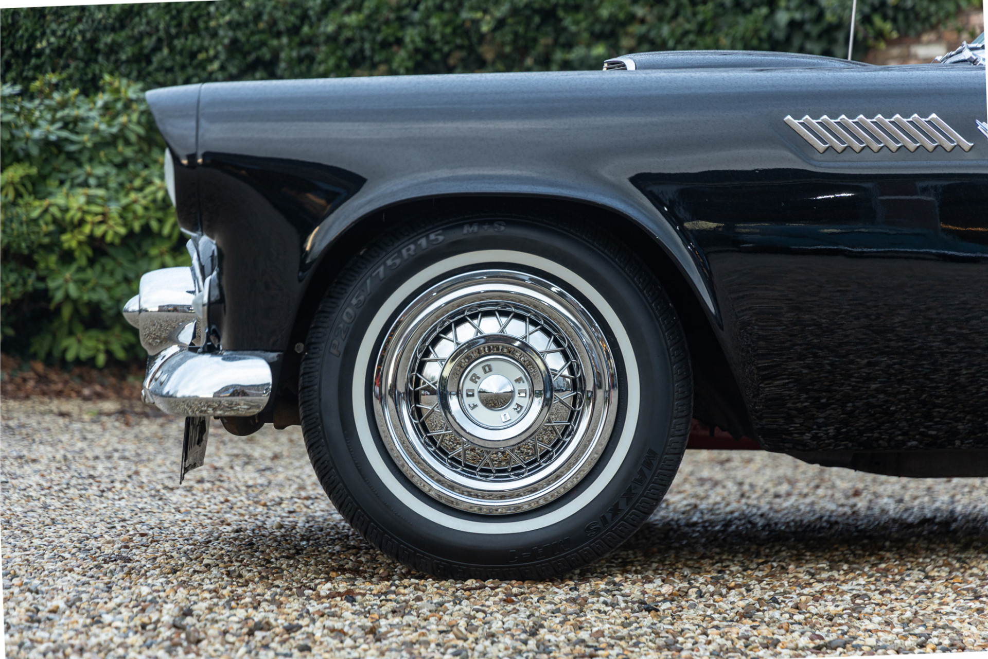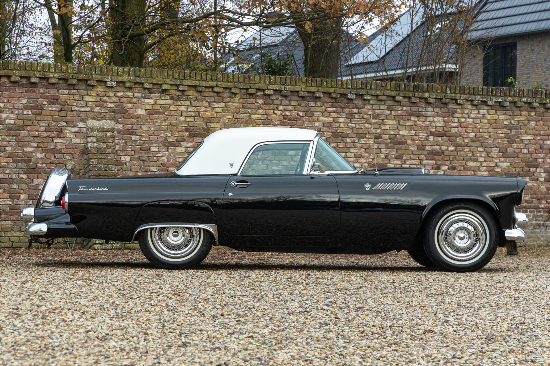 Afgewerkt in het elegante Raven Black, met een tweekleurig zwart-wit interieur dat precies de juiste balans treft tussen Amerikaanse glamour en ingetogen stijl. Deze “Baby Bird” ziet er prachtig uit in zijn originele kleurstelling. Het is een vroege productieauto en dit exemplaar reflecteert de jaren 50 op perfecte wijze: het optimisme, het vertrouwen, de overtuiging dat schoonheid en techniek elkaar kunnen versterken zonder compromissen. Dit was simpelweg een andere tijd.