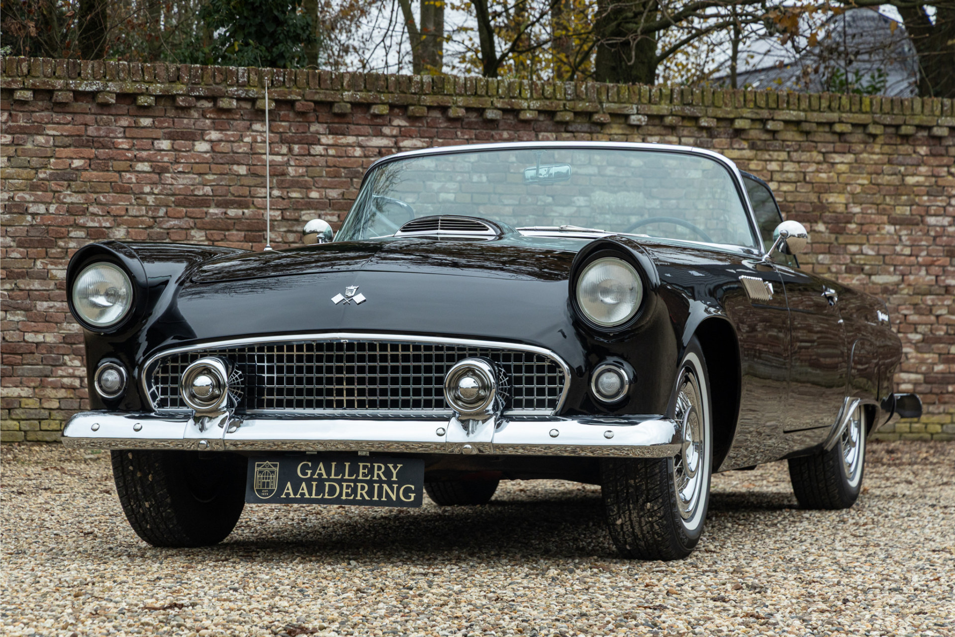 De Ford Thunderbird uit 1955 is het soort auto dat de Verenigde Staten van de jaren 50 fraai weergeeft. Een symbool van een tijd waarin de Verenigde Staten droomde, waarin design mocht schitteren en waarin een roadster de wereld veroverde zonder ooit zijn stem te verheffen. Wie vandaag een Baby Bird zoekt in nette staat, hoeft niet verder te kijken. Neem contact op met Gallery Aaldering en ontdek deze Thunderbird in levenden lijve. Wij exporteren onze voertuigen wereldwijd, vraag naar de mogelijkheden.
