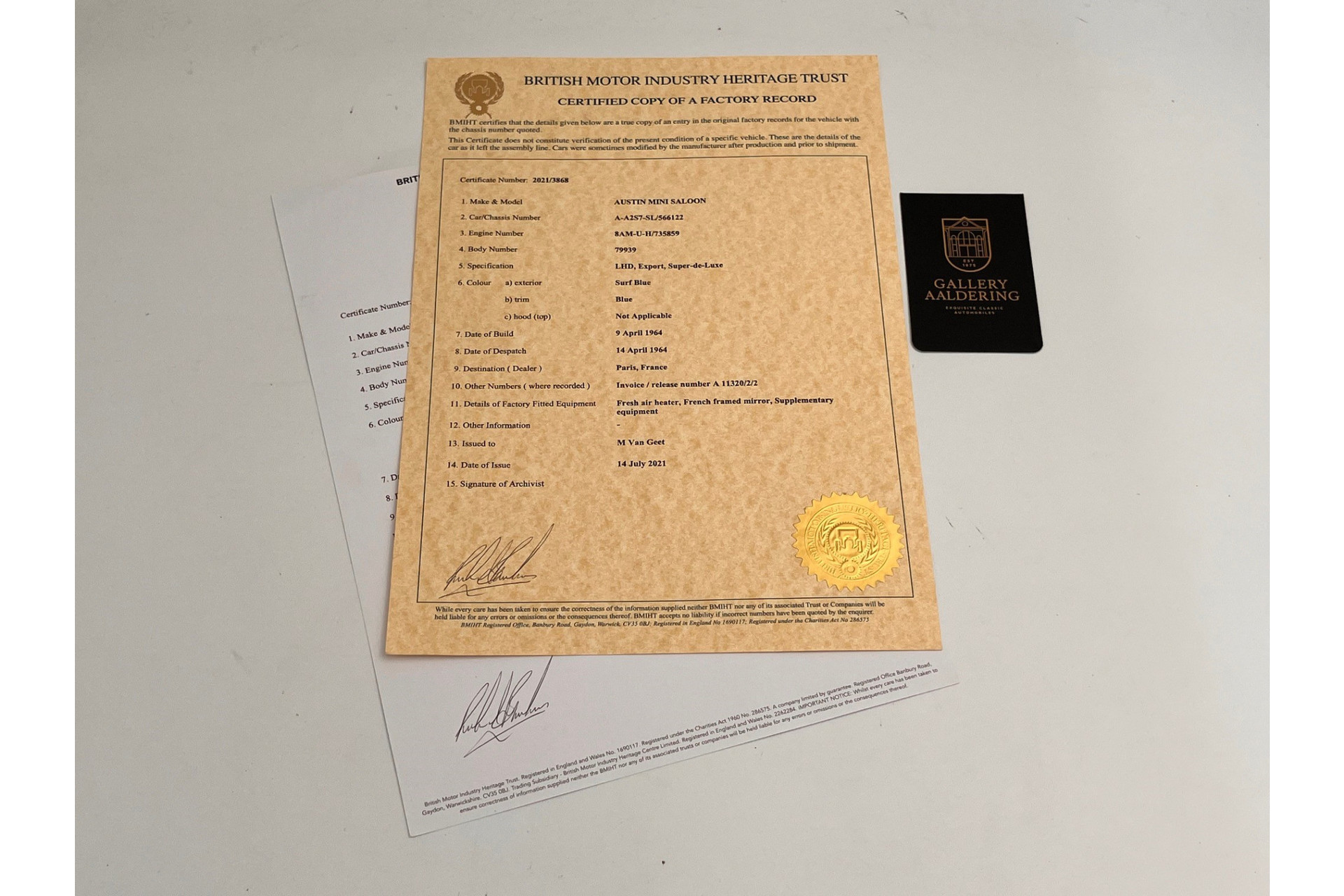 - Supplied with the Heritage Trust Certificate