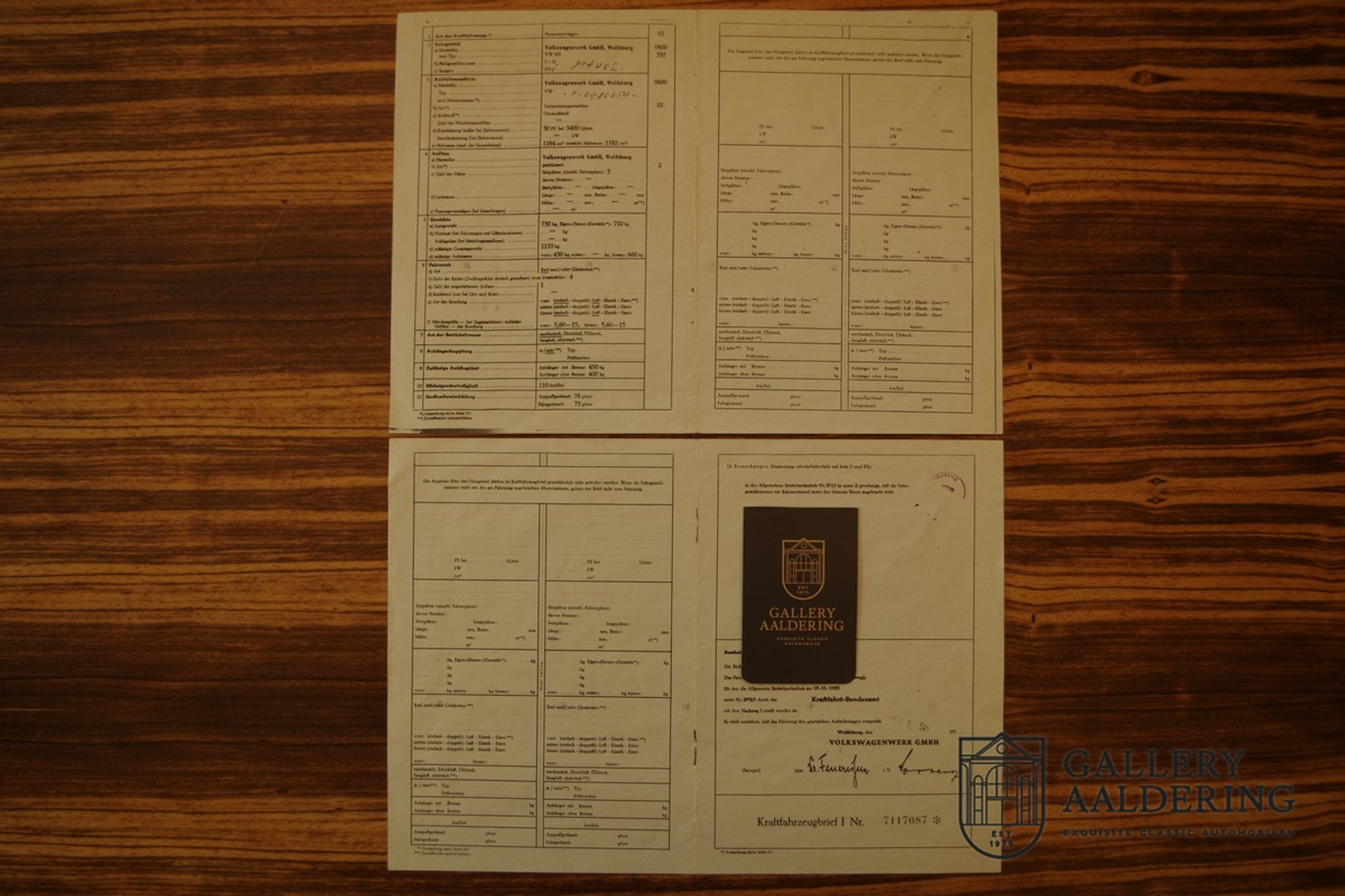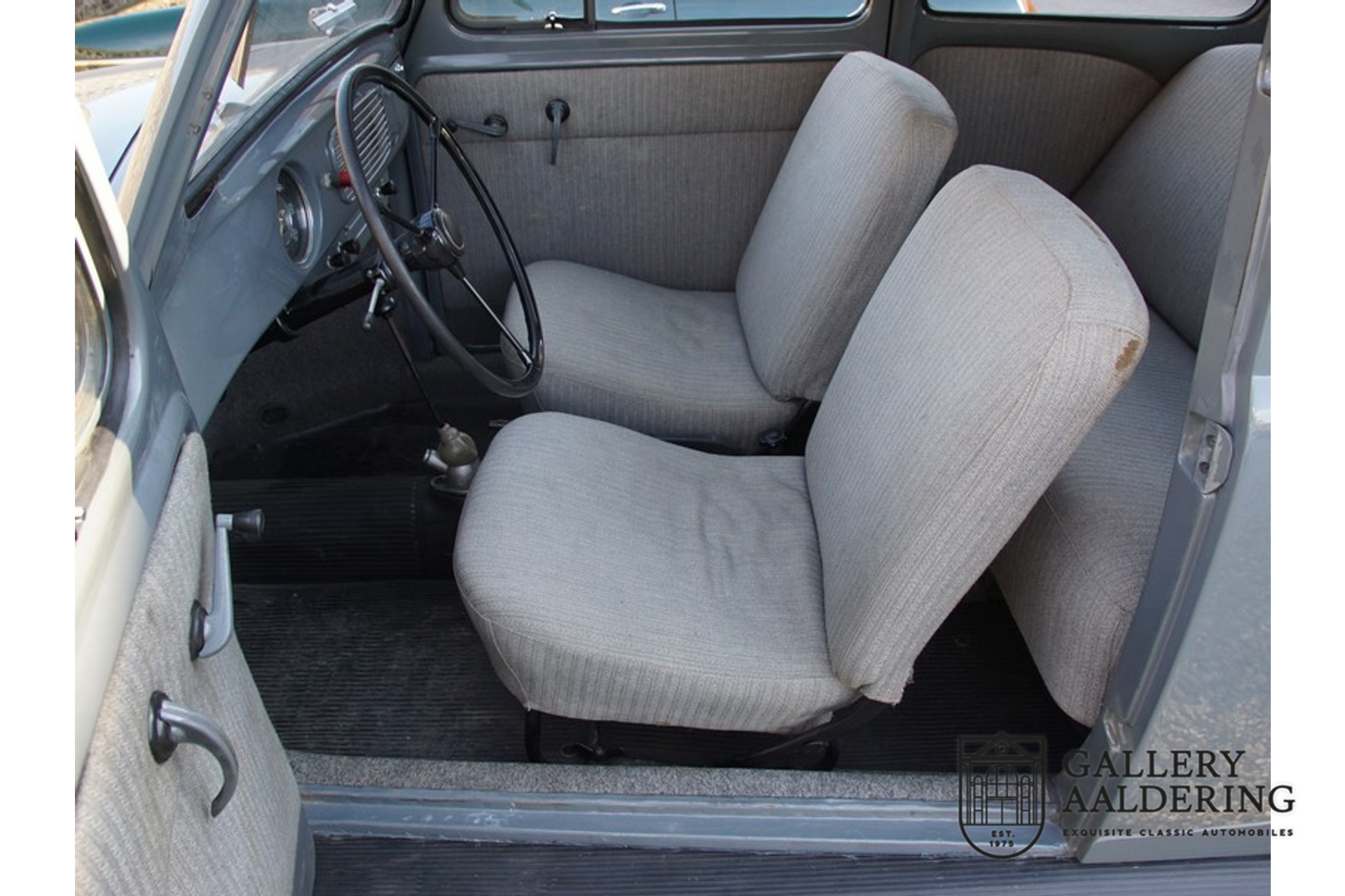 Ce tout simplement magnifique 1955 Volkswagen La Coccinelle 1200 « Oval window » est arrivée dans les locaux d'Islinger à Mannheim le 14 février 1955. La voiture a été exportée aux Pays-Bas en 1993 lorsque le 3ème propriétaire l'a achetée. Ce dernier propriétaire a gardé la voiture pendant plus de 24 ans ! Il est entièrement documenté du premier jour à nos jours, y compris les documents d'import/export, les changements de propriété et de nombreuses factures, ce qui en fait une collection unique de documents. Dans le passé, cette VW a été entièrement révisée et restaurée en Allemagne. La garniture intérieure d'origine a été entièrement reconditionnée. Elle a une finition d'origine 'Jupitergrau' comme elle a conservé ses matching numbers, moteur 1200 d'origine. Il s'agit d'une fenêtre ovale très spéciale et exceptionnellement bien documentée.
