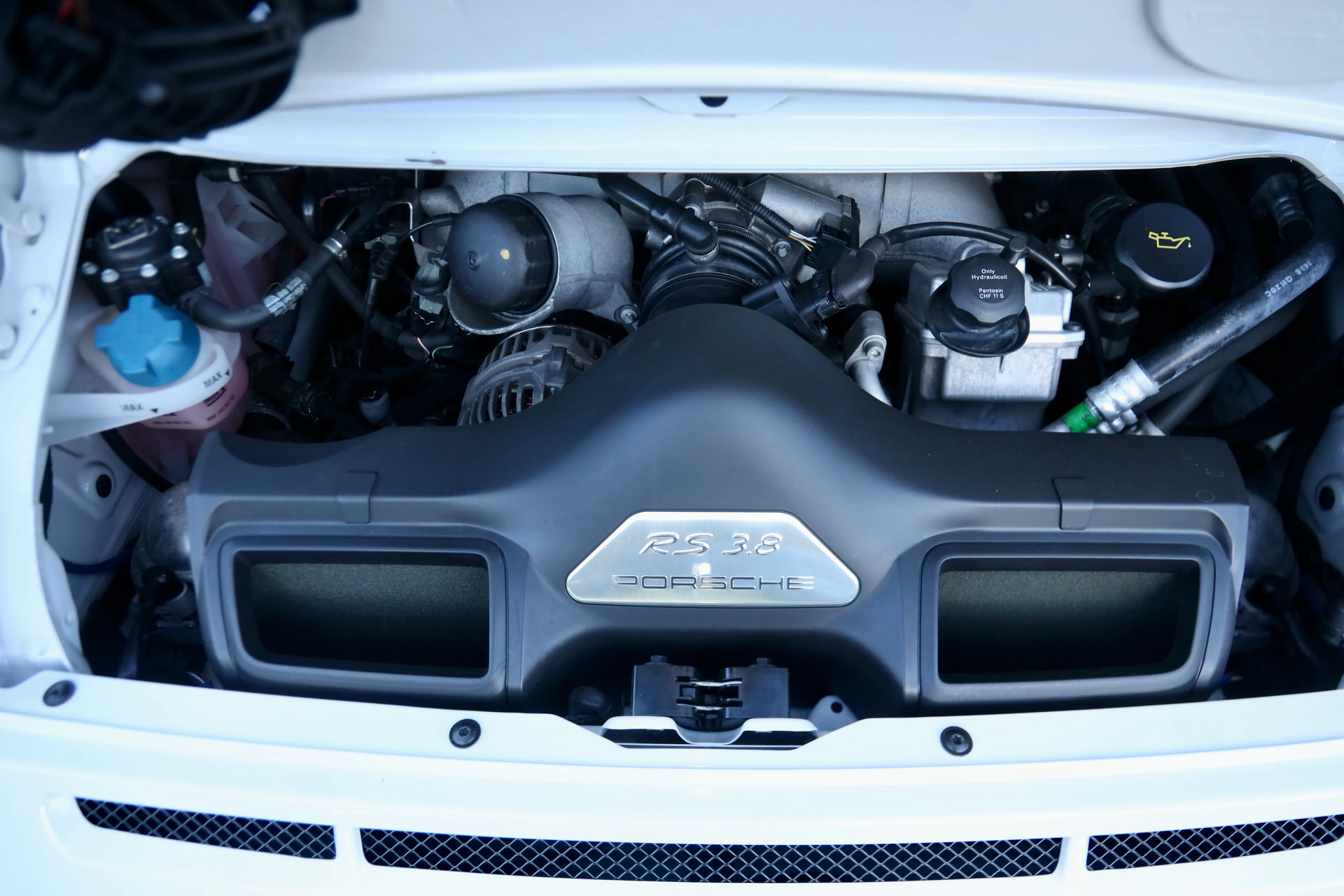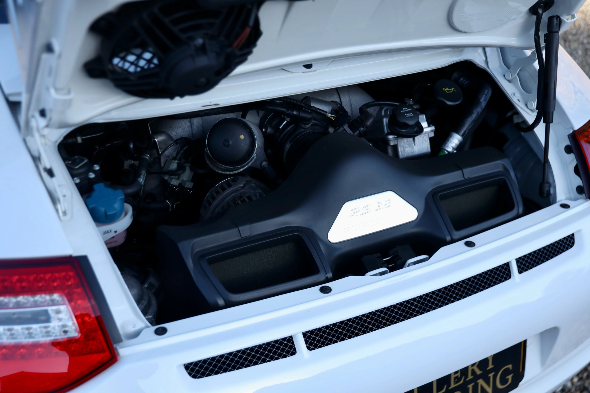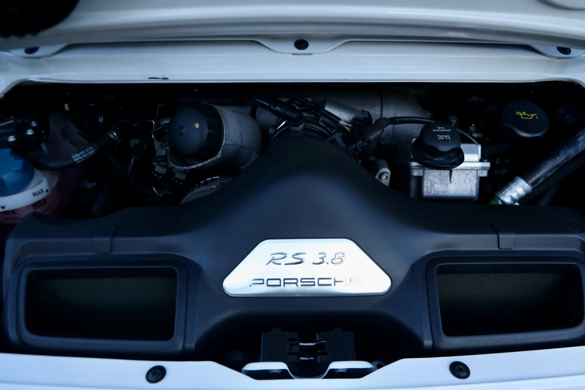 Besonders hervorzuheben ist auch der Einsatz modernster Technologien zur Gewichtsreduzierung. Ein Einmassenschwungrad, leichter als das des regulären GT3, macht den Motor noch agiler. Die Titan-Abgasanlage reduziert nicht nur das Gewicht, sondern sorgt auch für den unverwechselbaren, rohen Klang, den jeder Liebhaber sofort erkennt. Die Heckscheibe besteht aus Kunststoff, während Motorhaube und Türen aus Aluminium gefertigt sind. Trotz der breiteren Karosserie ist der RS somit 25 Kilogramm leichter als der GT3.