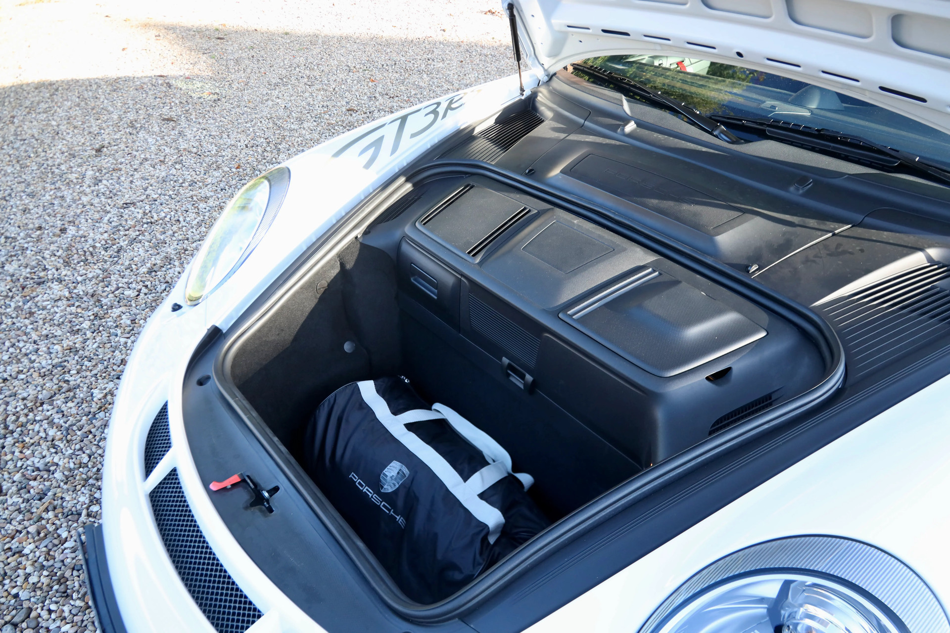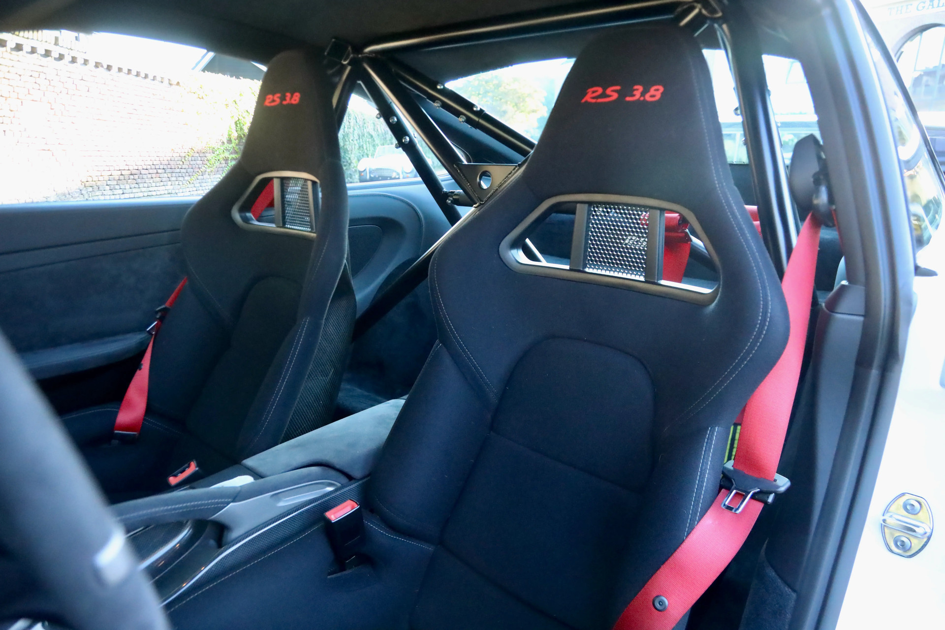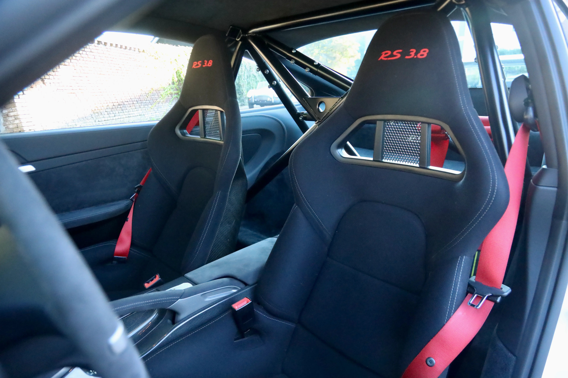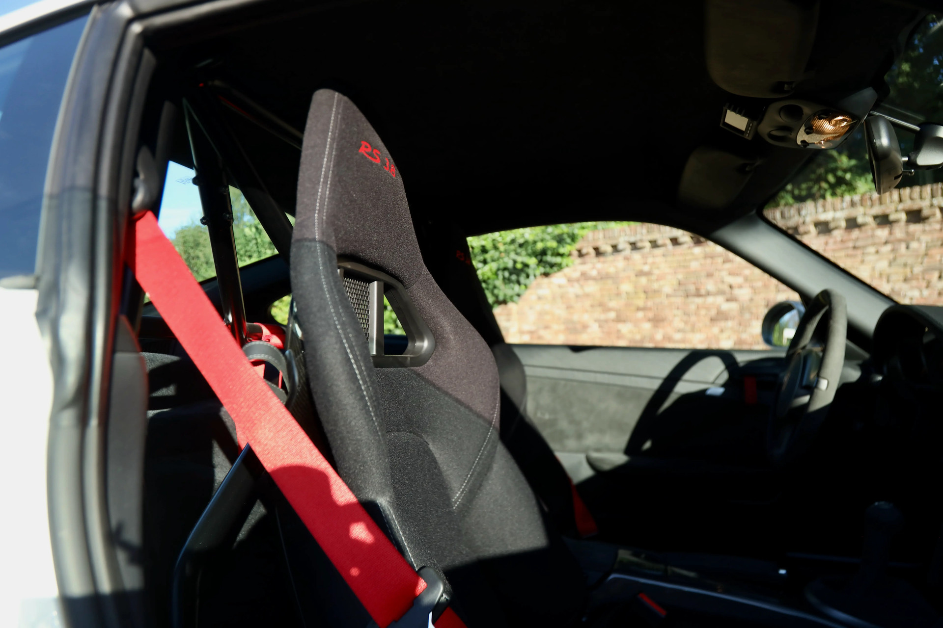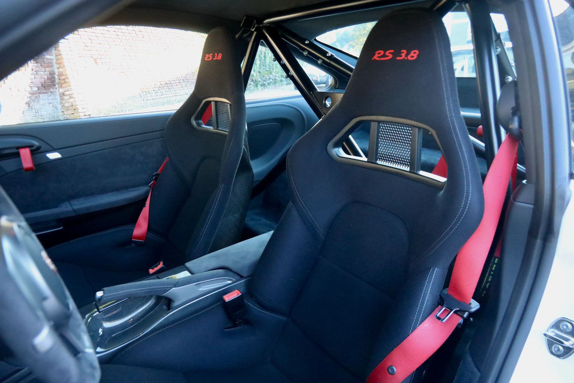 Deze RS is met zorg samengesteld en voorzien van een reeks opties die niet alleen praktisch, maar ook gericht zijn op pure performance. Zo beschikt het exemplaar over Porsche Ceramic Composite Brakes (PCCB), een 90-liter brandstoftank voor lange afstanden, een front lift-functie waarmee de neus circa 30 millimeter kan worden opgetild en een zwarte rolkooi. Het interieur is puristisch en doelgericht: uitgevoerd met carbon racestoelen, alcantara-accenten en lichte deurpanelen met treklussen in plaats van conventionele handgrepen. Luxe details zoals bekerhouders of uitgebreide infotainment zijn bewust achterwege gelaten, want iedere gram telt in de jacht op prestaties.