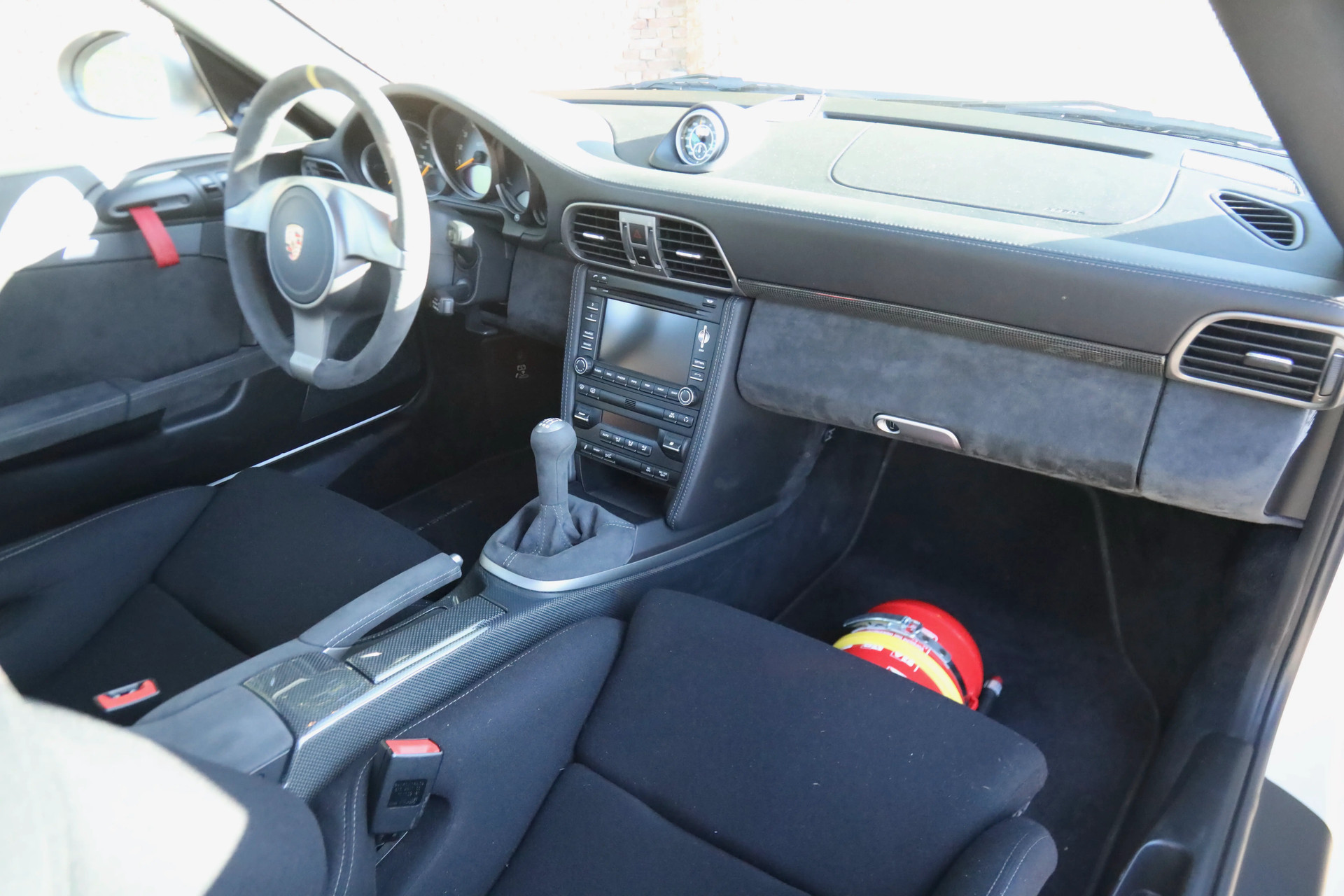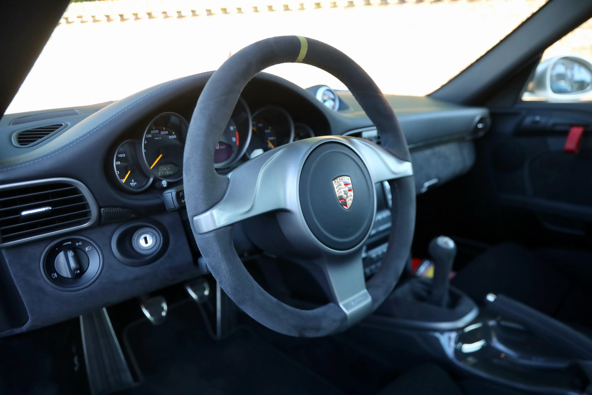 Dieses Exemplar wurde mit besonderer Sorgfalt konfiguriert und verfügt über Optionen, die sowohl praktisch als auch leistungsorientiert sind. Dazu gehören Porsche Ceramic Composite Brakes (PCCB), ein 90-Liter-Tank für Langstreckeneinsätze, ein Front-Lift-System zur Anhebung der Fahrzeugfront um ca. 30 Millimeter sowie ein schwarzer Überrollkäfig. Der Innenraum ist puristisch und zweckorientiert: Carbon-Rennsitze, Alcantara-Akzente und leichte Türverkleidungen mit Zugschlaufen anstelle herkömmlicher Griffe. Komfortelemente wie Becherhalter oder umfangreiche Infotainmentsysteme wurden bewusst weggelassen, denn im Streben nach Performance zählt jedes Gramm.