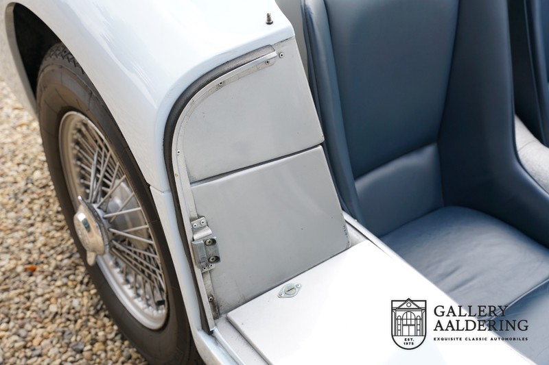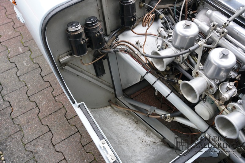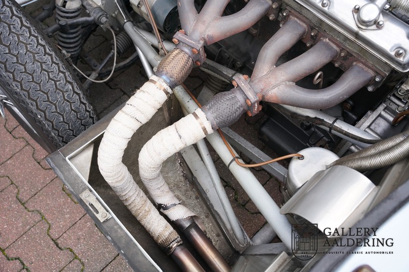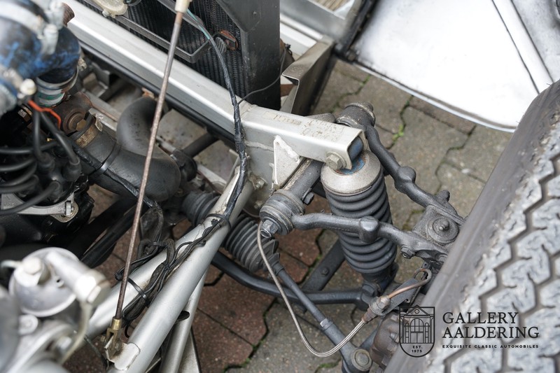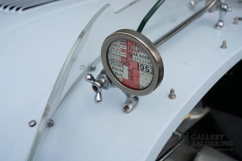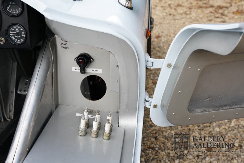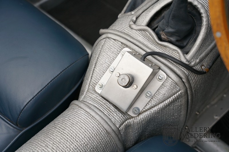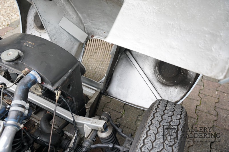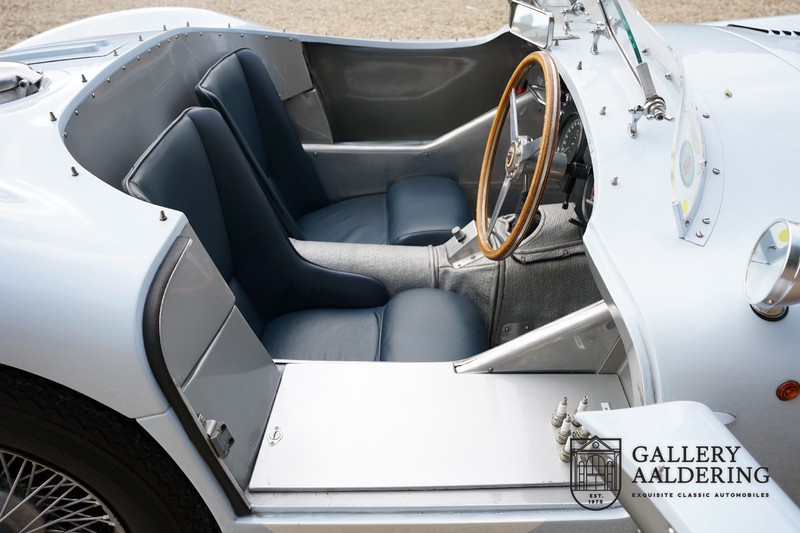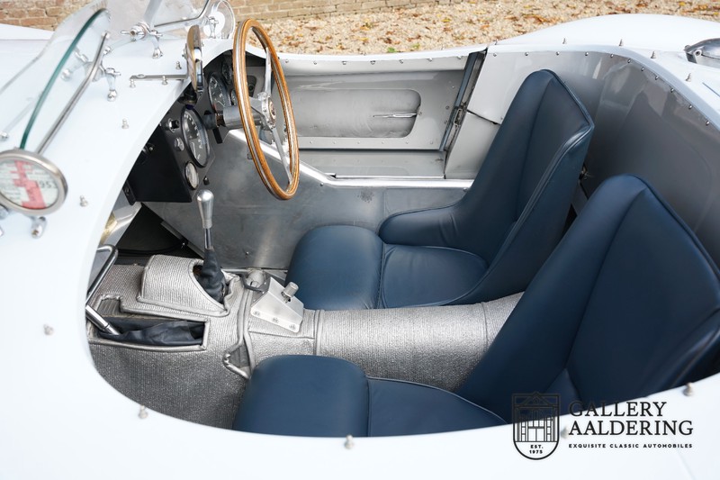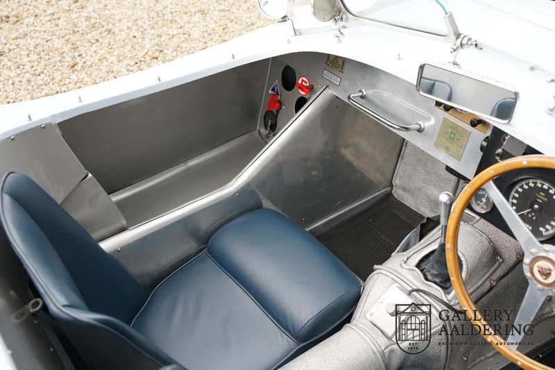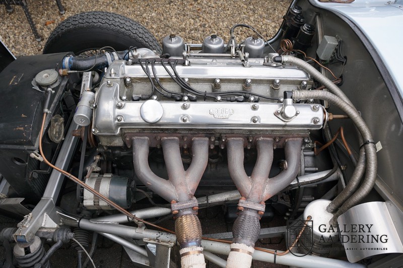 This is a beautifully built Jaguar C-type replica. The car is equipped with many common Jaguar E-type technology and has a plastic body. The car is very light and very fast. It is not only a feast for the eyes but also certainly for the ear. The inline six engine inhales through open chalices on the three carburettors and exhales through the signature exhaust on the left side of the car. The engine is of course coupled to a manual transmission that shifts perfectly and matches the character of the engine sublimely. The Jaguar C-Type is an icon of design and everything is focused on performance. The car is painted in the beautiful light blue color with a beautiful dark blue leather-covered interior. Where the E-type mainly breathes the atmosphere of a library where gentlemen smoke cigars and drink cognac, the C-type is a lot more spartan, here no deep-pile carpet or insulation material, but only things on board that make the driver drive faster.