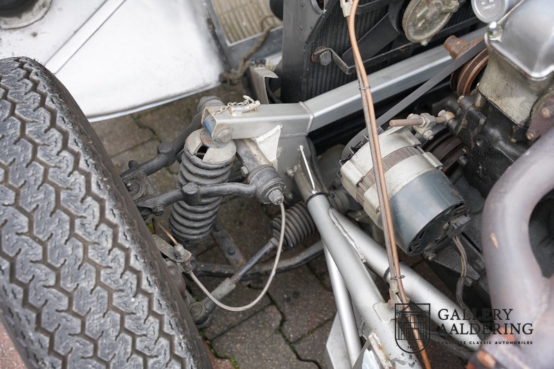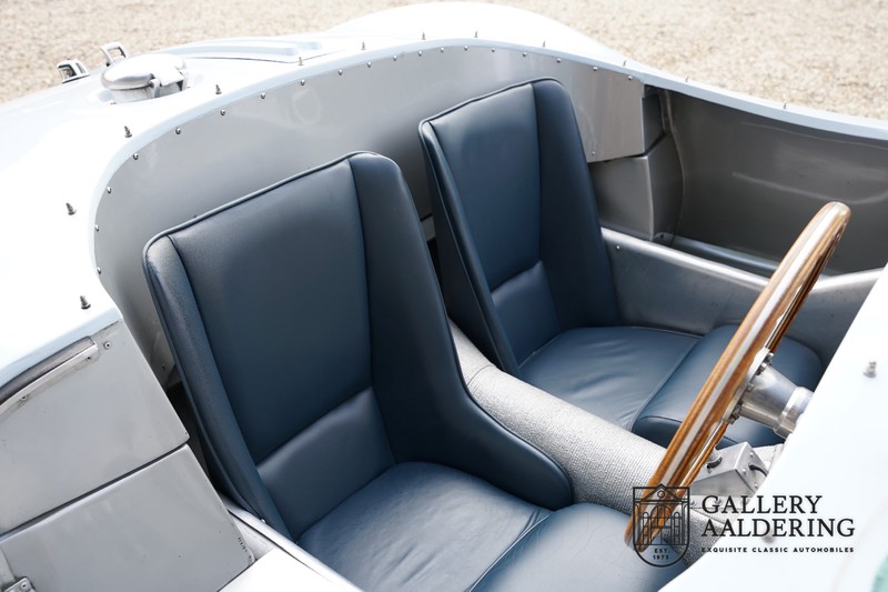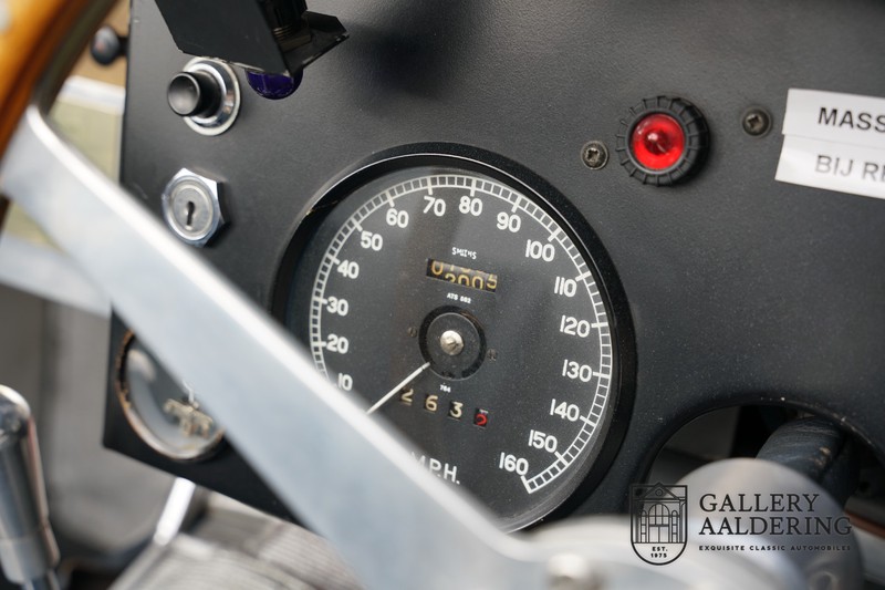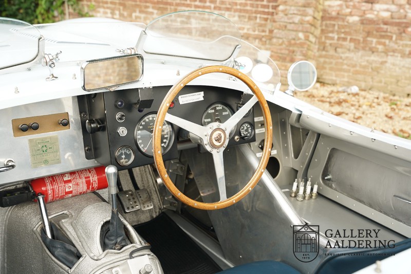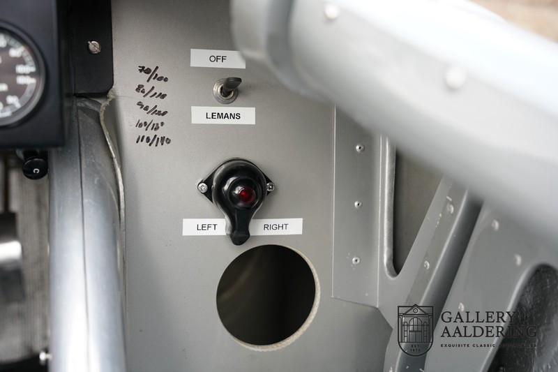 Dies ist eine wunderschön gebaute Jaguar C-Type-Replik. Das Auto ist mit vielen gängigen Jaguar E-Type-Technologien ausgestattet und hat eine Kunststoffkarosserie. Das Auto ist sehr leicht und sehr schnell. Es ist nicht nur ein Fest für die Augen, sondern auch für das Ohr. Der Reihensechszylinder-Motor atmet durch offene Kelche an den drei Vergasern und atmet durch den charakteristischen Auspuff auf der linken Seite des Autos aus. Der Motor ist natürlich mit einem Schaltgetriebe verbunden, das perfekt schaltet und dem Charakter des Motors hervorragend entspricht. Der Jaguar C-Type ist eine Designikone und alles ist auf Leistung ausgerichtet. Das Auto ist in der schönen hellblauen Farbe lackiert mit einem schönen dunkelblauen Lederinterieur. Wo der E-Type vor allem die Atmosphäre einer Bibliothek verströmt, in der Herren Zigarren rauchen und Cognac trinken, ist der C-Type viel spartanischer, hier kein Hochflorteppich oder Dämmmaterial, sondern nur Dinge an Bord, die den Fahrer zum Fahren bringen Schneller.