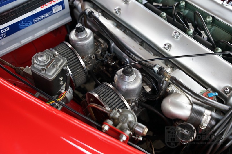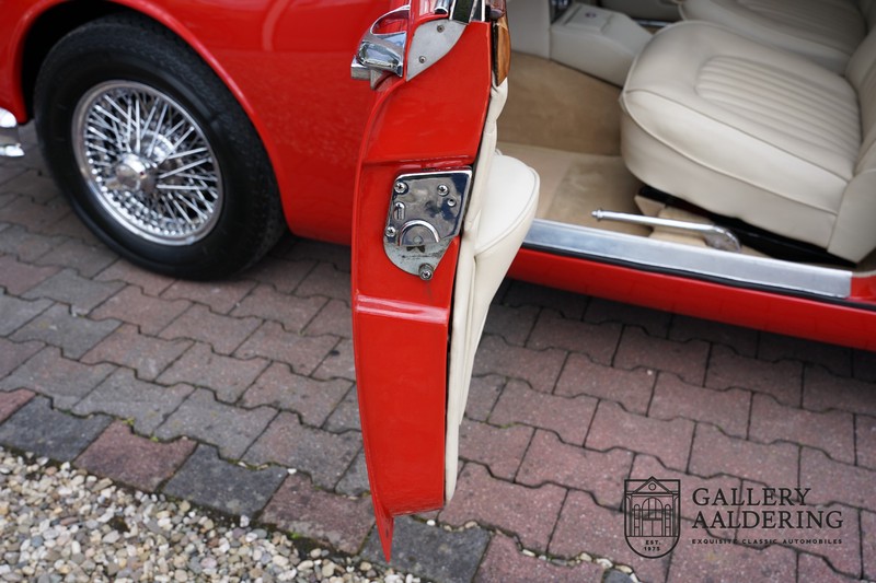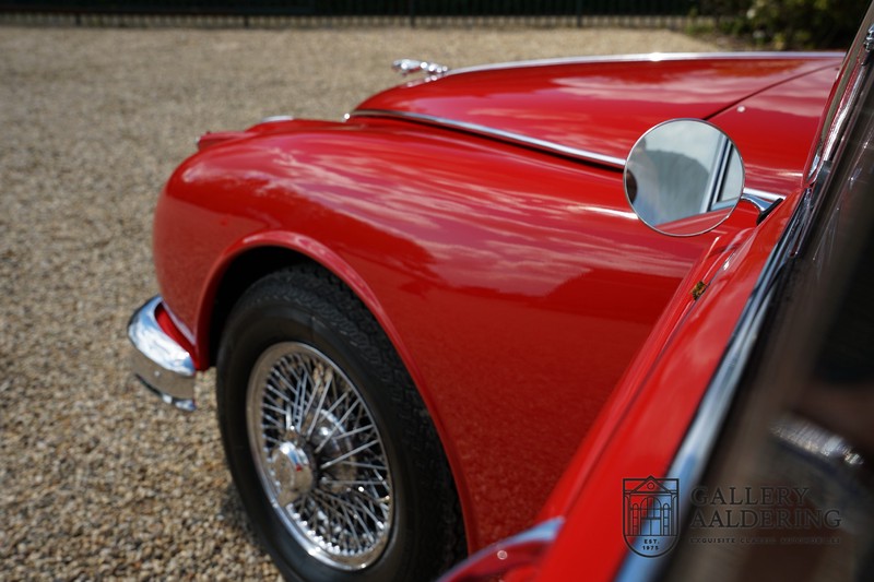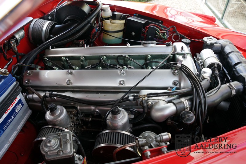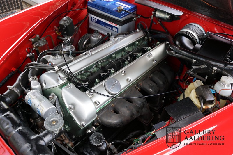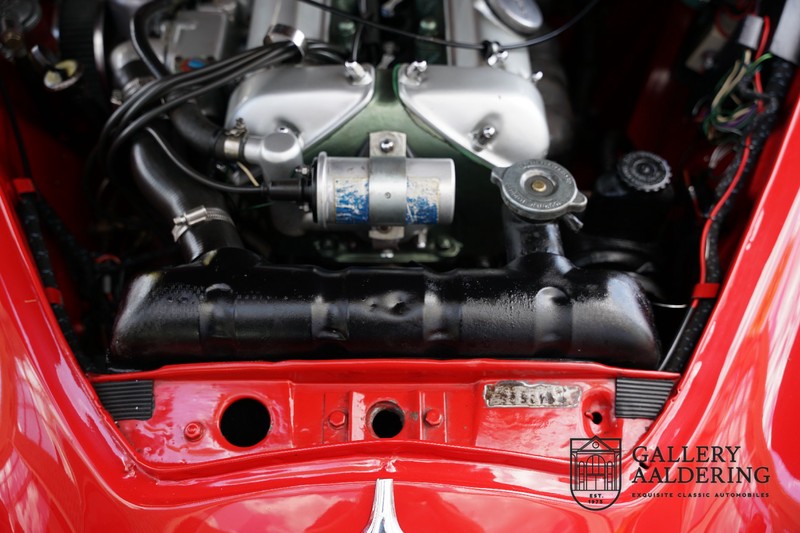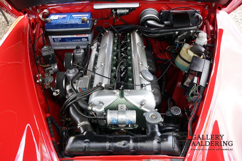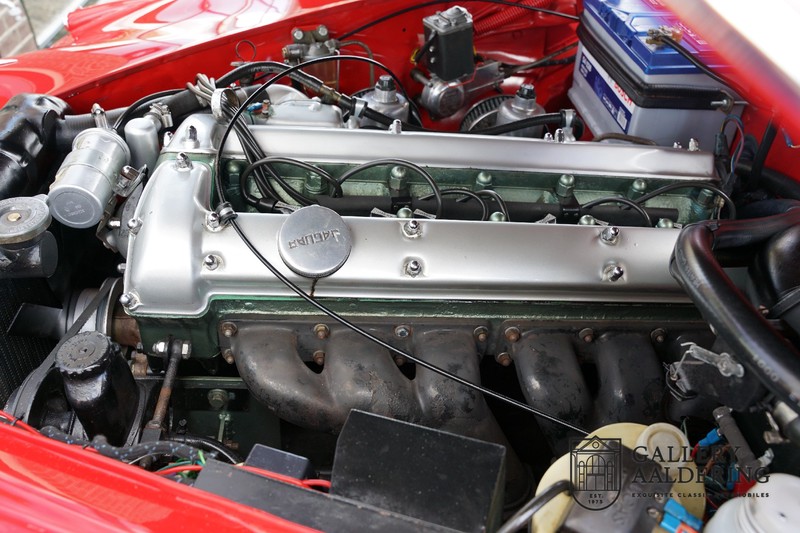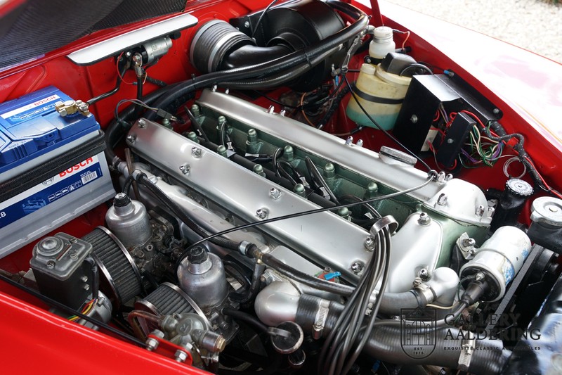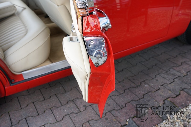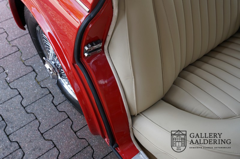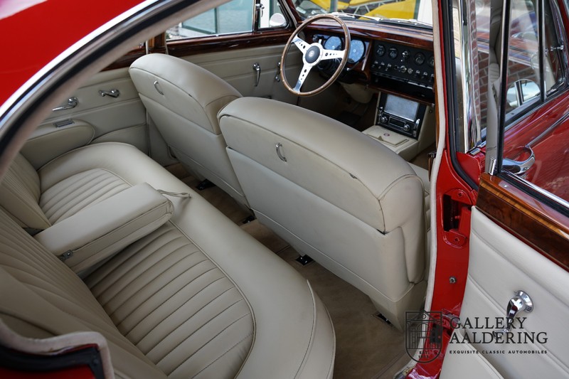 Das Auto ist so schnell, dass in den 60er Jahren die Bankräuber sich meistens einen Jaguar Mk2 liehen um den Fluchtweg abzusichern. Dieses Exemplar hatte seine Erstzulassung in dem Jahr 1966 und wurde in 2002 nach Holland exportiert. Der Letztbesitzer hatte das Auto seit 2012 in seinem Besitz, er hat das Auto komplett restauriert und das Endergebnis ist wunderschön. Die schöne Karosserie hat dünnes Blech und korrekte Passungen. Das Fahrzeug wurde neu lackiert in der wunderschönen Farbe “Carmine Red“, die Arbeiten