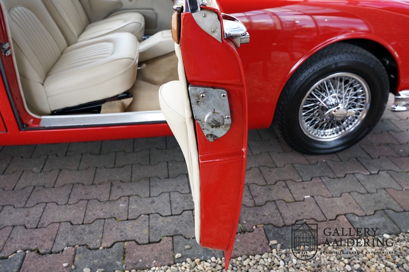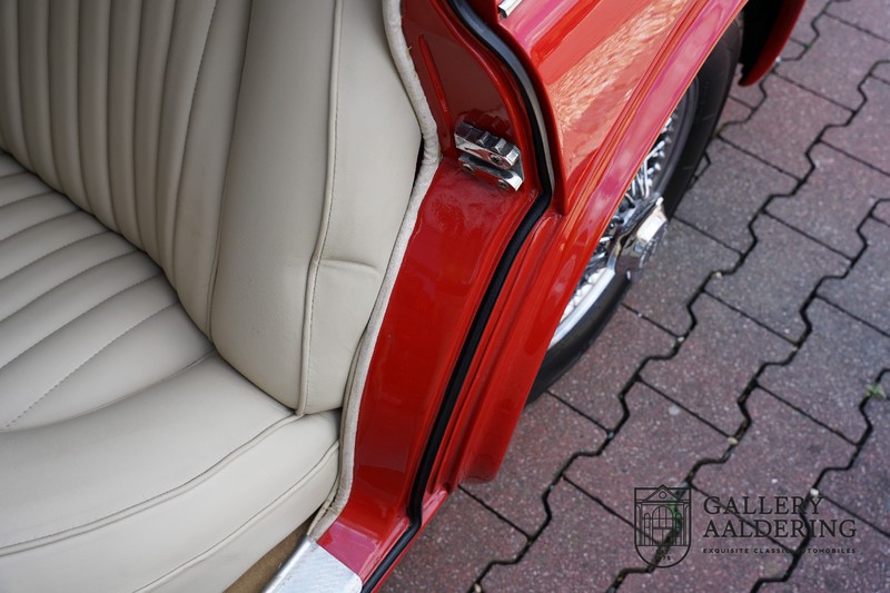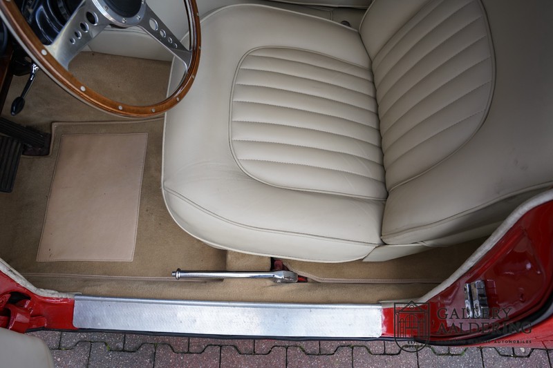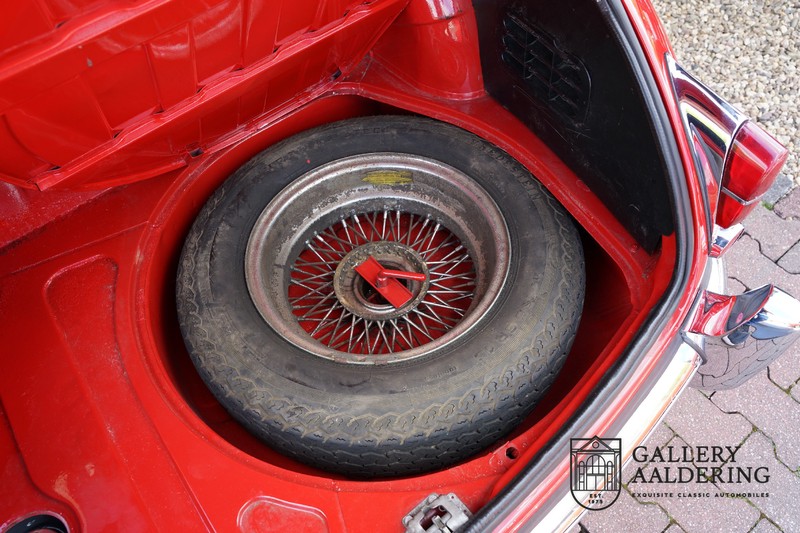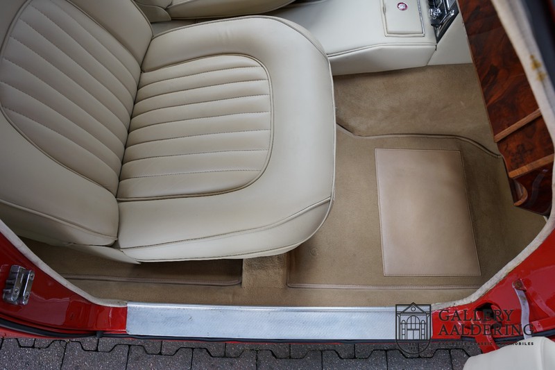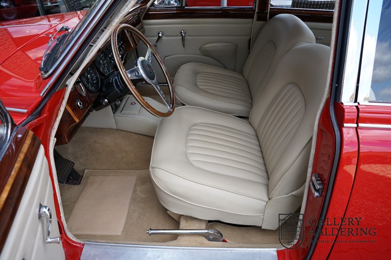 The Mk2 3.8 was so powerful that bank robbers in the 60s are always “borrowed” one when on the job. This 1966 example arrived in the Netherlands in 2002. The last Dutch owner took possession in 2012 and has fully restored the car. This Jag is in therefore in prime shape. The bodywork looks great with the nice and thin panelwork which is correctly aligned. The newly applied Carmine Red paintwork looks fantastic. The job clearly has been carried out with a high degree of professionalism. Underneath the car is also a lust to behold, illustrating furthermore the thorough approach taken during the restoration. The brightwork, the front bumper mounted spotlights and the chrome wire wheels are all in very good condition.