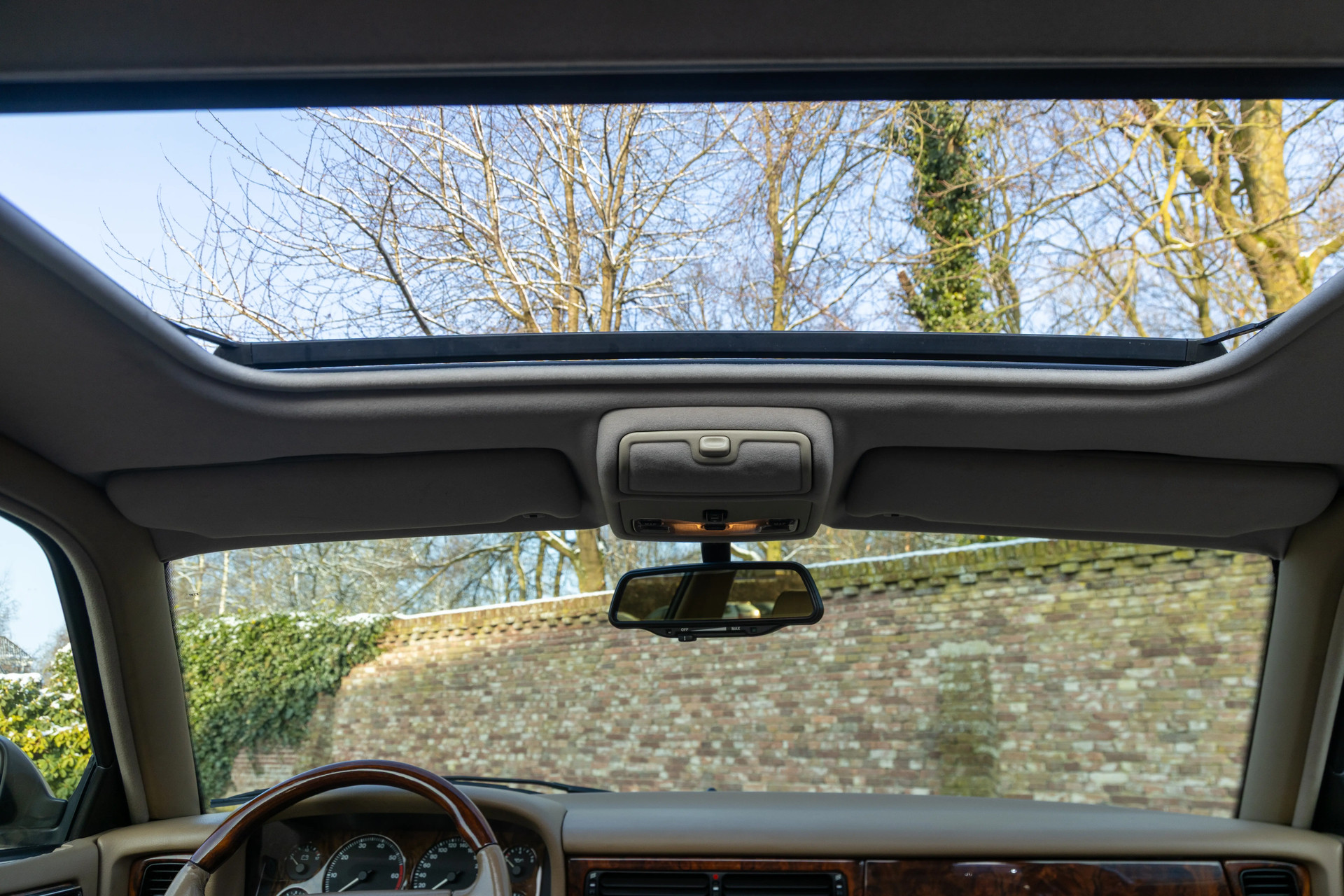 - Extras include a sliding roof - a wood/leather steering wheel and the "Crown" wheels