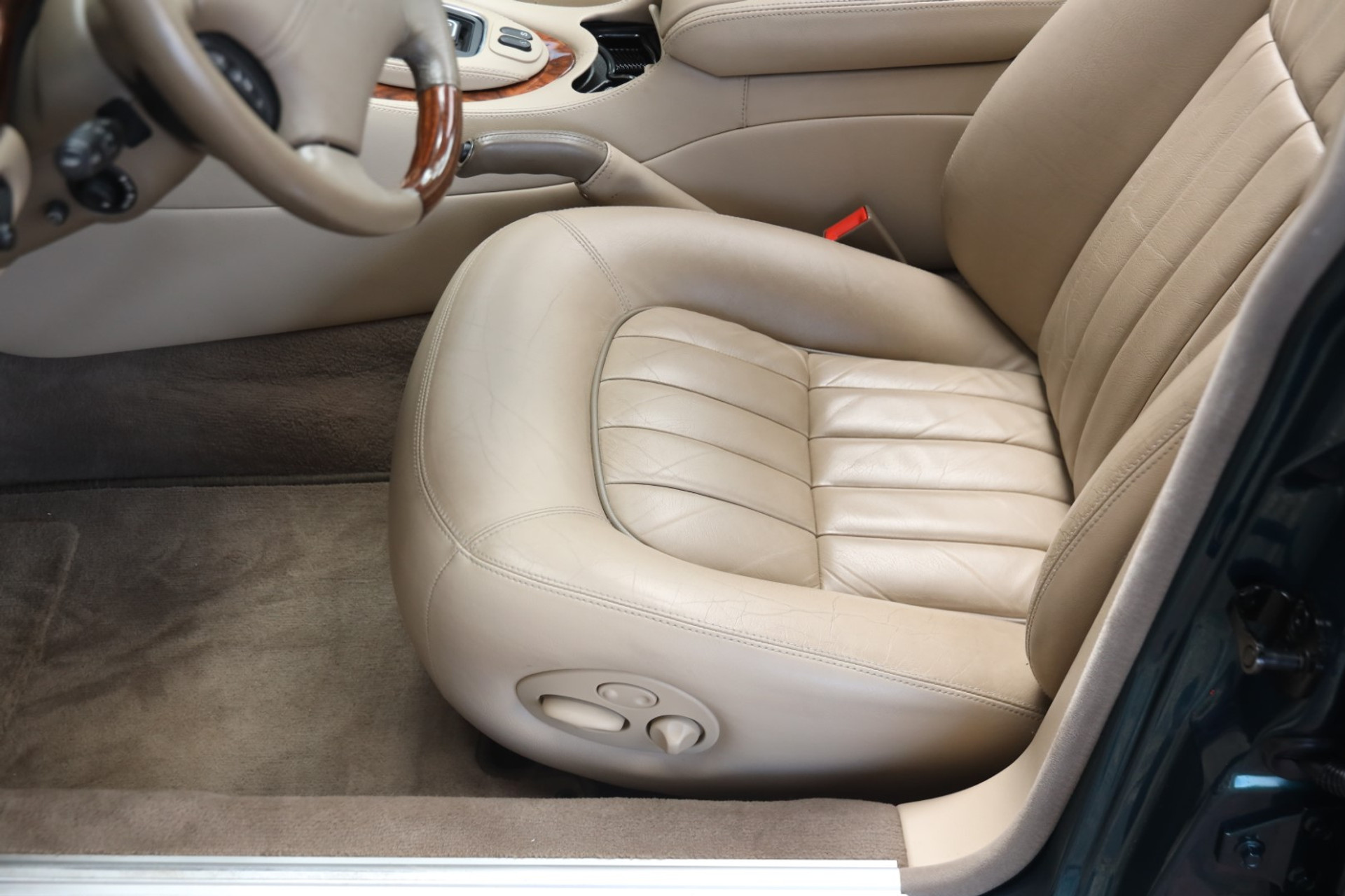With less than 87,100 km on the odometer, this Sovereign is in fully original condition and excellently maintained, preserving its refined driving experience and luxurious appeal. The interior is finished in Cashmere, complemented by a classic Aspen Green exterior – an elegant and timeless combination that perfectly underscores the stately presence of this XJ8.