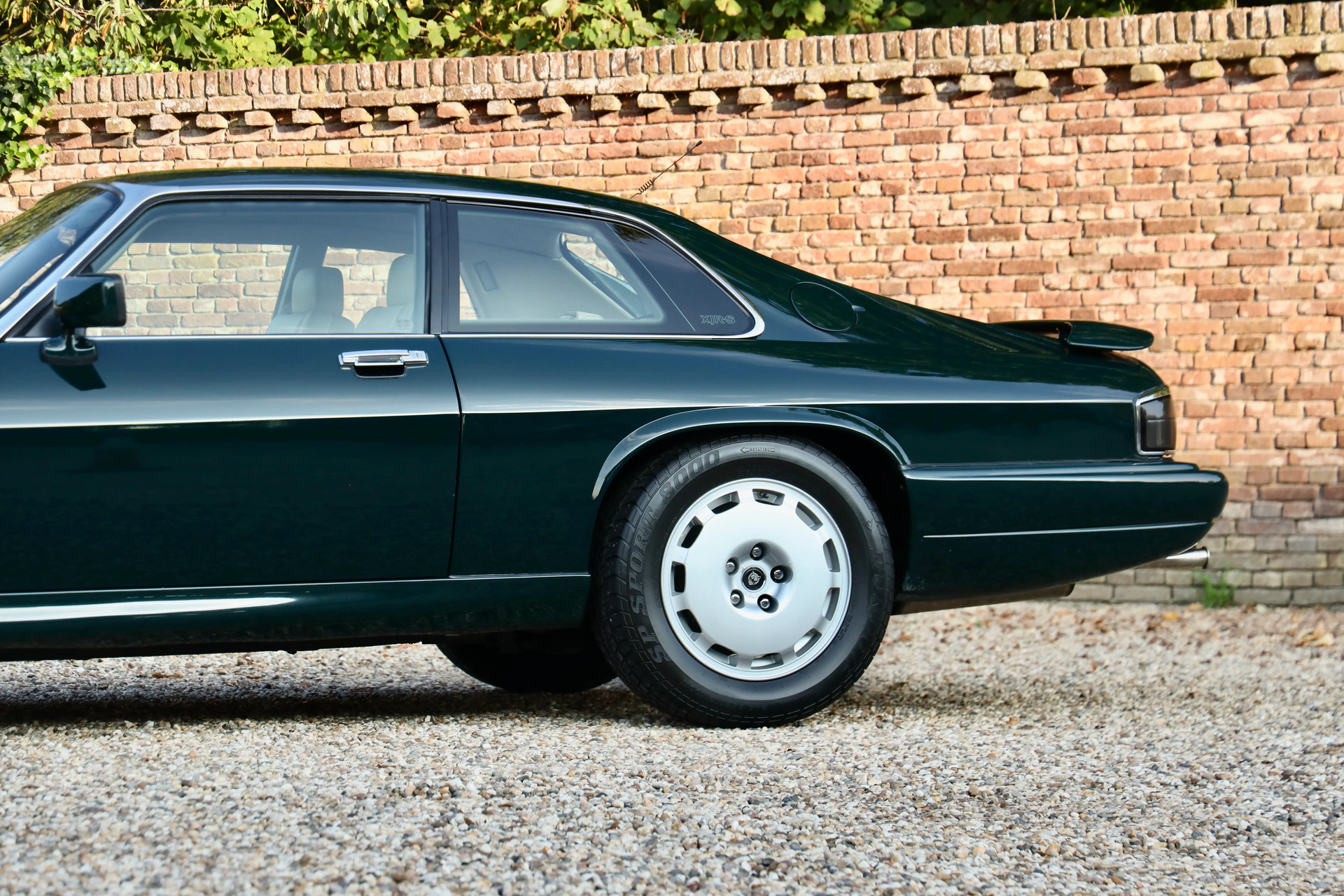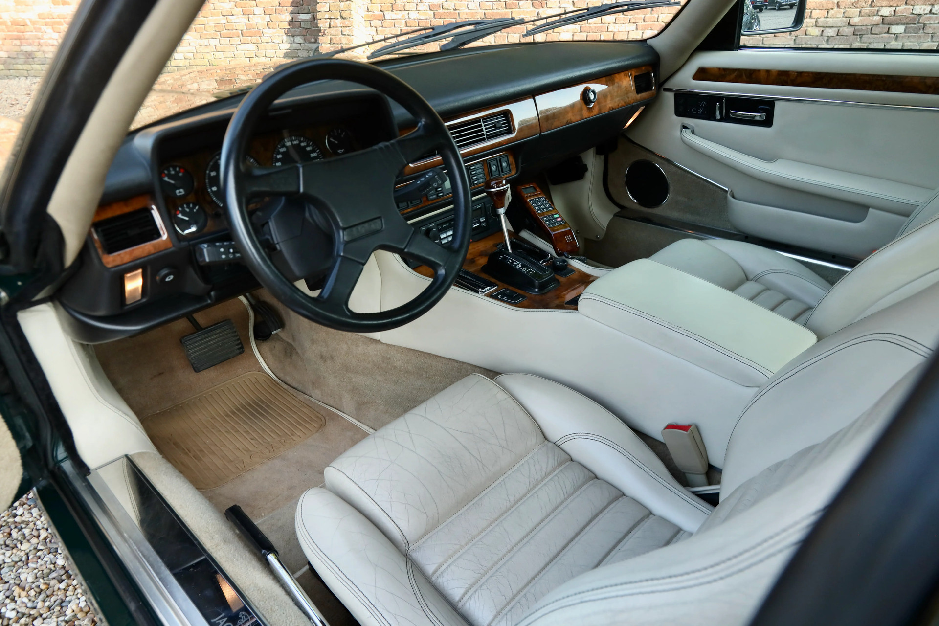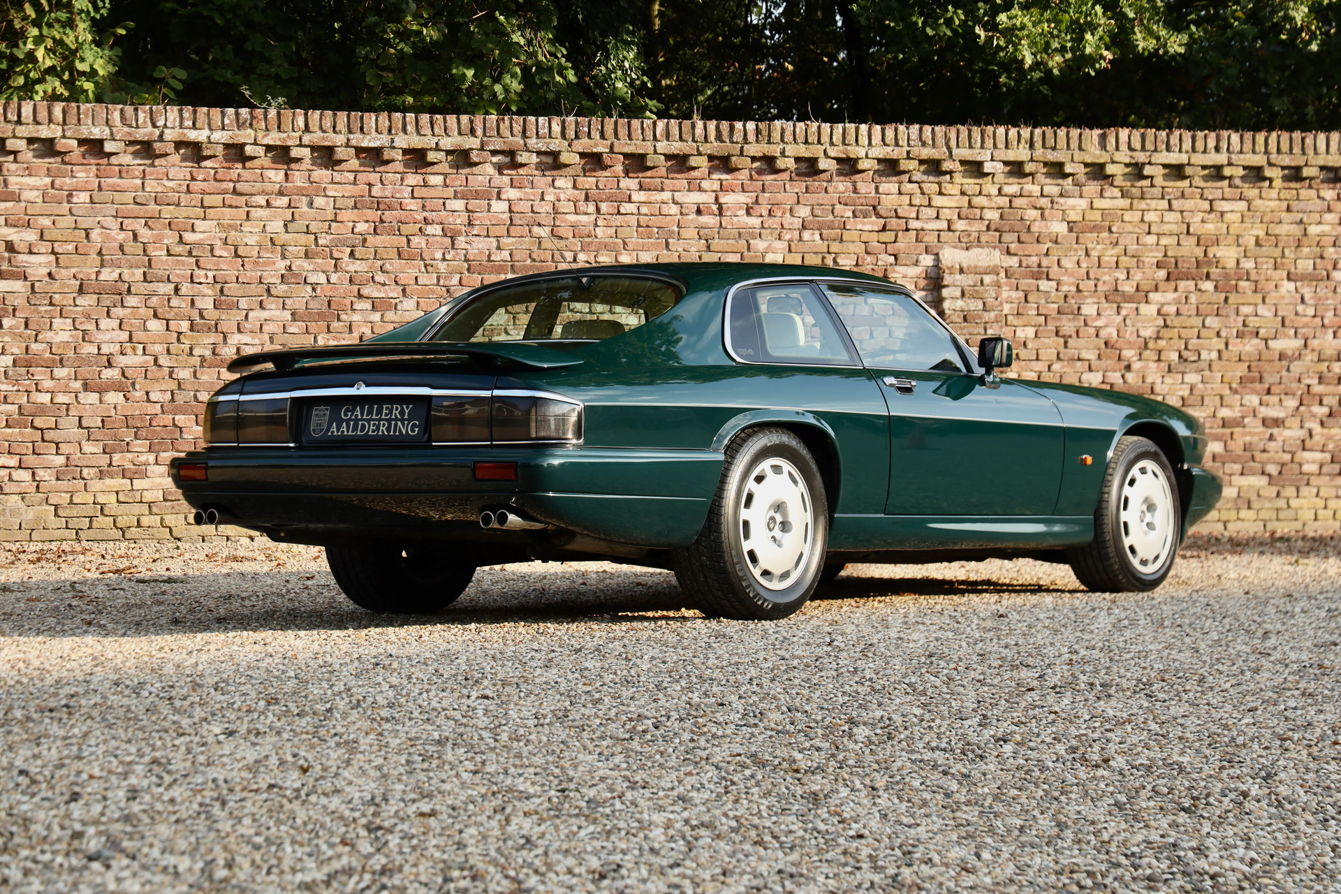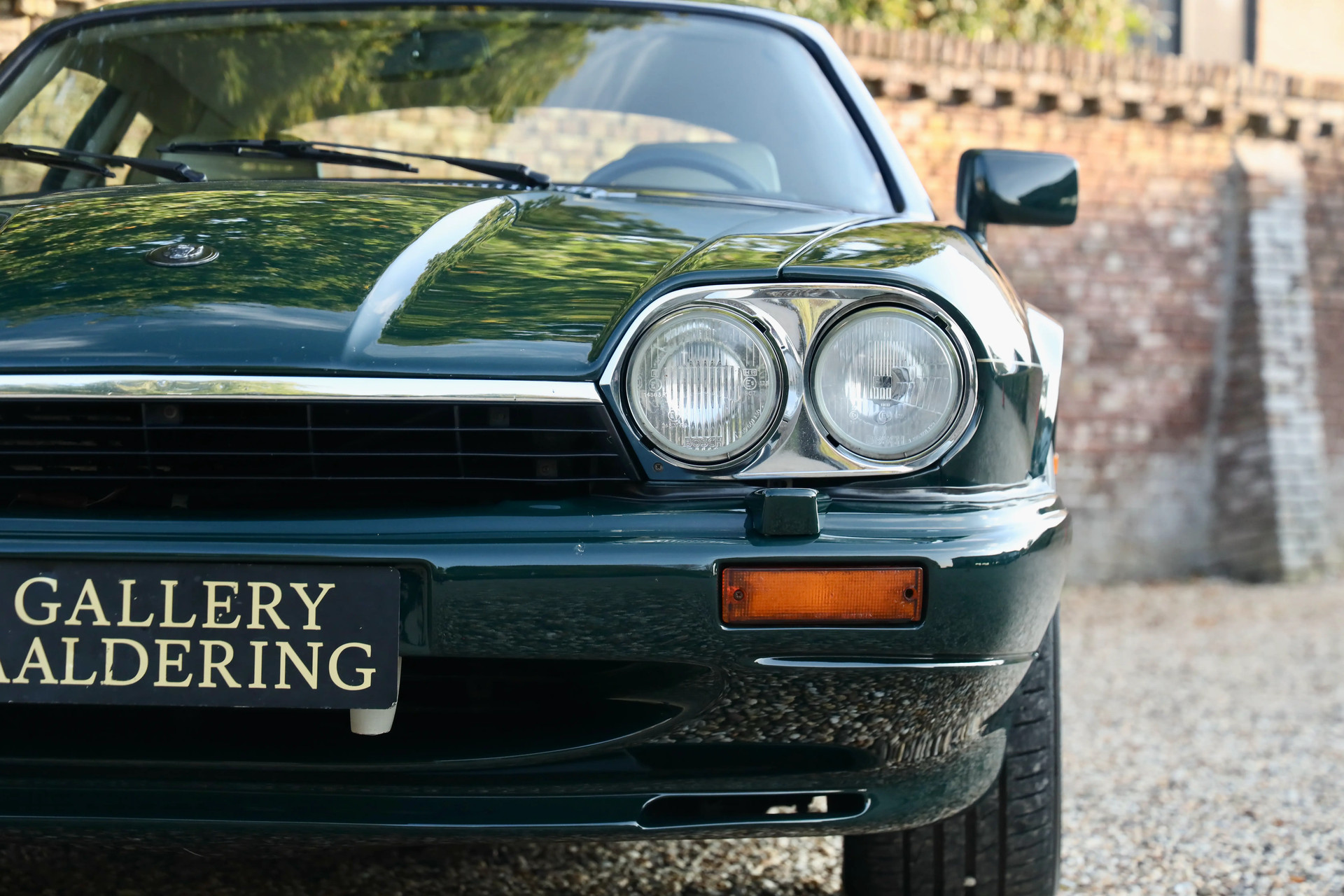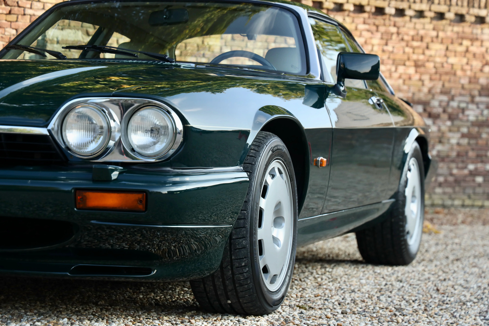 Het hier aangeboden exemplaar is een van de slechts 787 geproduceerde XJR-S Coupés, uitgevoerd in de klassieke en stijlvolle kleur Brooklands Green, gecombineerd met een crèmekleurig lederen interieur dat de luxe en elegantie van het model prachtig benadrukt. De auto werd nieuw geleverd door Jaguar Münster “Brandes & Dschüdow” in Duitsland en heeft sindsdien slechts 90.000 kilometer gereden. Dankzij de zorgvuldige omgang en onderhoud verkeert het voertuig in uitstekende originele staat, wat het tot een topvoorbeeld van dit zeldzame model maakt.