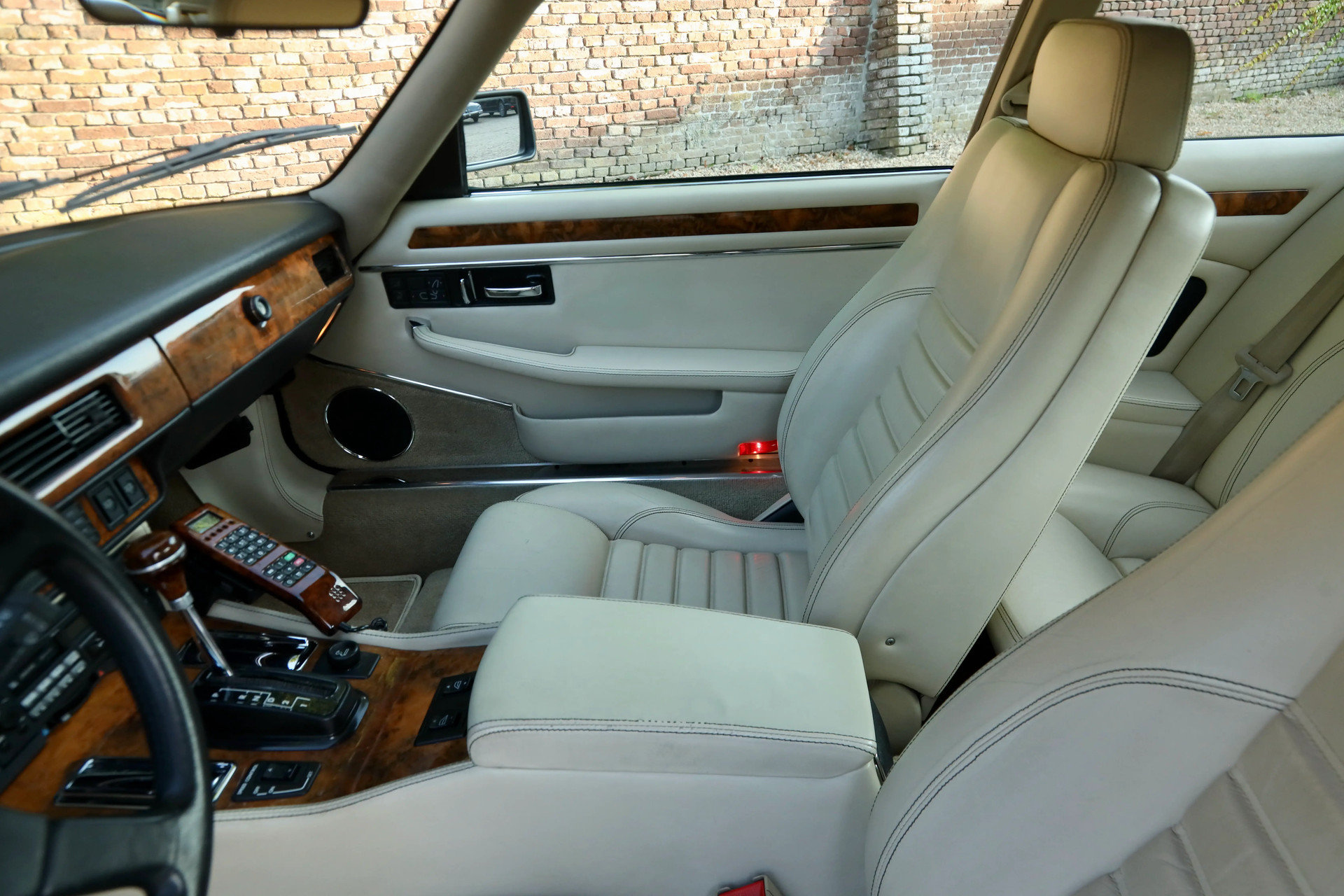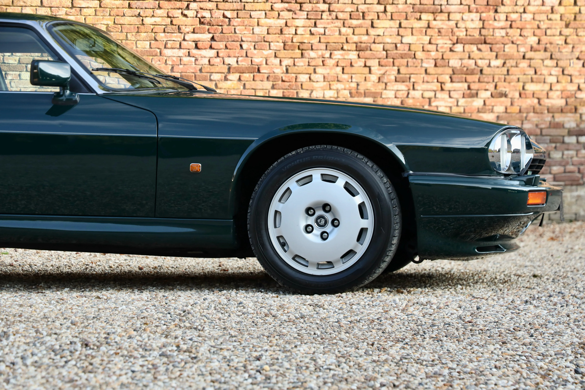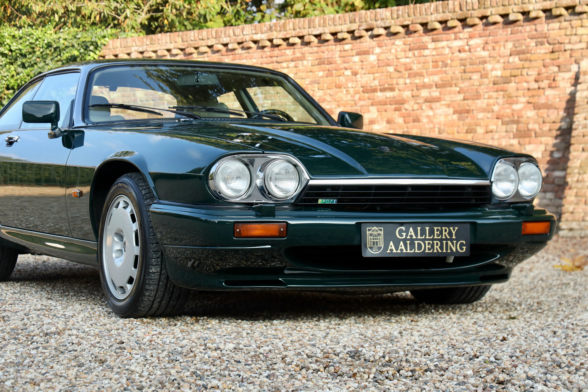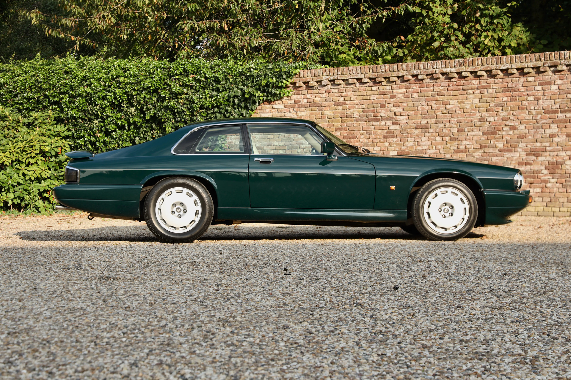 Het hier aangeboden exemplaar is een van de slechts 787 geproduceerde XJR-S Coupés, uitgevoerd in de klassieke en stijlvolle kleur Brooklands Green, gecombineerd met een crèmekleurig lederen interieur dat de luxe en elegantie van het model prachtig benadrukt. De auto werd nieuw geleverd door Jaguar Münster “Brandes & Dschüdow” in Duitsland en heeft sindsdien slechts 90.000 kilometer gereden. Dankzij de zorgvuldige omgang en onderhoud verkeert het voertuig in uitstekende originele staat, wat het tot een topvoorbeeld van dit zeldzame model maakt.
