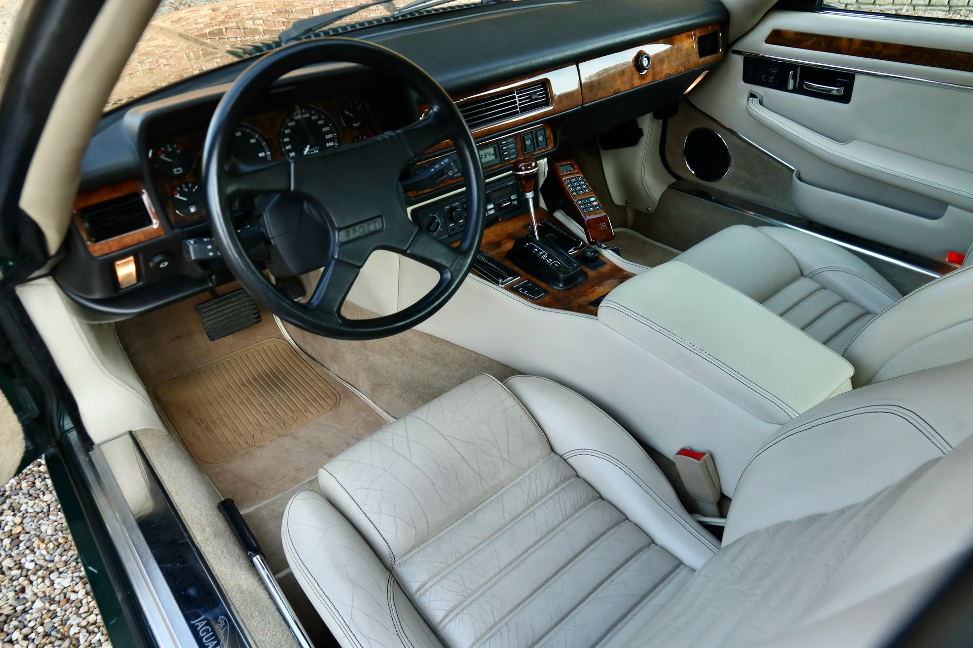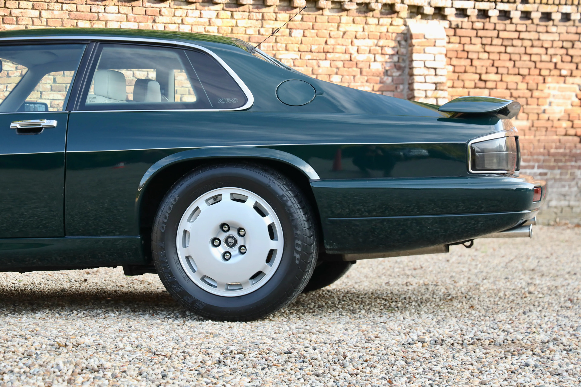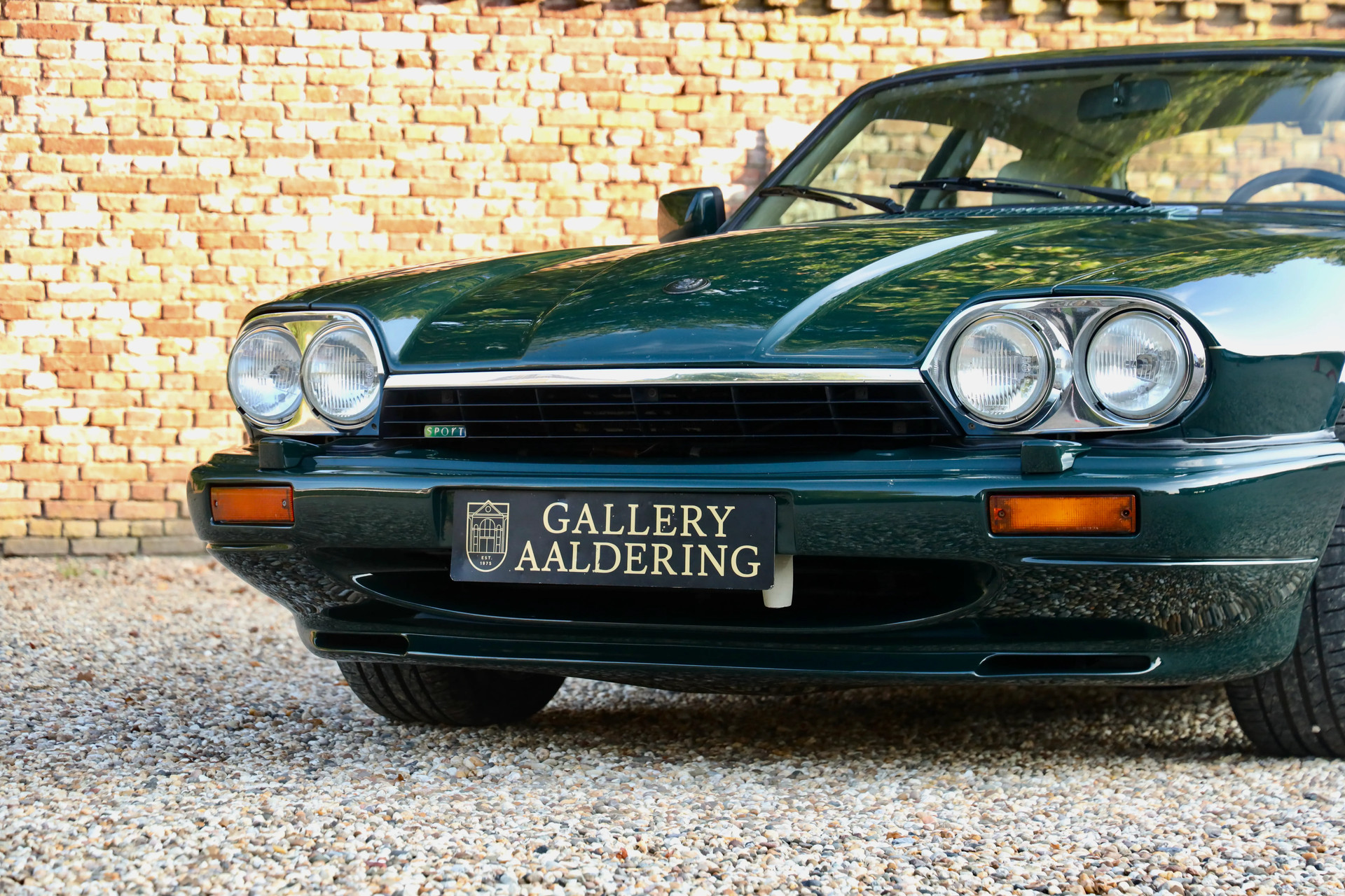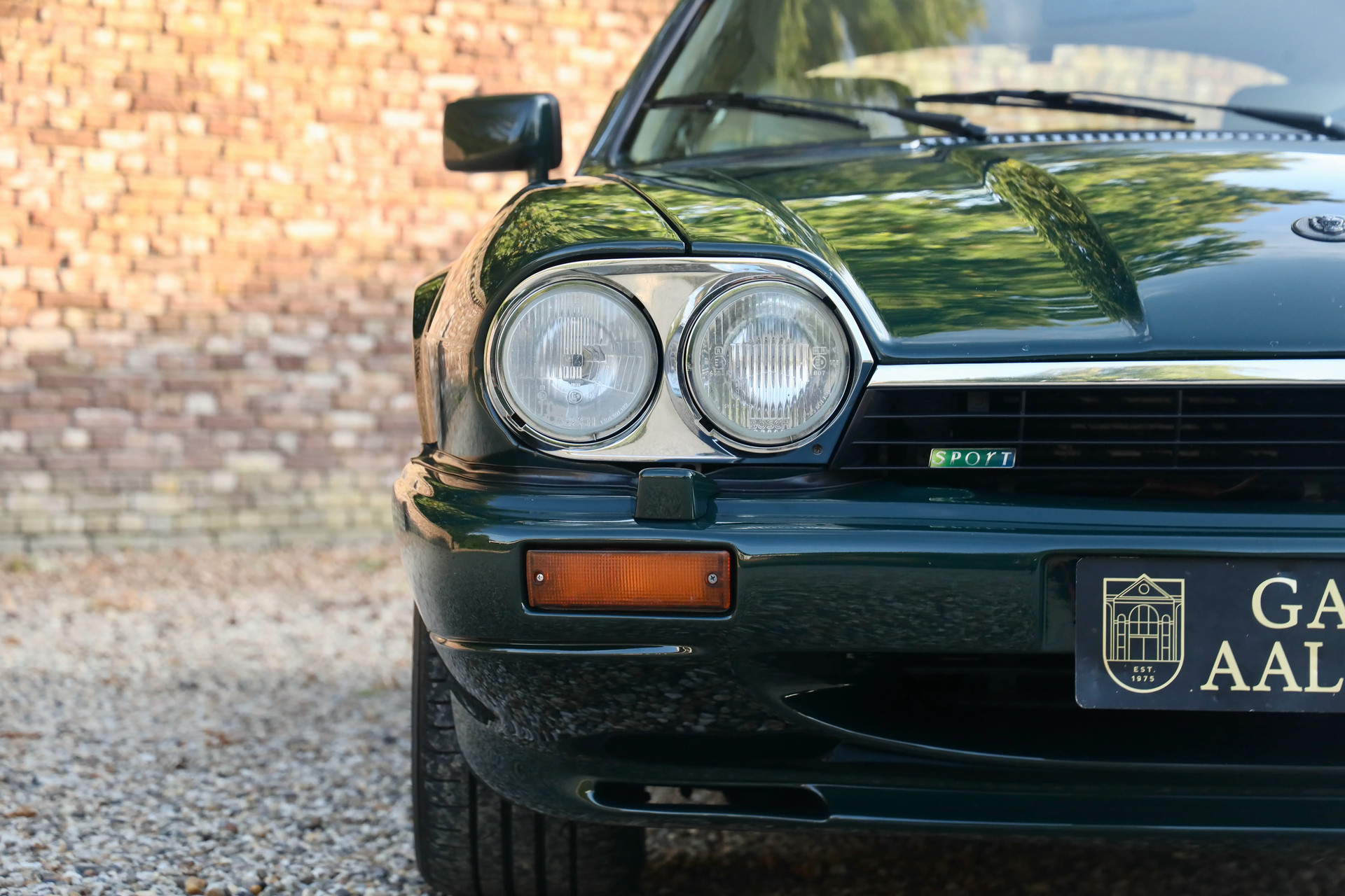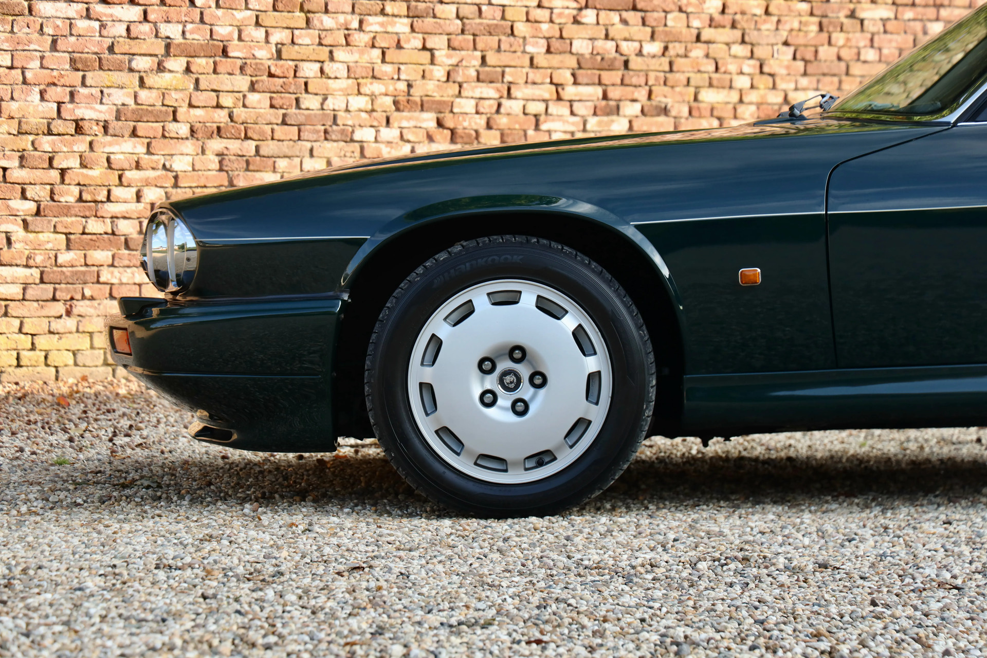 Het hier aangeboden exemplaar is een van de slechts 787 geproduceerde XJR-S Coupés, uitgevoerd in de klassieke en stijlvolle kleur Brooklands Green, gecombineerd met een crèmekleurig lederen interieur dat de luxe en elegantie van het model prachtig benadrukt. De auto werd nieuw geleverd door Jaguar Münster “Brandes & Dschüdow” in Duitsland en heeft sindsdien slechts 90.000 kilometer gereden. Dankzij de zorgvuldige omgang en onderhoud verkeert het voertuig in uitstekende originele staat, wat het tot een topvoorbeeld van dit zeldzame model maakt.
