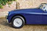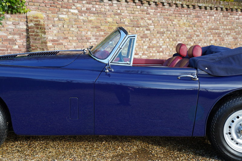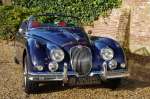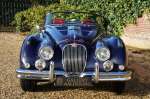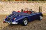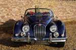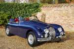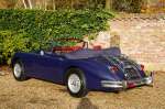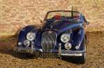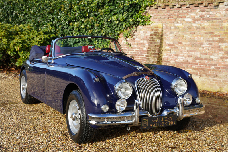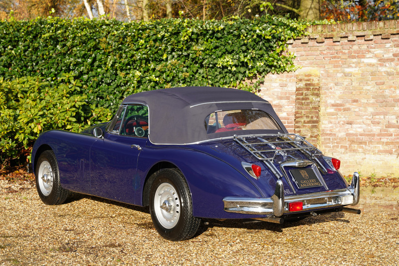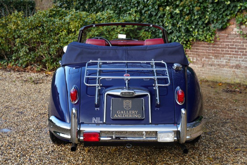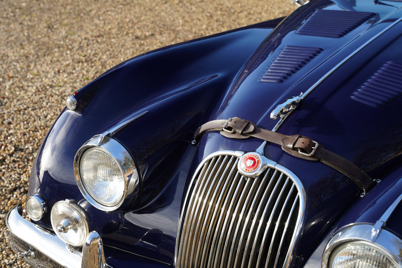 The XK150 you see here ‘ticks all the boxes,’ in other words: this Jaguar is fantastic from A to Z. It starts with the outward appearance of this Drop Head Coupé. While XK150s are almost always equipped with elegant wire wheels, this XK150 stands on distinctive D-type wheels. The louvres on the hood are also a striking detail. The XK150 is also equipped with a Getrag five-speed gearbox, making long-distance driving much more relaxed. Speaking of long distances: the XK150 has slightly more modern seats, which are not only very comfortable but also provide more lateral support when tearing around bends at speed.