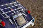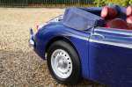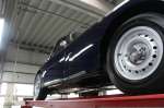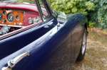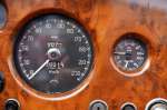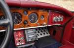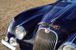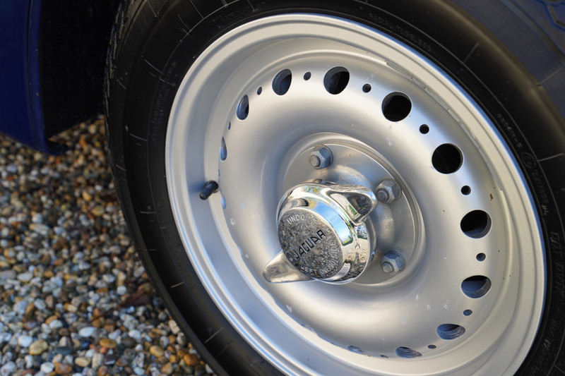 Let’s examine the bodywork: it impresses with very tight sheet metal and very nice paint finish. The very deep navy blue body has tight seams, excellent lines, and doors, as well as the bonnet and boot lids close beautifully. The abundant chrome is just as beautiful and undoubtably rightly deserves the description as being in concours condition. Inside the Jaguar, is a pleasant environment to be in. The seats, covered in high-quality and supple leather, are in excellent condition. The rest of the interior looks practically new, with a dashboard featuring beautiful wooden panels and partly leather upholstery, complemented by stylish Smiths instruments, flanked by the aforementioned rally instruments. The controls are all in very good condition and fully functional.
