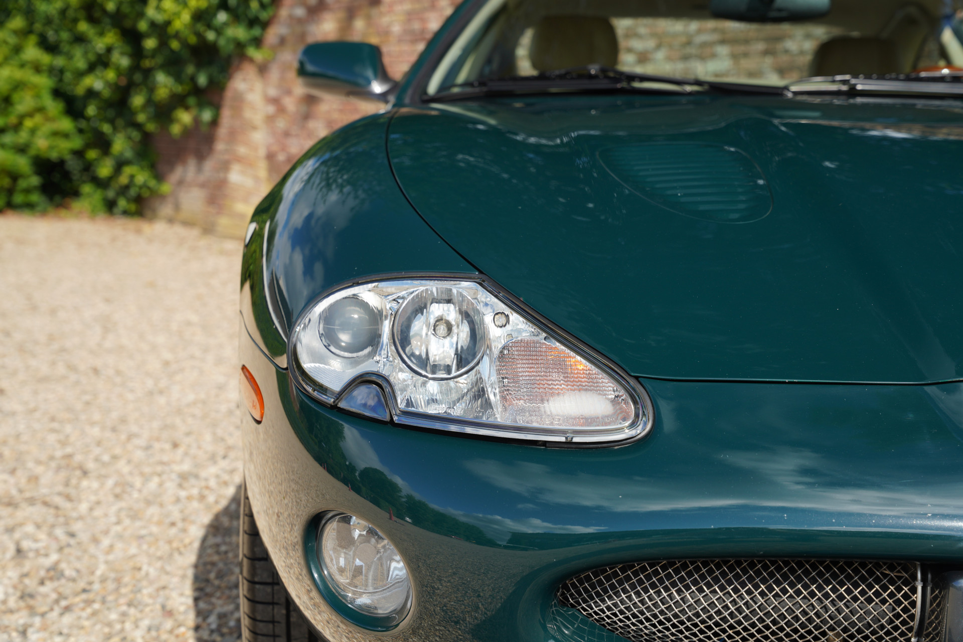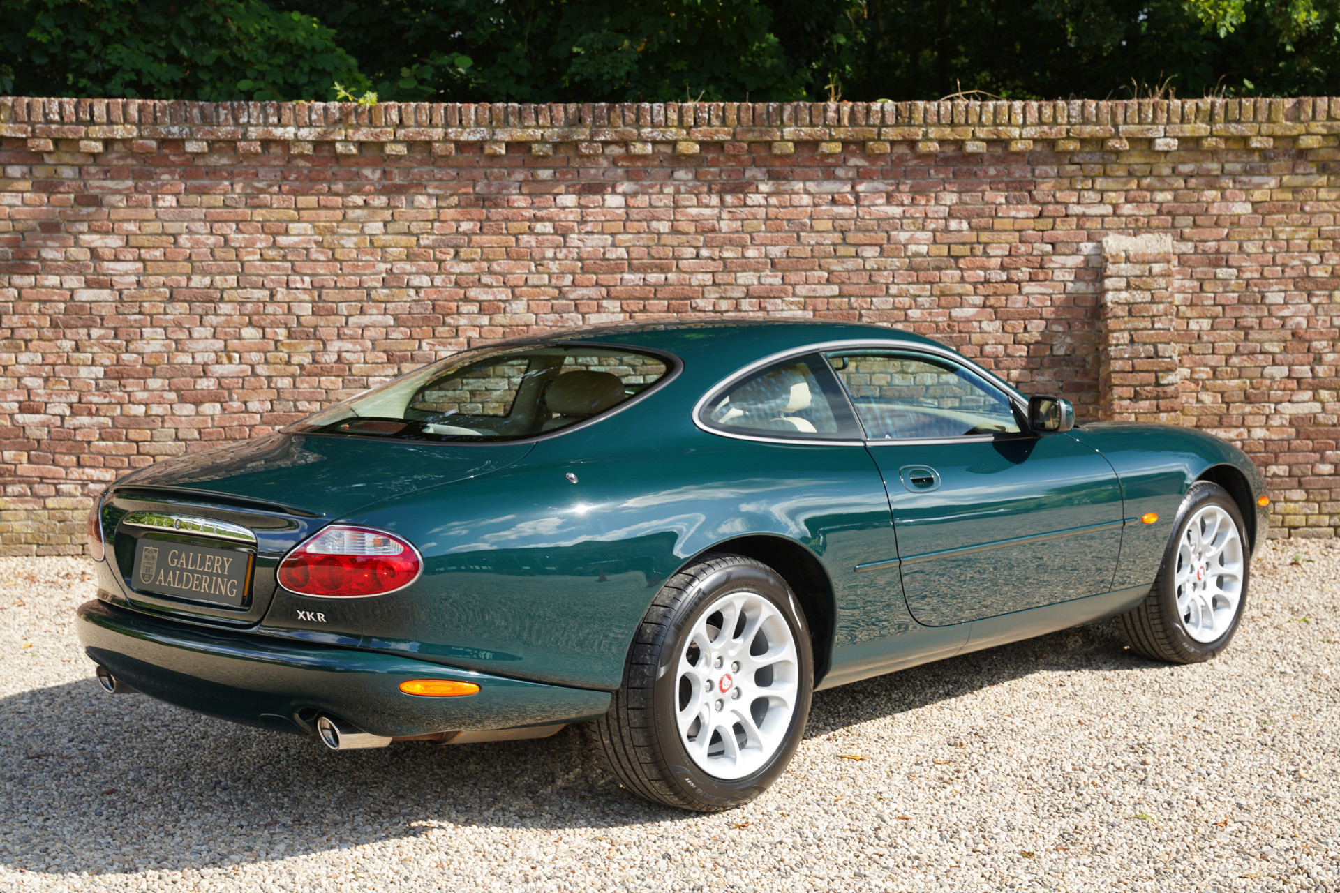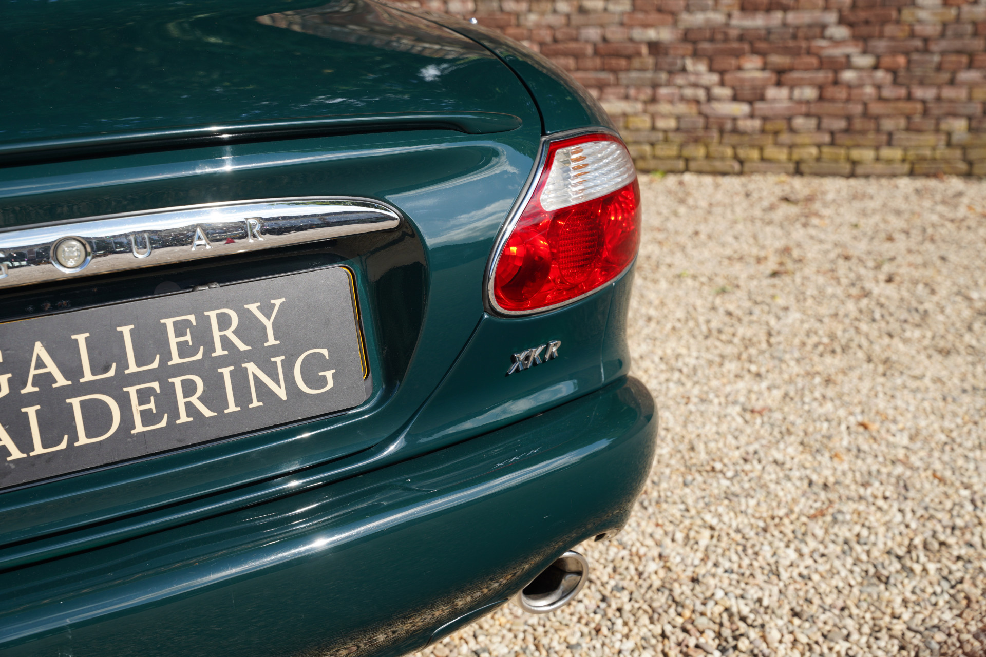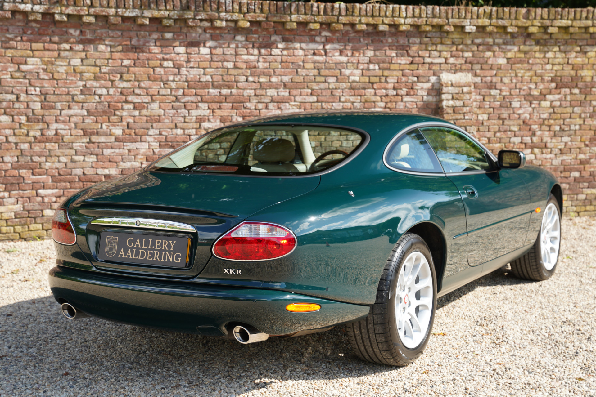 Deze Jaguar XKR uit 2001 is uitgevoerd in dé ultieme kleurstelling: British Racing Green met een Cashmere-lederen interieur. Een klassieke en tegelijkertijd tijdloze combinatie die het sportieve en elegante karakter van de XKR optimaal tot zijn recht laat komen.