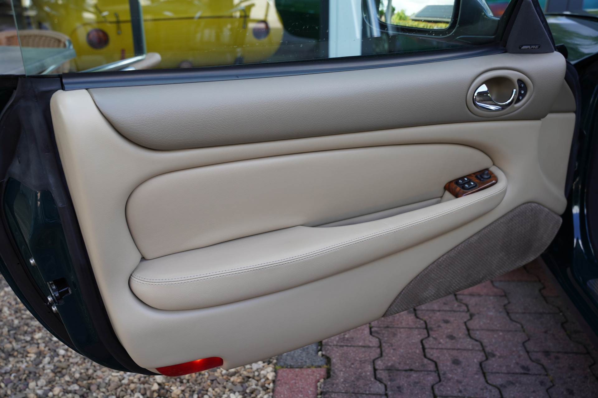 Dieser Jaguar XKR aus dem Jahr 2001 präsentiert sich in der ultimativen Farbkombination: British Racing Green mit einem Interieur in Cashmere-Leder. Eine klassische und zugleich zeitlose Kombination, die den sportlichen und eleganten Charakter des XKR perfekt unterstreicht.