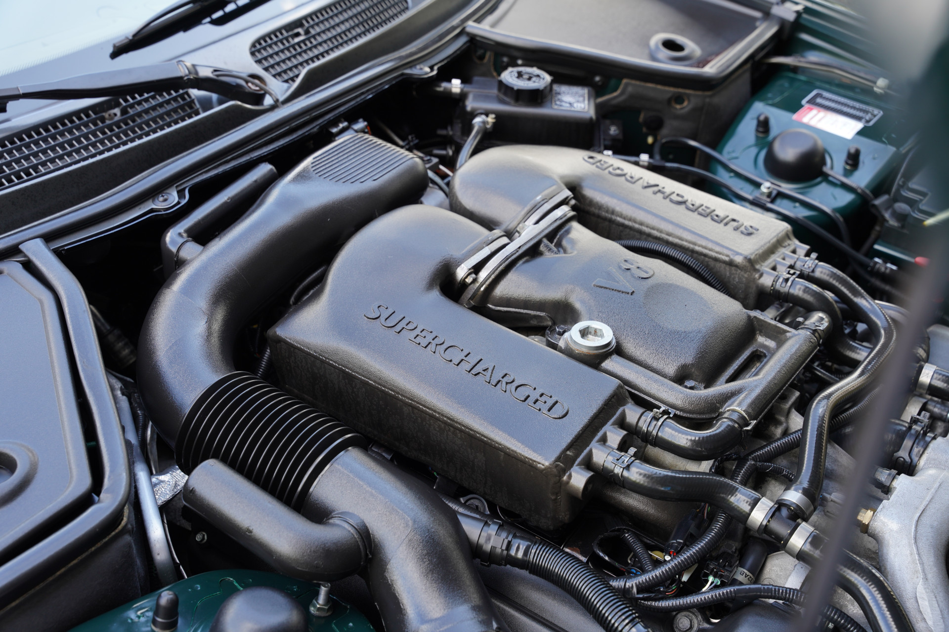 This 2001 Jaguar XKR is presented in the ultimate colour combination: British Racing Green with a Cashmere leather interior. A classic yet timeless pairing that perfectly highlights the sporting elegance of the XKR.