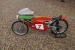 Deze racer uit 1970 draagt die geschiedenis met trots. Hij vertegenwoordigt het moment waarop techniek en passie samenkwamen en dat was een bijzondere tijd waarin 50 kubieke centimeter genoeg was om dromen waar te maken. De geur, het toerental, de vibraties in het stuur: alles eraan herinnert u aan een tijd waarin snelheid nog puur was en elke bocht een uitdaging tussen mens en machine.