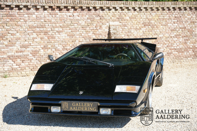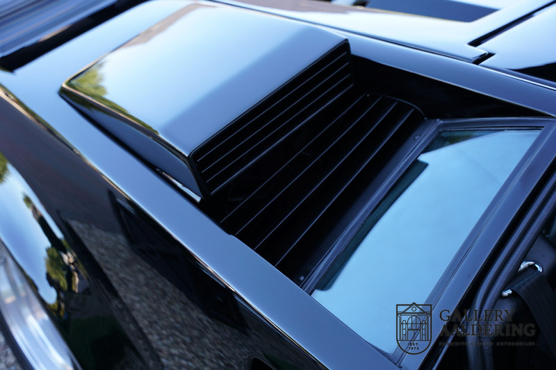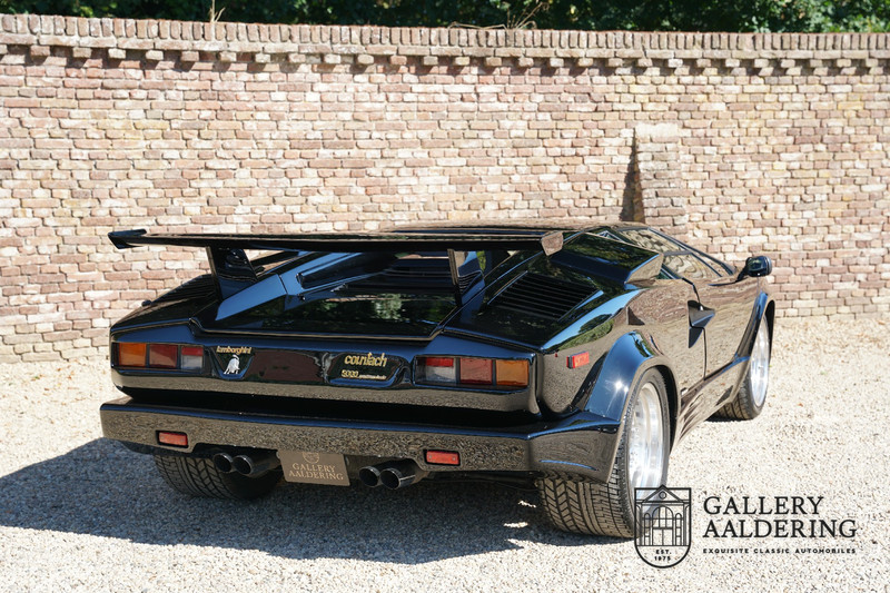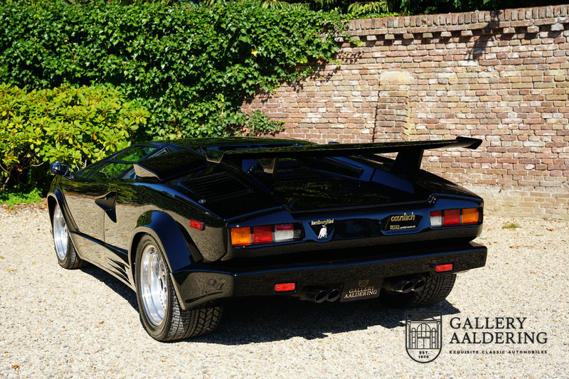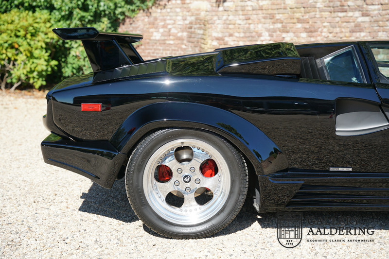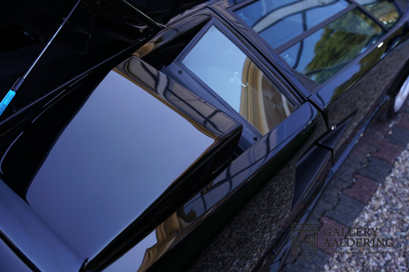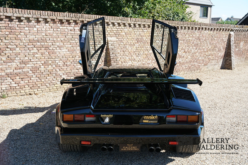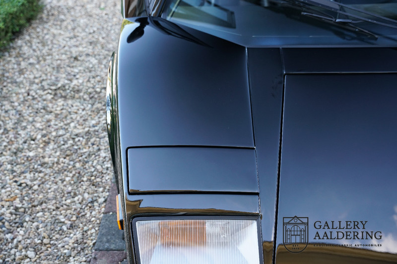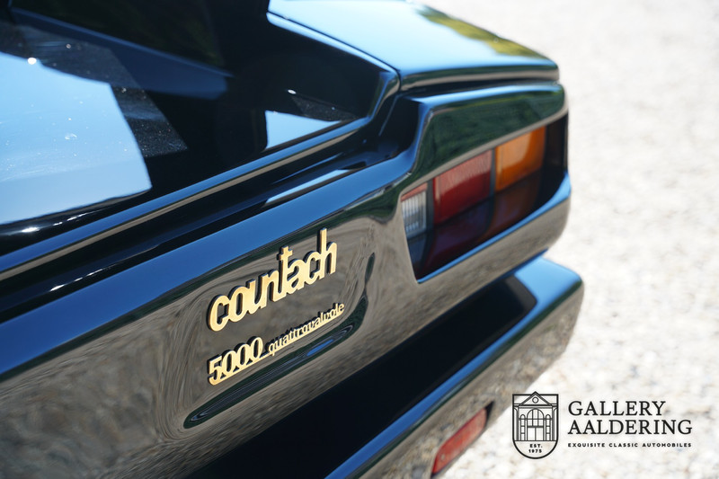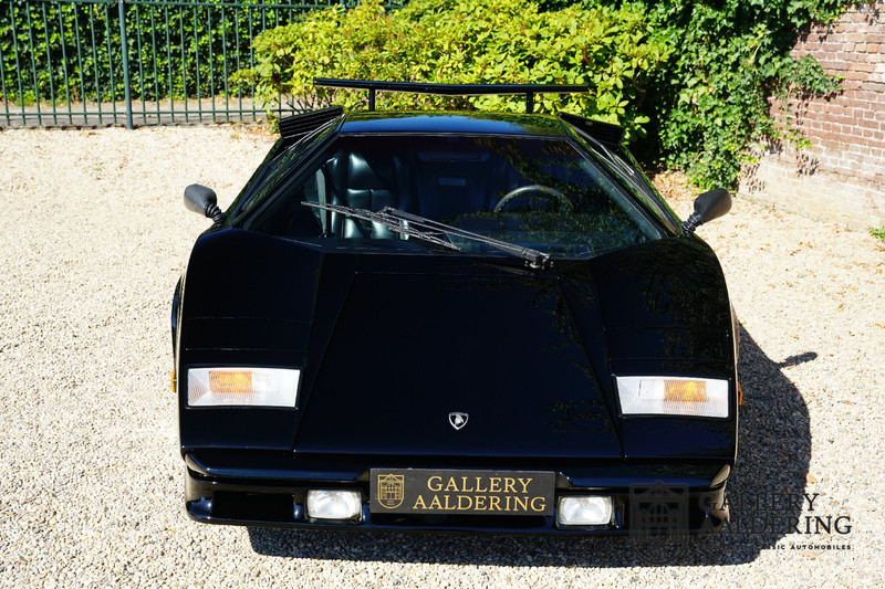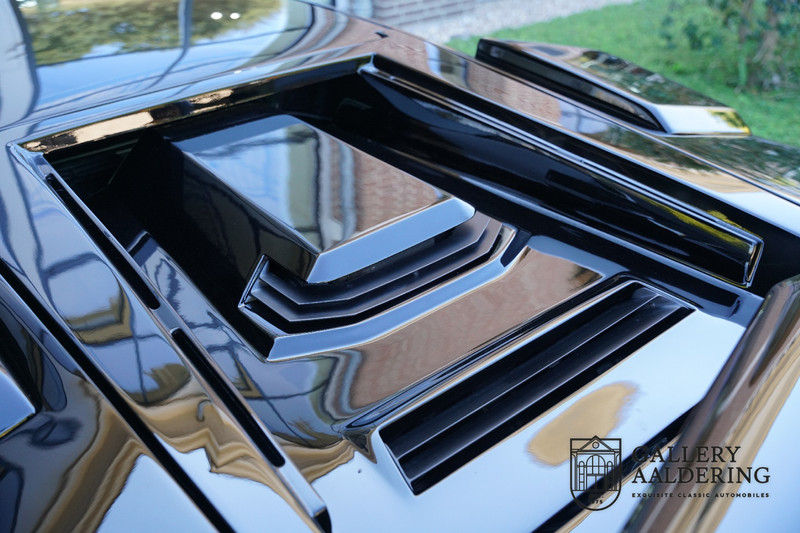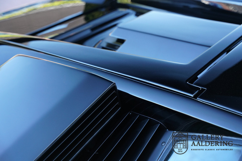 Countach is Piemontees dialect voor: verbazingwekkend of prachtig. Een Piemontese medewerker van Lamborghini bleef het maar herhalen tijdens de ontwikkeling van de auto dat uiteindelijk werd besloten de auto Countach te dopen. Het is een treffende naam voor zo’n bijzondere auto, dat had Ferruccio Lamborghini al snel door. Dit exemplaar werd in mei 1988 gebouwd in Sant Agatha Bolognese in Italië en is kort daarna naar de Verenigde Staten gegaan. De auto is daar immer door liefhebbers gekoesterd en ziet er nog steeds prachtig uit. De auto heeft nog maar 33.000 kilometer gereden en als we kijken naar de algehele staat van de auto dan kunnen we niet anders concluderen dan dat dit de originele kilometerstand is. Gelukkig betreft hier een Europese uitvoering die vele malen mooier is dan de auto’s die van meet af aan voor de Amerikaanse markt zijn bedoeld. Als kers op de taart is deze auto ook nog eens voorzien van een originele achterspoiler, om de looks compleet te maken.