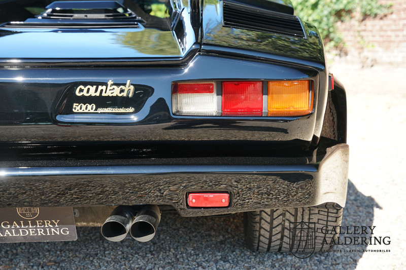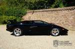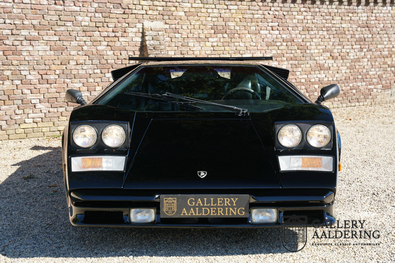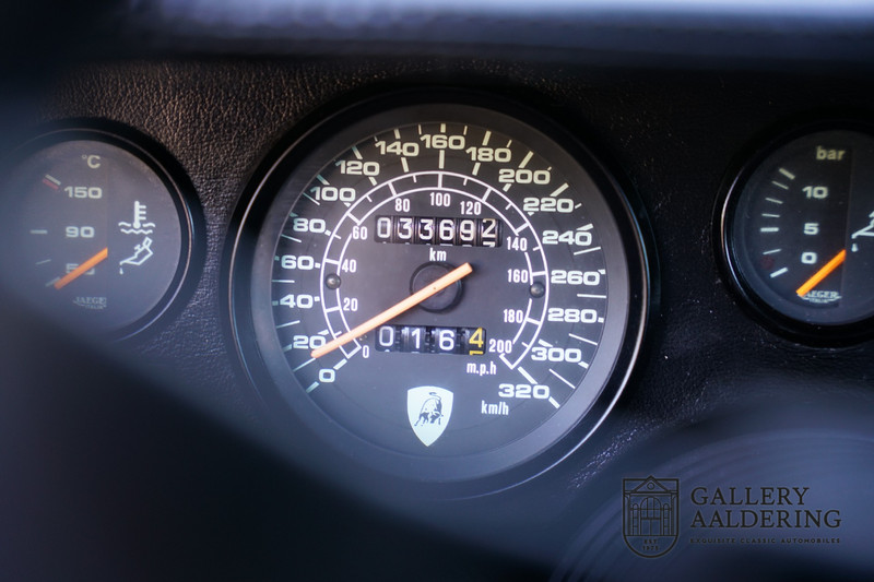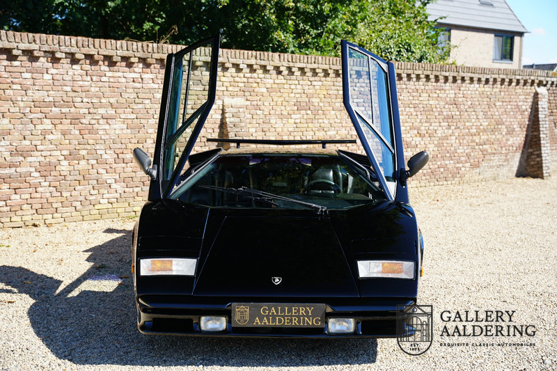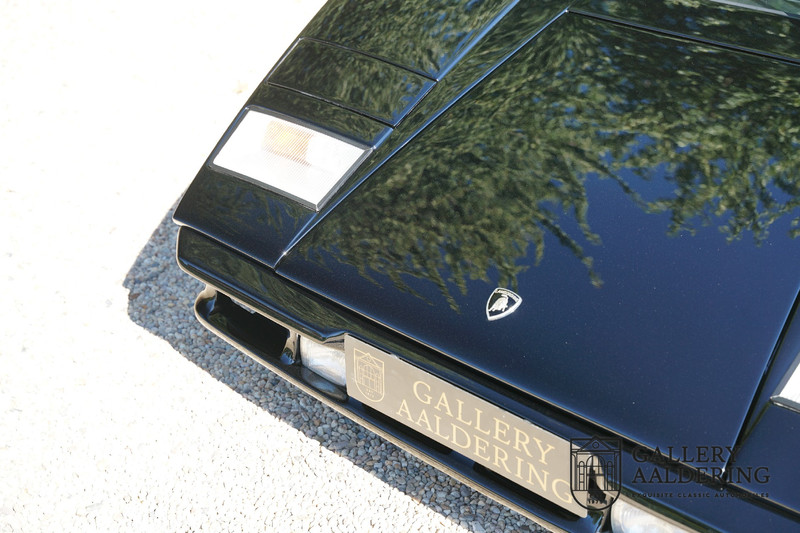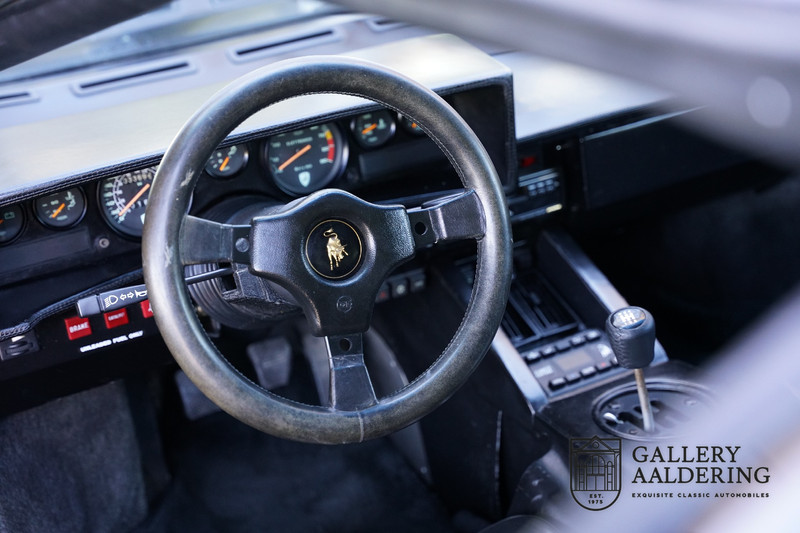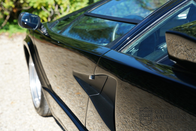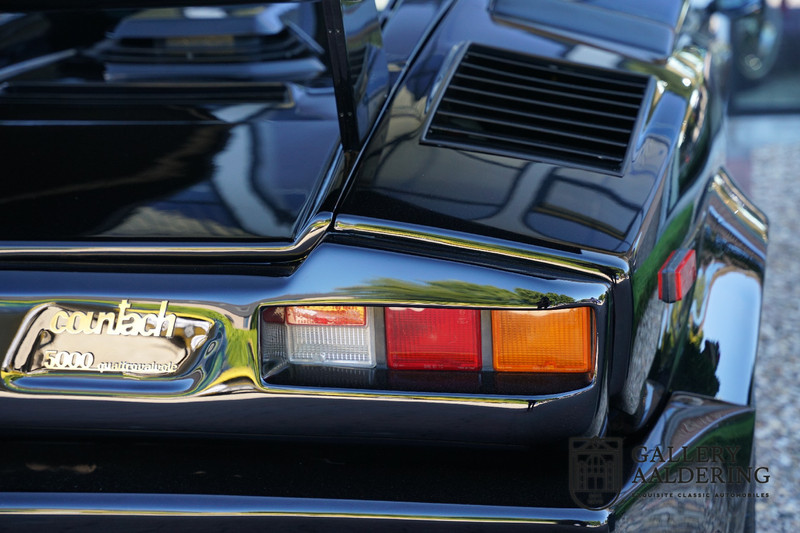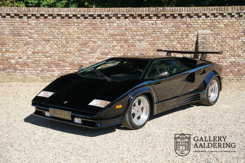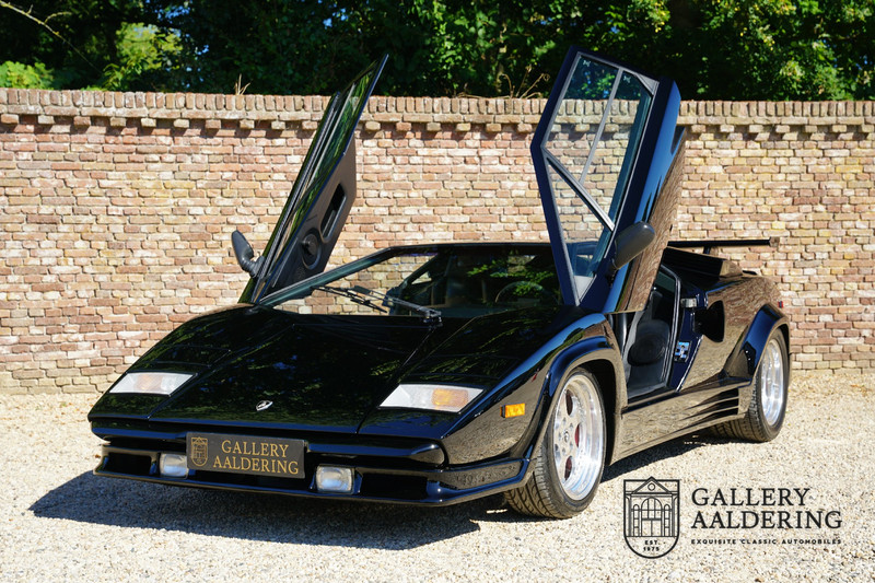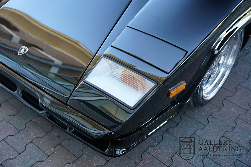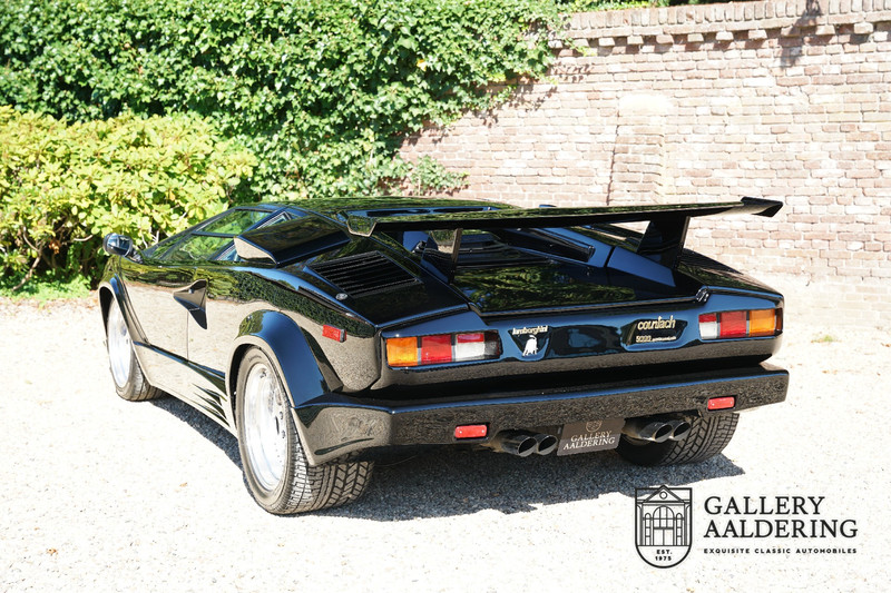 Countach is Piemontees dialect voor: verbazingwekkend of prachtig. Een Piemontese medewerker van Lamborghini bleef het maar herhalen tijdens de ontwikkeling van de auto dat uiteindelijk werd besloten de auto Countach te dopen. Het is een treffende naam voor zo’n bijzondere auto, dat had Ferruccio Lamborghini al snel door. Dit exemplaar werd in mei 1988 gebouwd in Sant Agatha Bolognese in Italië en is kort daarna naar de Verenigde Staten gegaan. De auto is daar immer door liefhebbers gekoesterd en ziet er nog steeds prachtig uit. De auto heeft nog maar 33.000 kilometer gereden en als we kijken naar de algehele staat van de auto dan kunnen we niet anders concluderen dan dat dit de originele kilometerstand is. Gelukkig betreft hier een Europese uitvoering die vele malen mooier is dan de auto’s die van meet af aan voor de Amerikaanse markt zijn bedoeld. Als kers op de taart is deze auto ook nog eens voorzien van een originele achterspoiler, om de looks compleet te maken.