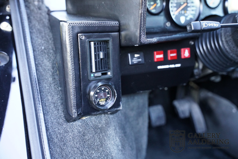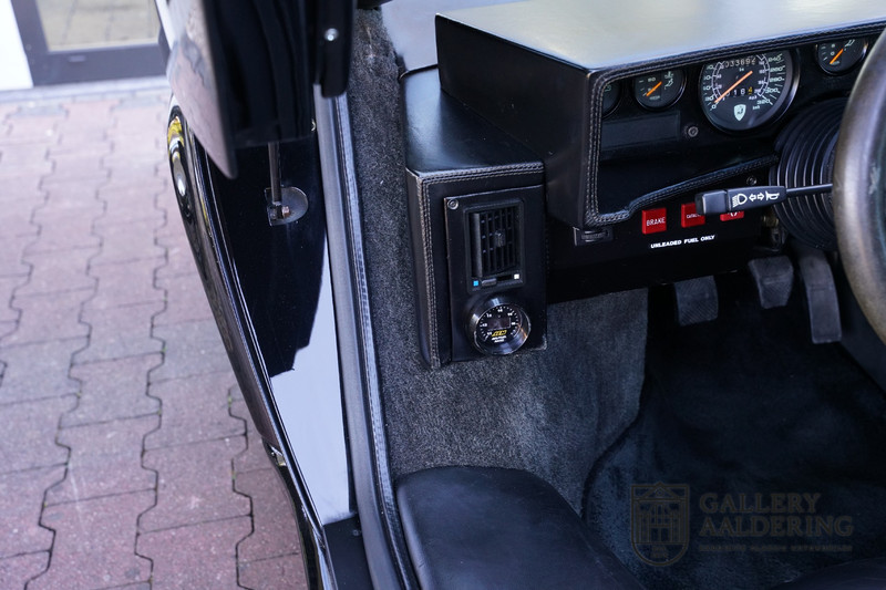 The interior is in a very original and good condition. The seats are comfortable and offer a lot of support and the original steering wheel also looks very nice. The dashboard also features two AEM wideband lambda meters that work in tandem with the modified ignition, but more on that later. What also stands out is that this Countach has air conditioning. From experience we can report that the air conditioning works perfectly and is a welcome addition as it makes it much easier to travel long distances in warm weather. Because although its imposing appearance suggests otherwise, the Countach is a pleasant touring car. The car is quite comfortable, damn fast and actually quite spacious. Operating the steering wheel, gearshift and clutch is of course a little heavy, as you would expect from a Lamborghini. This is exactly as it was originally intended by the factory.