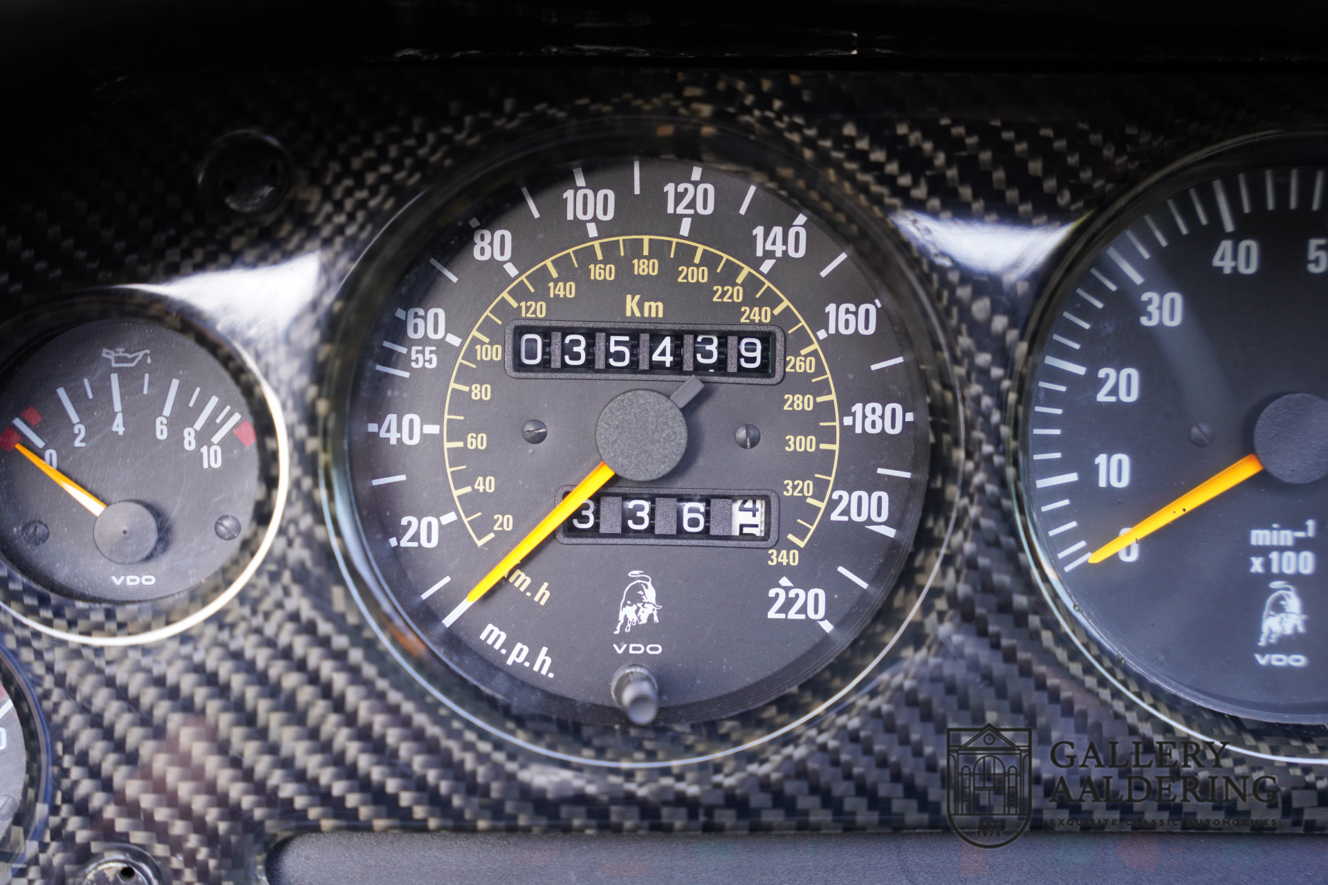 The body is beautiful, the paint in very good condition. In a word, the Lamborghini looks great, even more striking because of the original chrome-plated multi-part wheels. What an impressive car it is. Built at a time when pedestrian concessions, following an ‘average taste of the target group’ was not yet seen as leading. No, an extremely designed car as it should be in Lamborghini’s eyes.