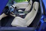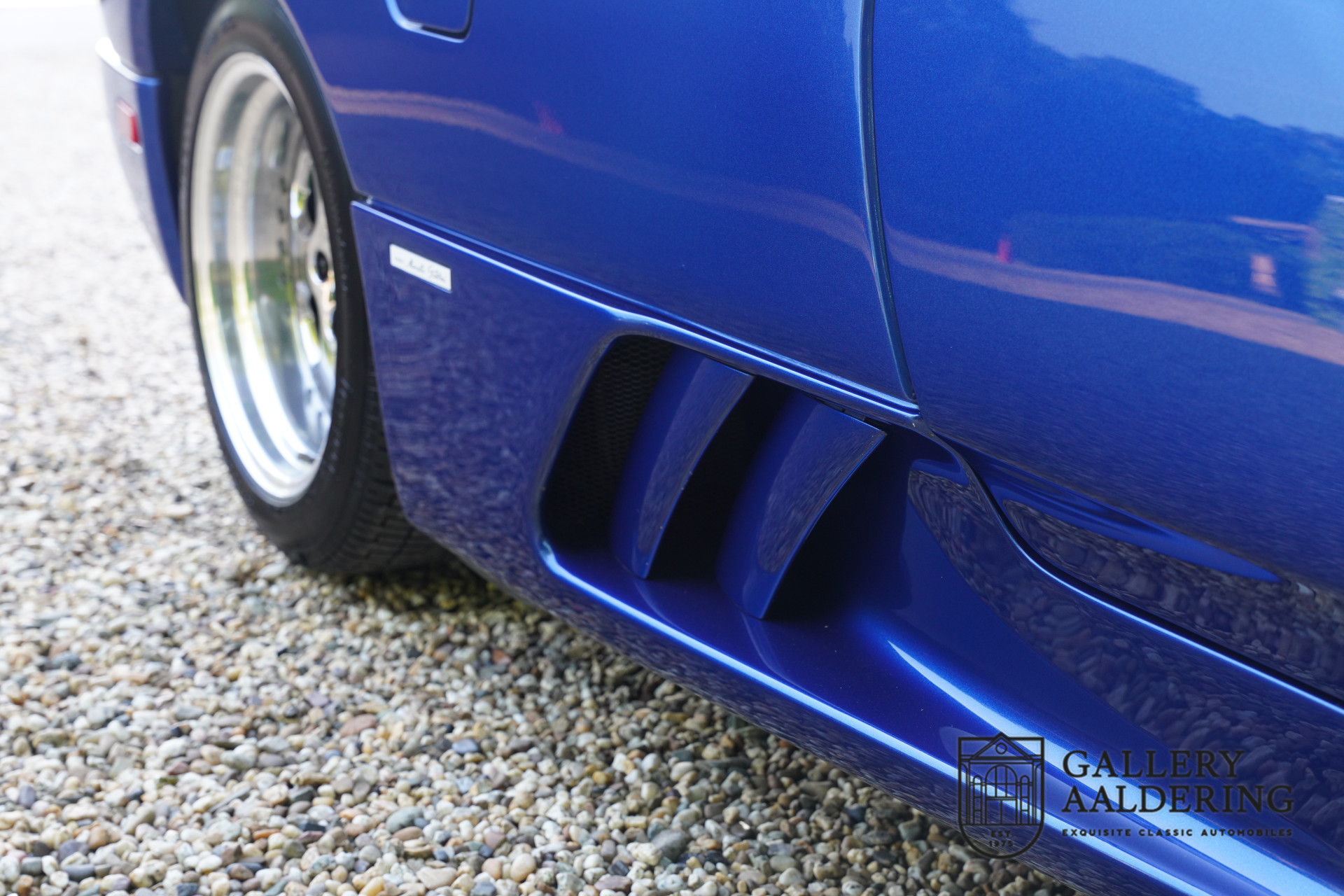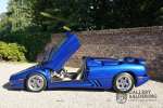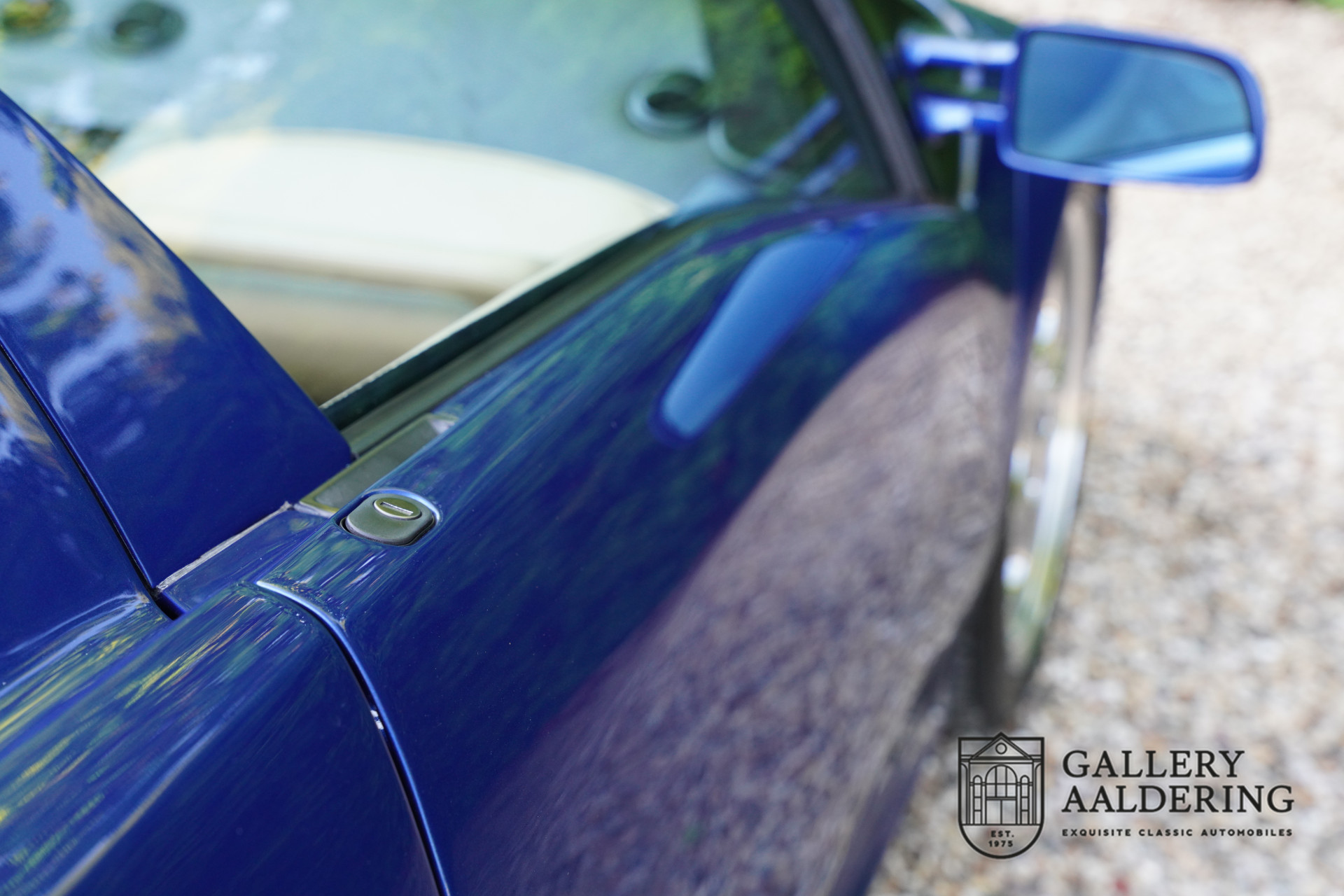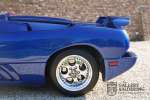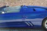 Bei der hier angebotenen Variante handelt es sich um die offene Version, die am 28. Februar 1996 in Amerika ausgeliefert wurde und 2012 eine niederländische Zulassung erhielt. Trotz seiner Höhe von nur 1,10 Metern ist der Supersportwagen nicht zu übersehen: eine leuchtend blaue Metallic-Lackierung, ein Interieur aus beigem Leder mit vielen Carbon Teilen: also ein absoluter Hingucker, dieser Diablo.
