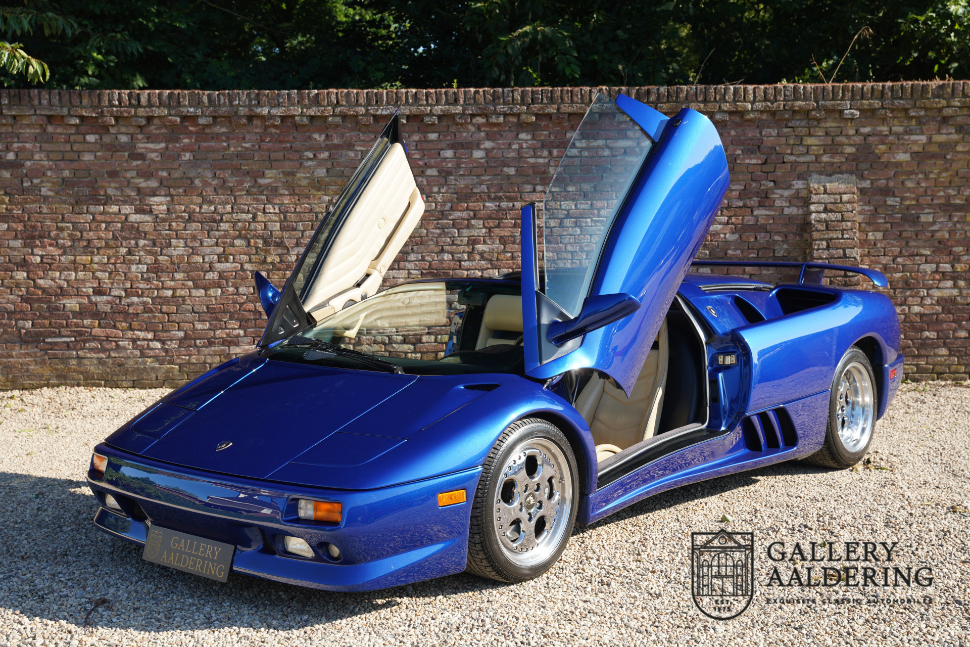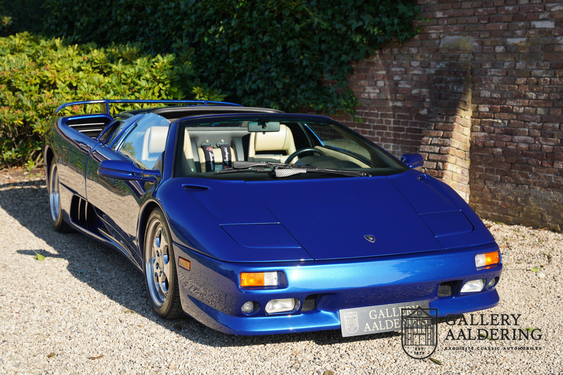 Het resultaat is verbluffend, een feitelijk in nieuwstaat verkerende Diablo Roadster VT, in schitterende kleurstelling. Een geliefde open versie die klaar is voor een nieuw hoofdstuk in zijn spannende jongensboek. Dit jongensboek komt compleet met facturen, originele boekjes, in de originele suède map. Een beter exemplaar zult u vermoedelijk niet vinden.