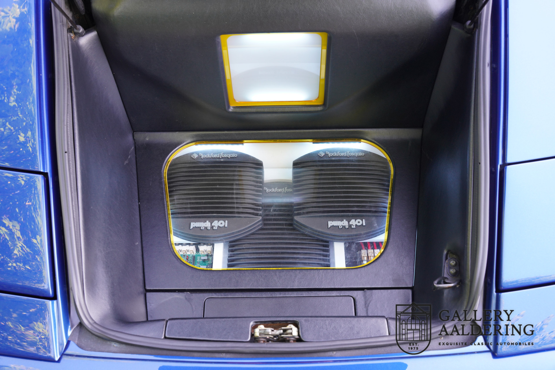 That is the variant we offer here, delivered on February 28, 1996 in America and received a Dutch registration in 2012. Despite its height of only 1.10 meters, you cannot overlook the supercar: bright blue metallic paint, an interior made of beige leather with many carbon parts: an absolute attention-grabber, this Diablo.