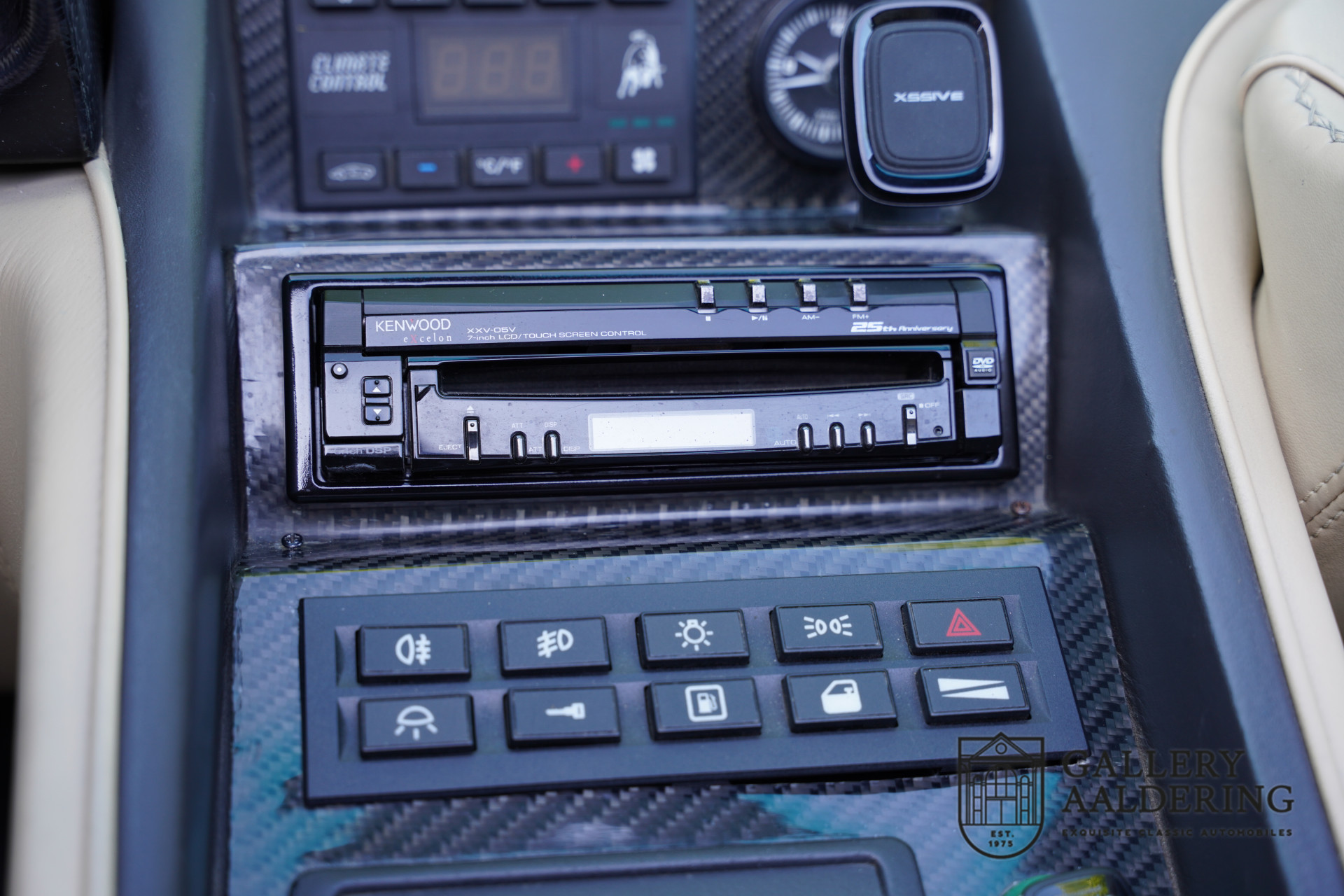 The interior is also completely uncompromising. The wide center tunnel, the large dome behind the wheel that accommodates all the important instruments. The small, almost anonymous steering wheel, inviting you to grip very tightly as the huge V12 is allowed to show what it is capable of. Everything radiates that this car is capable of majestic performances. At the same time, the car also radiates that it has always been cherished. Beige leather upholstery can quickly start to look used, but with this Diablo everything is still in beautiful condition.