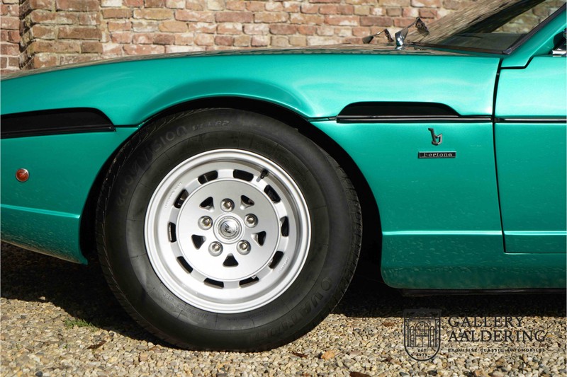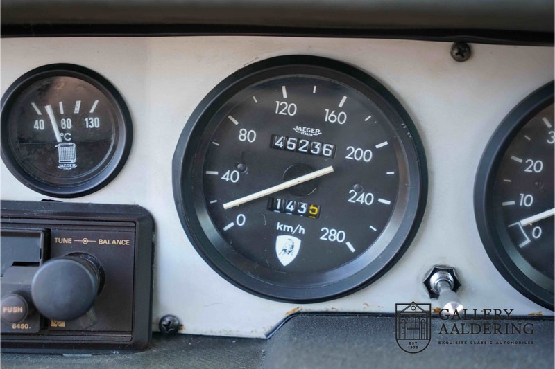 Dieser Lamborghini Espada stammt aus dem Jahr 1973 und wurde neu geliefert in der Schweiz, es handelt sich um die beliebte dritte Serie. Ein Fahrzeug aus 3. Hand mit einer originalen Laufleistung von nur 45.000 Km. Die Karosserie mit korrekten Passungen ist sehr robust und rostfrei. Ein sehr originales Fahrzeug, das lediglich aus optischen Gründen neu lackiert wurde. Die Technik ist 100% in Ordnung und der Lamborghini fährt und funktioniert perfekt. Das originale und sehr schöne Interieur aus Leder hat eine beige/sandfarbige Farbe. Das Auto hat seine originale Felgen und eine Klimaanlage. Ein so wunderschöner und vor allem sehr originaler/guter Espada sehen wir nur ganz selten.