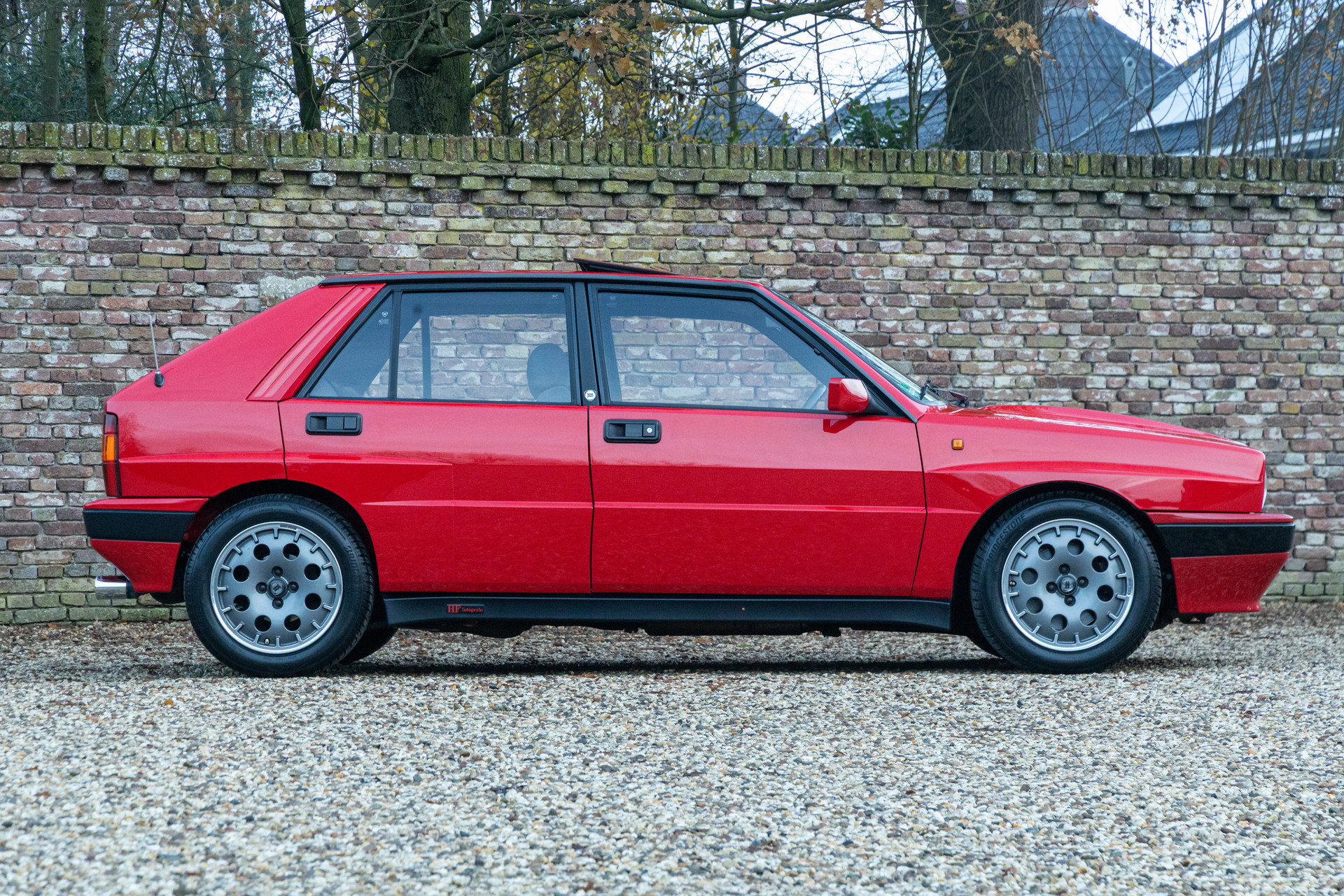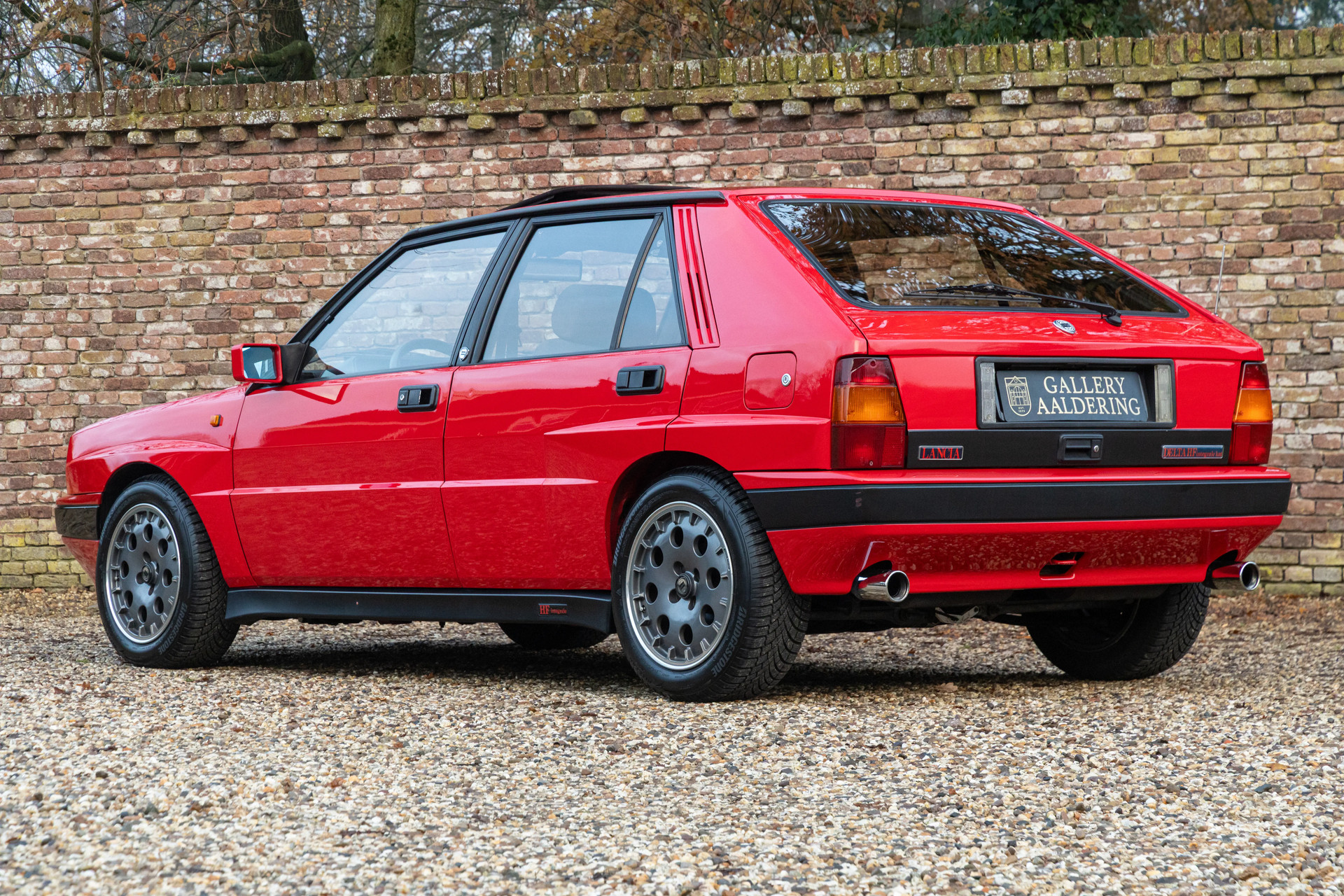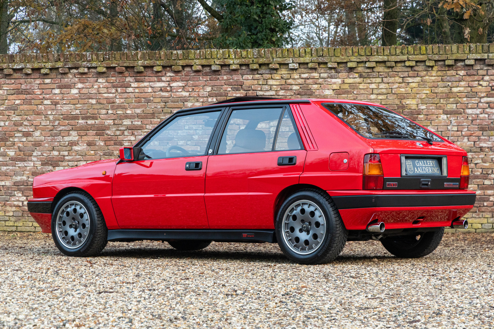 Ab Werk ausgeliefert in Rosso Monza und kombiniert mit einem dunkelgrauen Alcantara-Interieur, präsentiert sich dieser Integrale genau so, wie Enthusiasten ihn sehen wollen: kompakt, muskulös und kompromisslos auf Funktion ausgerichtet. Die ausgestellten Radhäuser und ikonischen Details dienten nie dem reinen Effekt – sie waren von Anfang an auf Leistung ausgelegt. Selbst das elektrische Schiebedach, eine von lediglich vier verfügbaren Optionen, fügt dem ansonsten kompromisslosen Gesamtkonzept lediglich einen Hauch von zurückhaltendem Komfort hinzu.