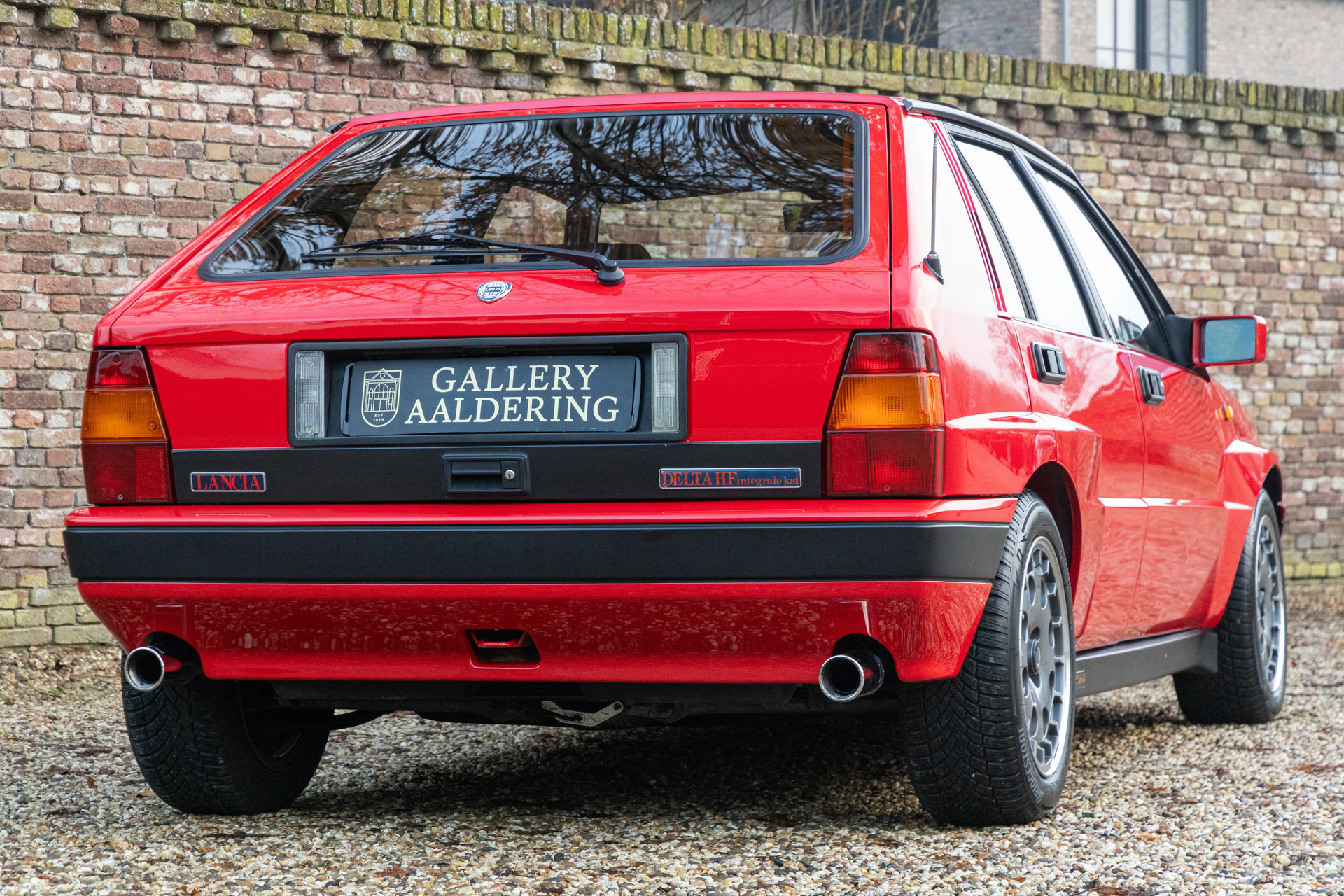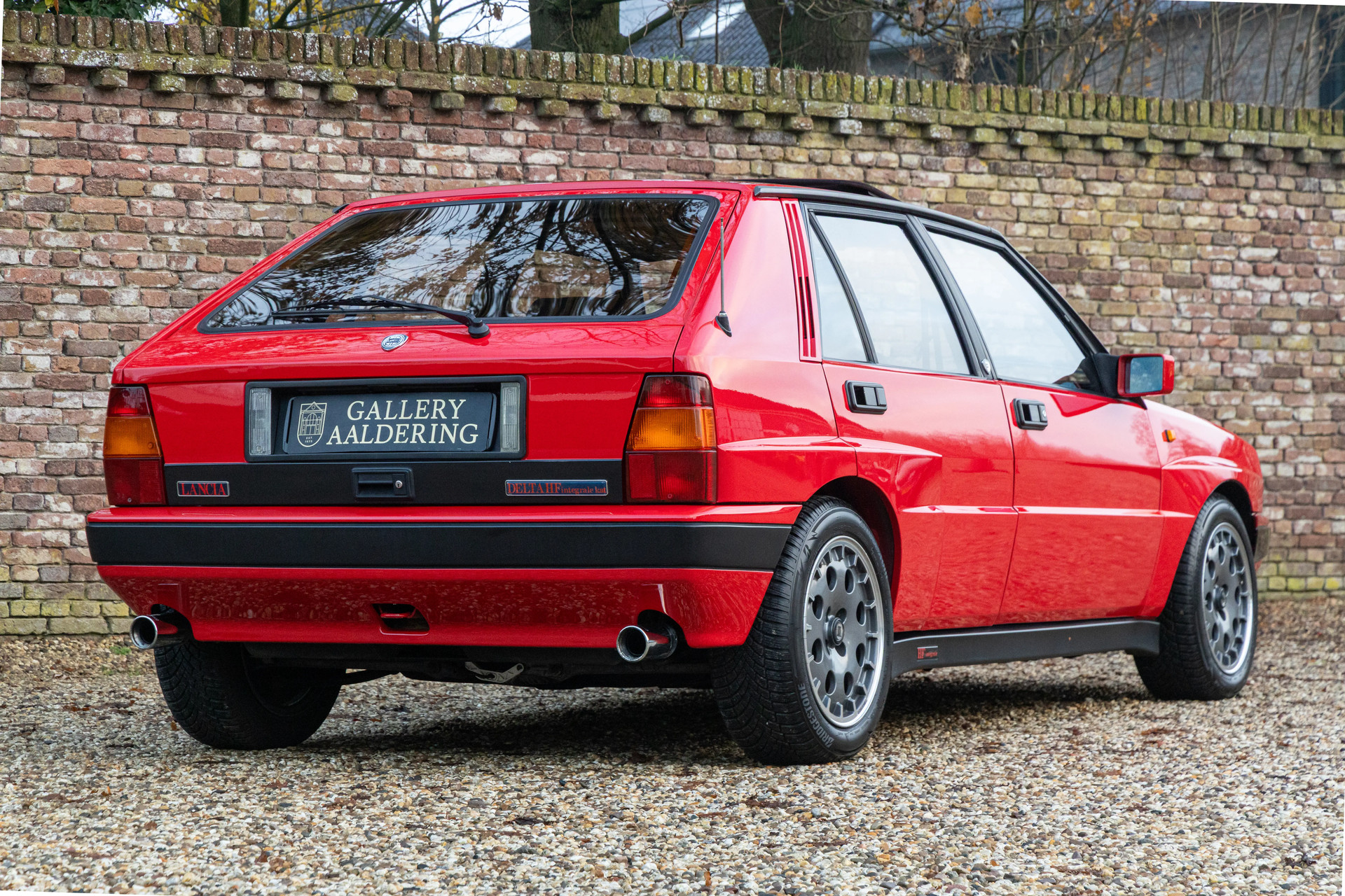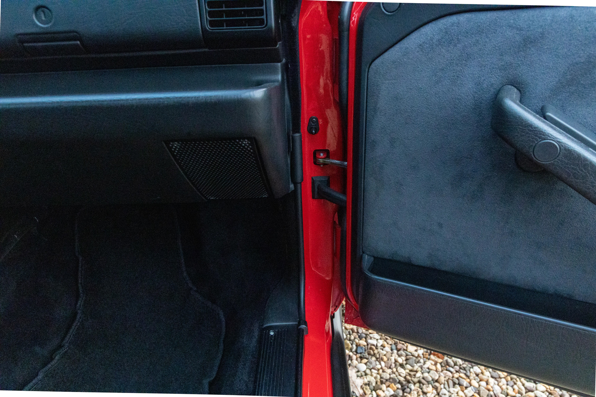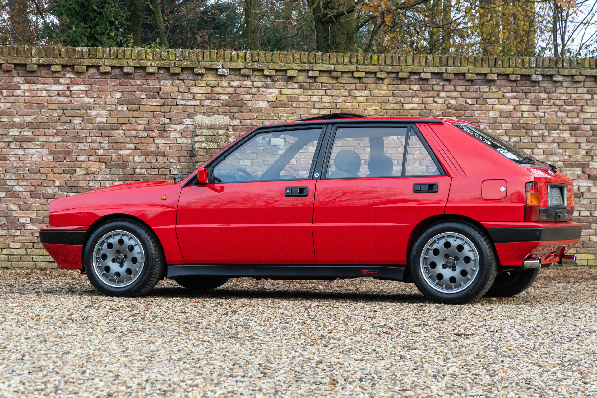 Ab Werk ausgeliefert in Rosso Monza und kombiniert mit einem dunkelgrauen Alcantara-Interieur, präsentiert sich dieser Integrale genau so, wie Enthusiasten ihn sehen wollen: kompakt, muskulös und kompromisslos auf Funktion ausgerichtet. Die ausgestellten Radhäuser und ikonischen Details dienten nie dem reinen Effekt – sie waren von Anfang an auf Leistung ausgelegt. Selbst das elektrische Schiebedach, eine von lediglich vier verfügbaren Optionen, fügt dem ansonsten kompromisslosen Gesamtkonzept lediglich einen Hauch von zurückhaltendem Komfort hinzu.