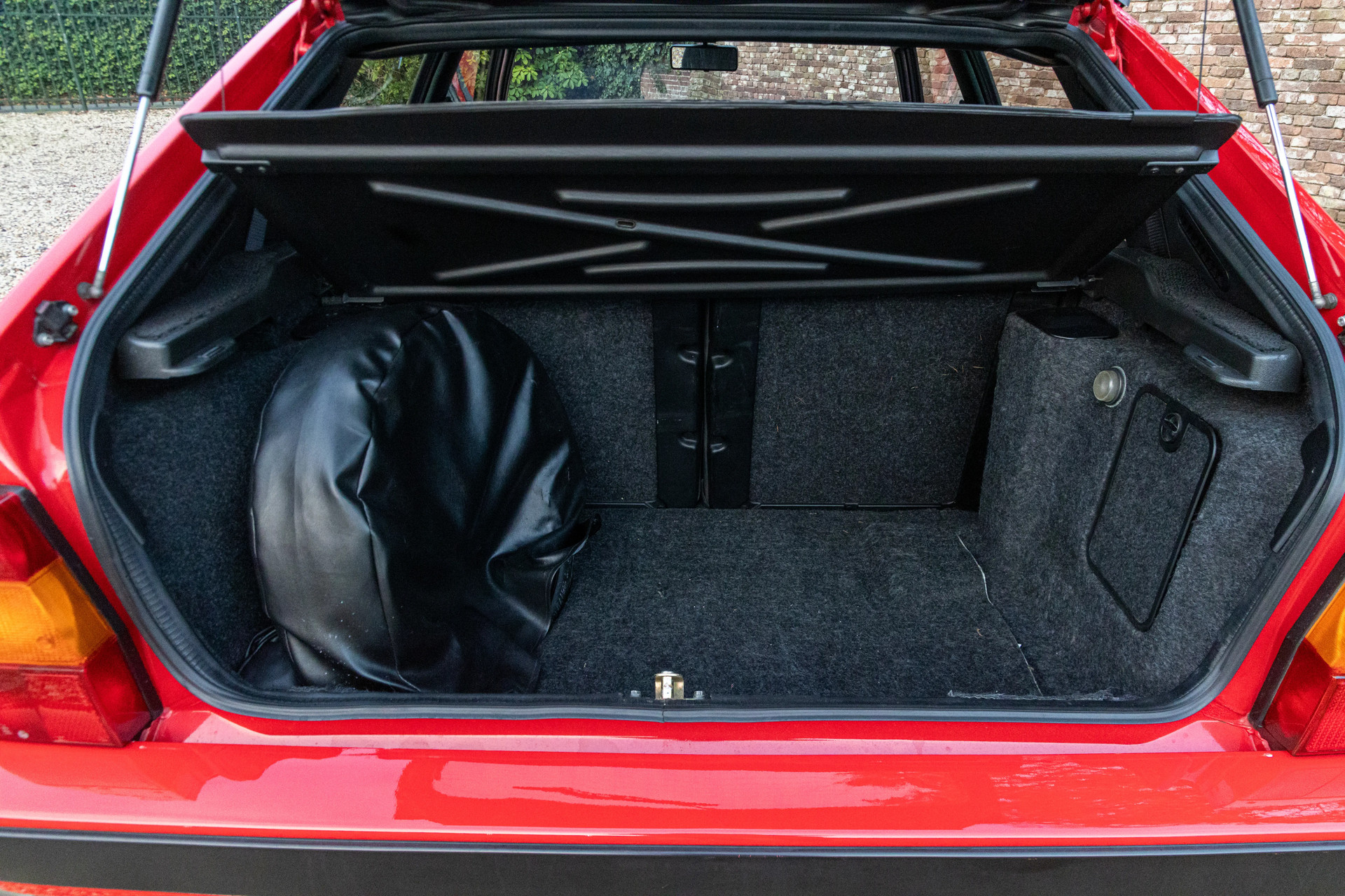 Finished from the factory in Rosso Monza and paired with a dark gray Alcantara interior, this Integrale is presented exactly as enthusiasts like to see it. Compact, muscular, and purpose-built. The flared wheel arches and iconic details were never meant to impress visually—they exist to perform. Even the electric sunroof, one of only four available factory options, adds a subtle layer of comfort to an otherwise uncompromising package.
