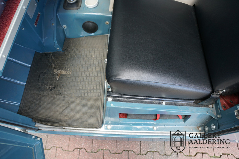 Het interieur is heerlijk spartaans maar verkeert in goede conditie. De stoelen zijn opnieuw bekleed tijdens de restauratie waarbij ook van de mogelijkheid gebruik is gemaakt om de stoelen opnieuw te vullen. De instrumenten en bedieningselementen zijn allen origineel en functioneren zoals het hoort. Het stuur en de pook verkeren eveneens in goede en originele conditie.